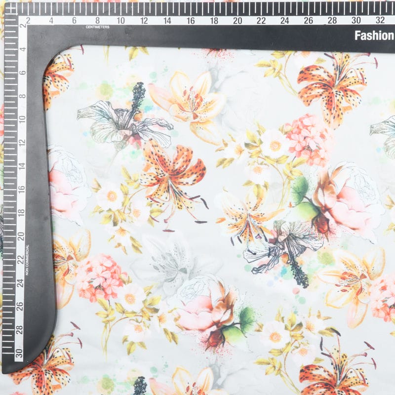 Light Grey And Baby Pink Floral Pattern Digital Print Georgette Satin Fabric