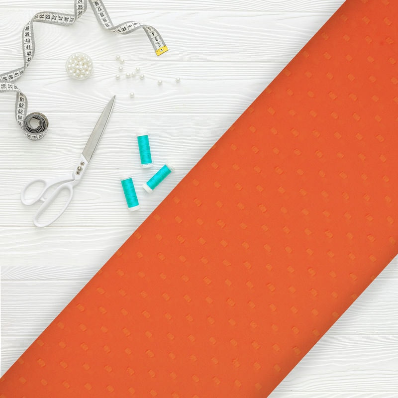 Orange Plain Dyed Georgette Dobby Fabric