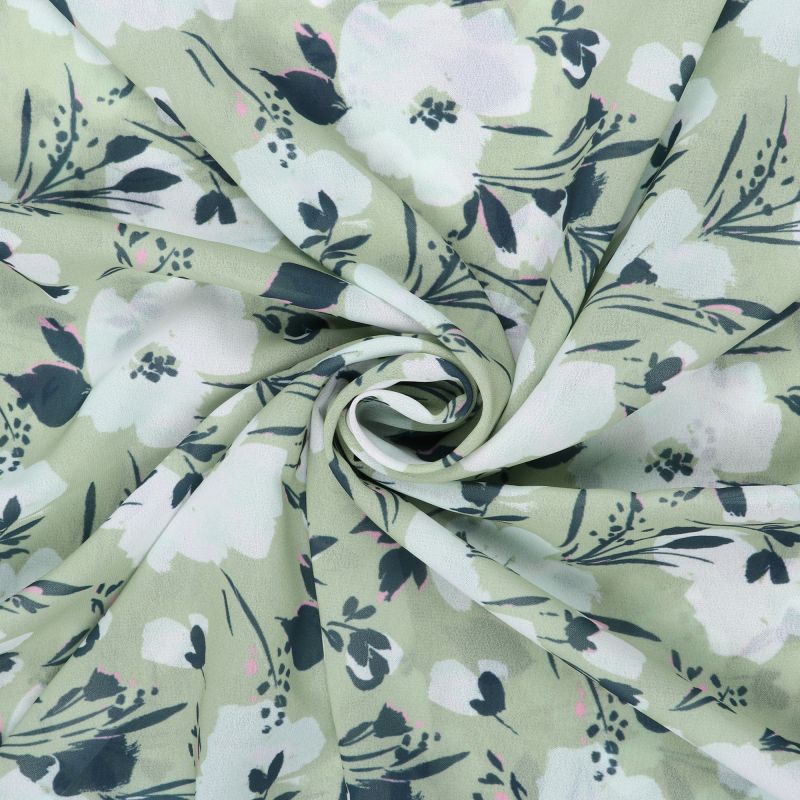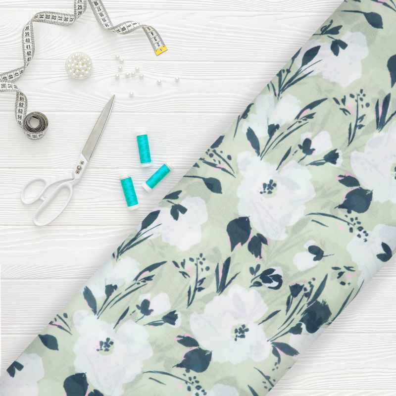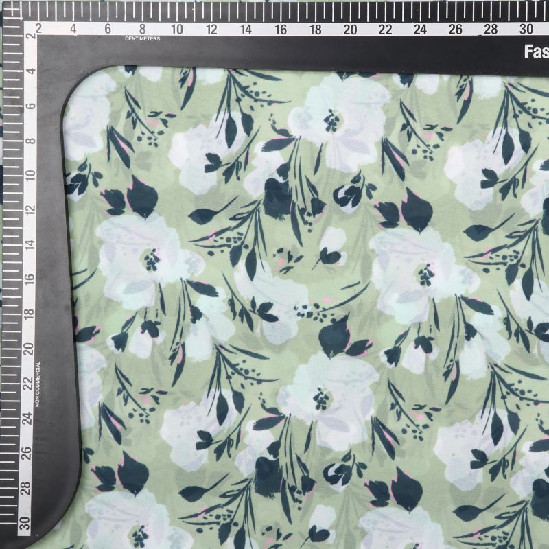 Pastel Green And White Floral Pattern Digital Print Georgette Fabric