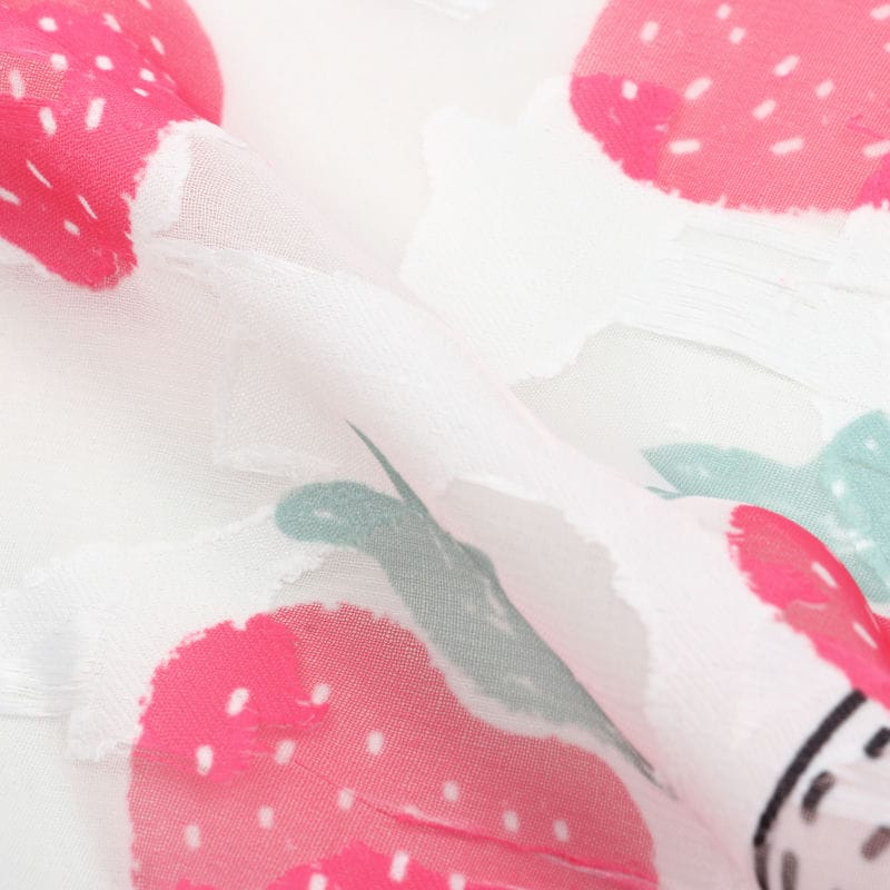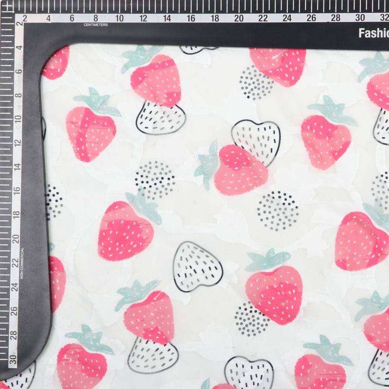 Pink And White Strawberry Pattern Digital Print Georgette Jacquard Fabric