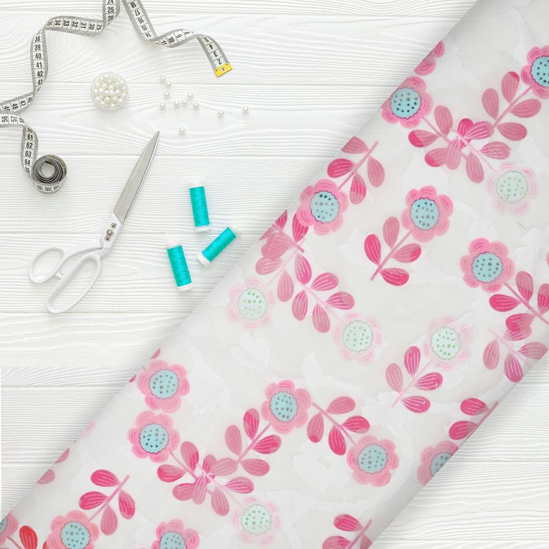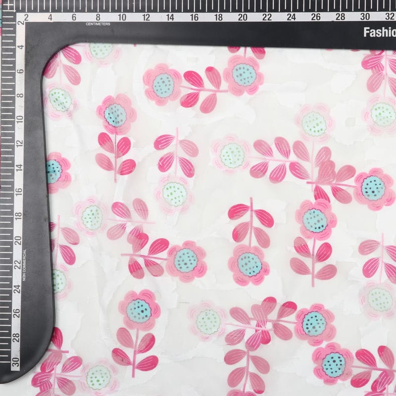 Red And Pink Floral Pattern Digital Print Georgette Jacquard Fabric