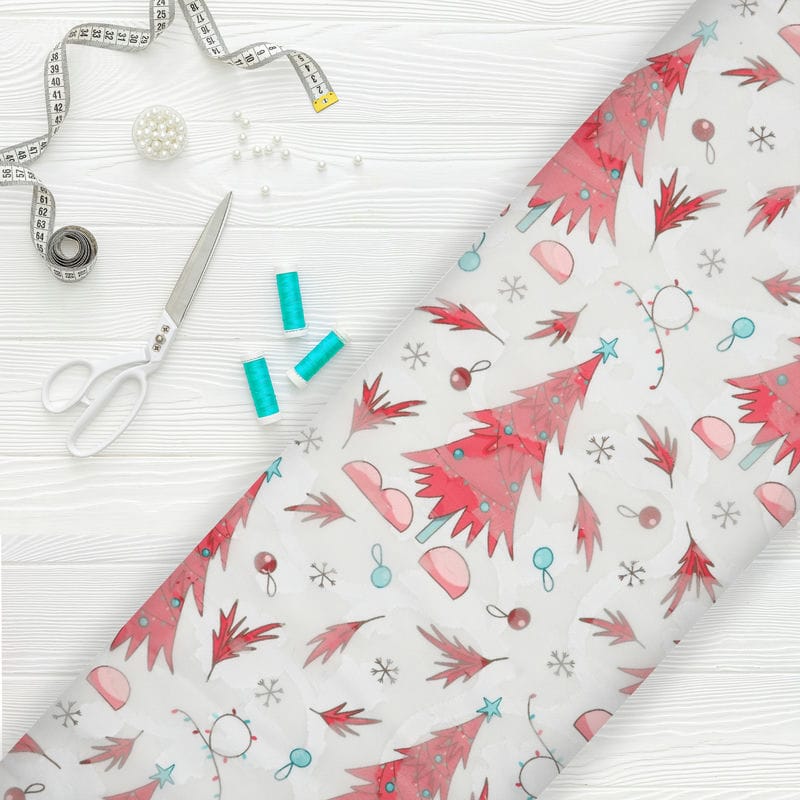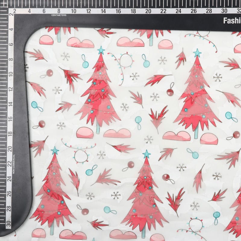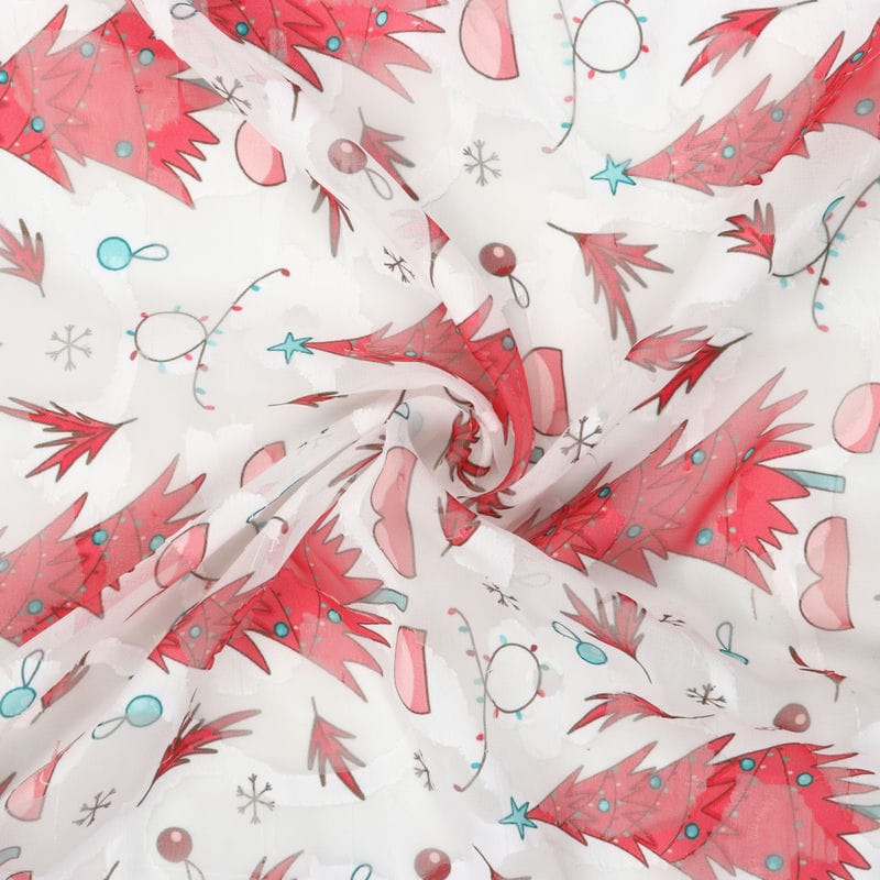 Red And White Christmas Pattern Digital Print Georgette Jacquard Fabric