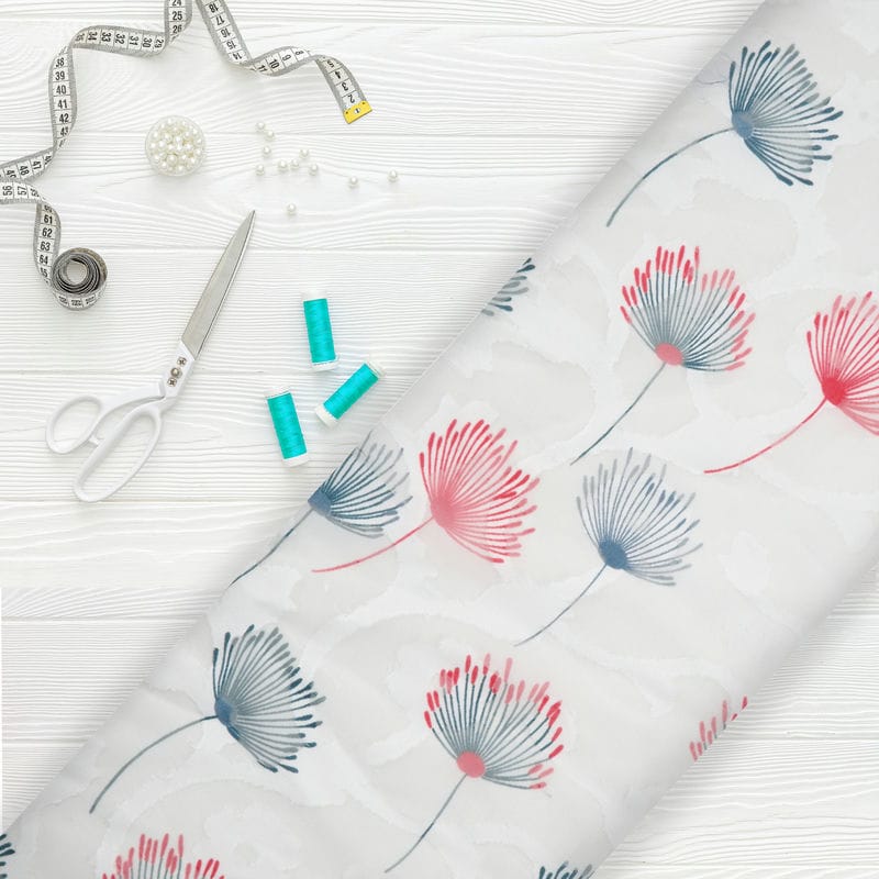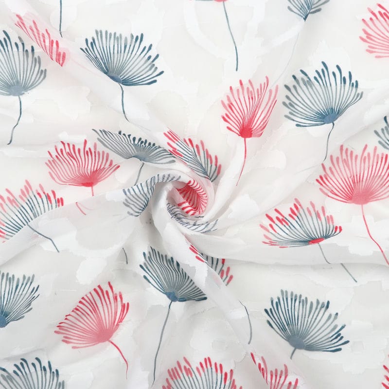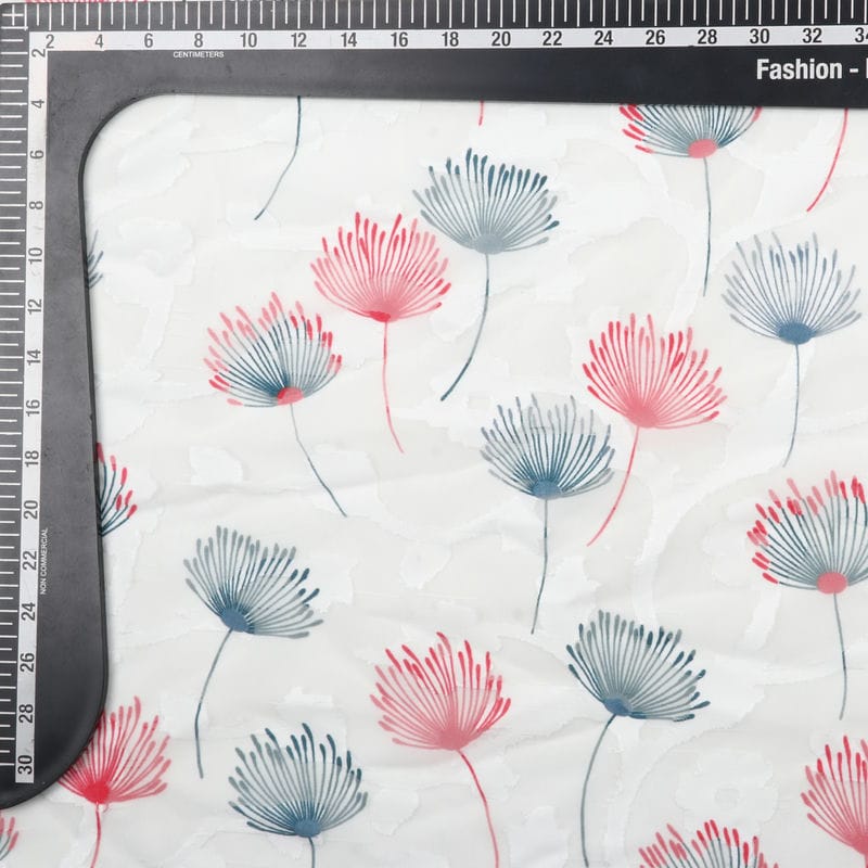 Red And White Floral Pattern Digital Print Georgette Jacquard Fabric
