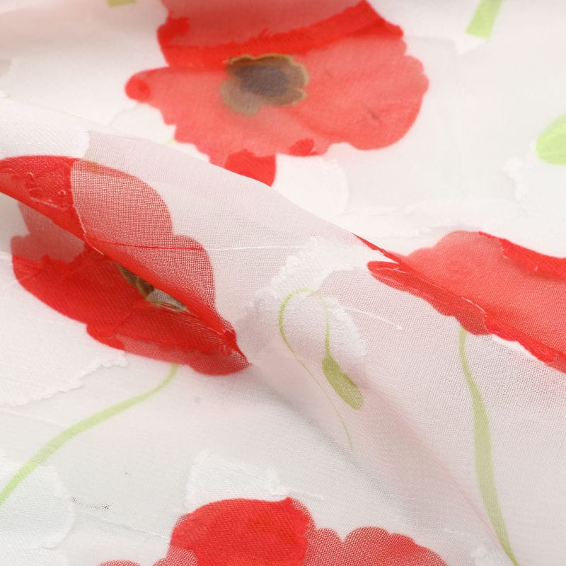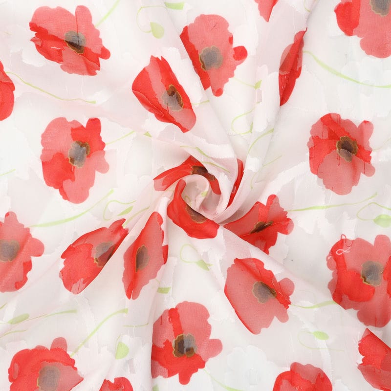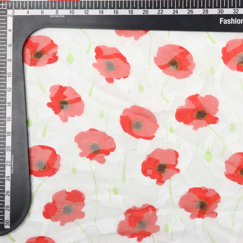 Red And White Floral Pattern Digital Print Georgette Jacquard Fabric