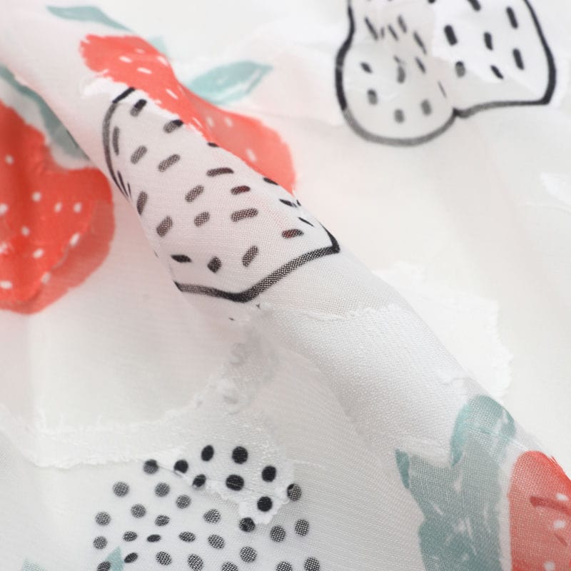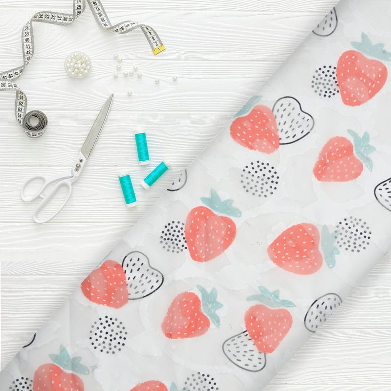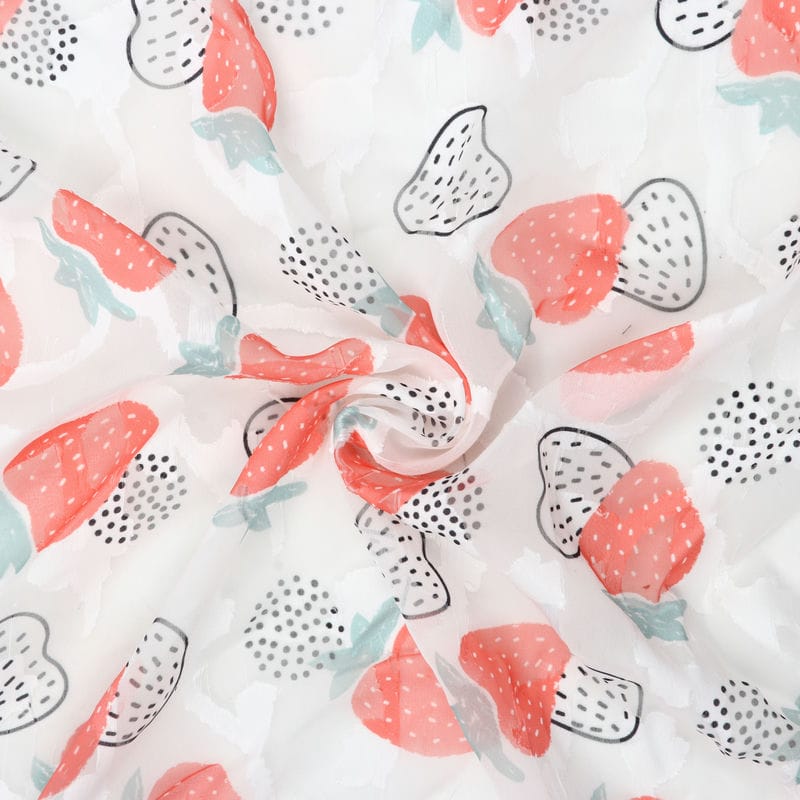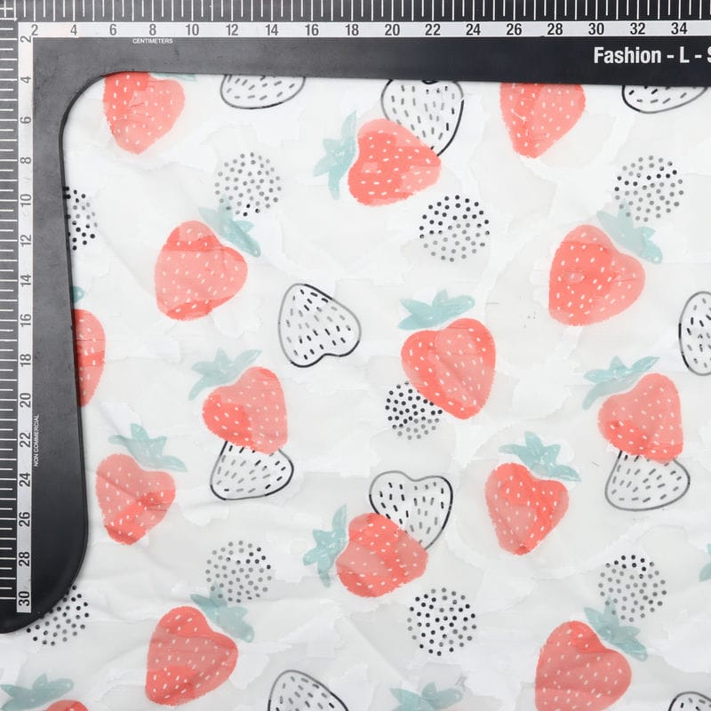 Red And White Strawberry Pattern Digital Print Georgette Jacquard Fabric