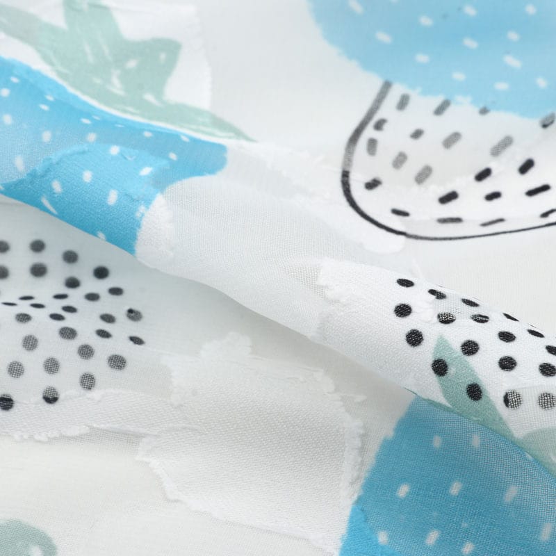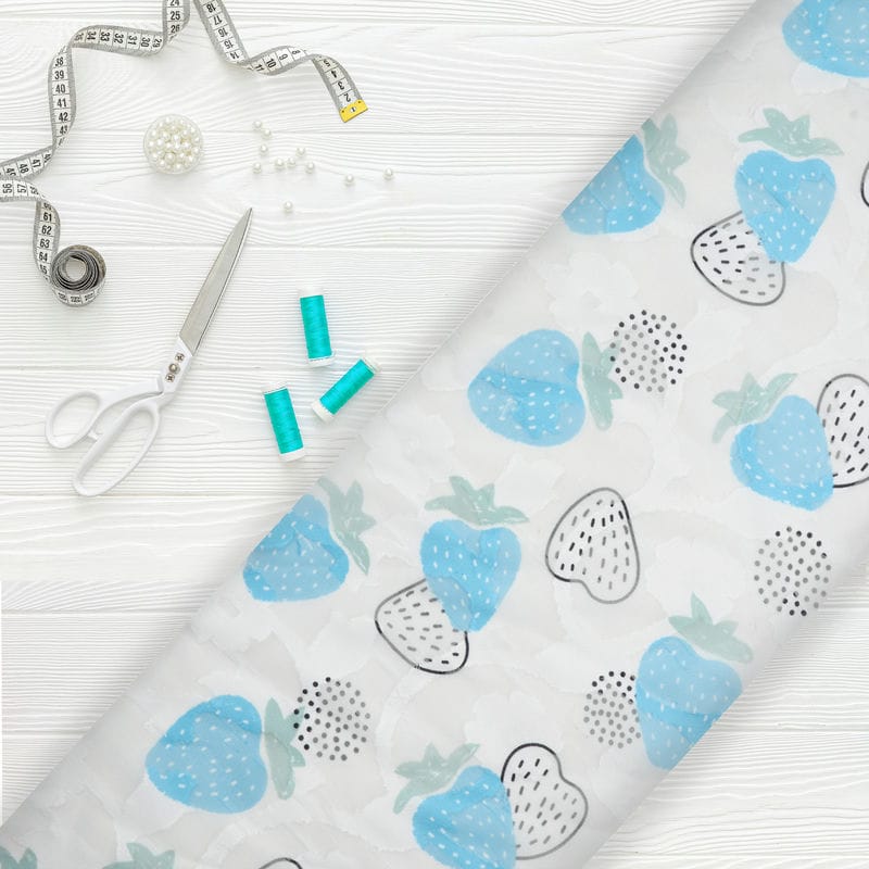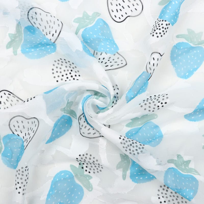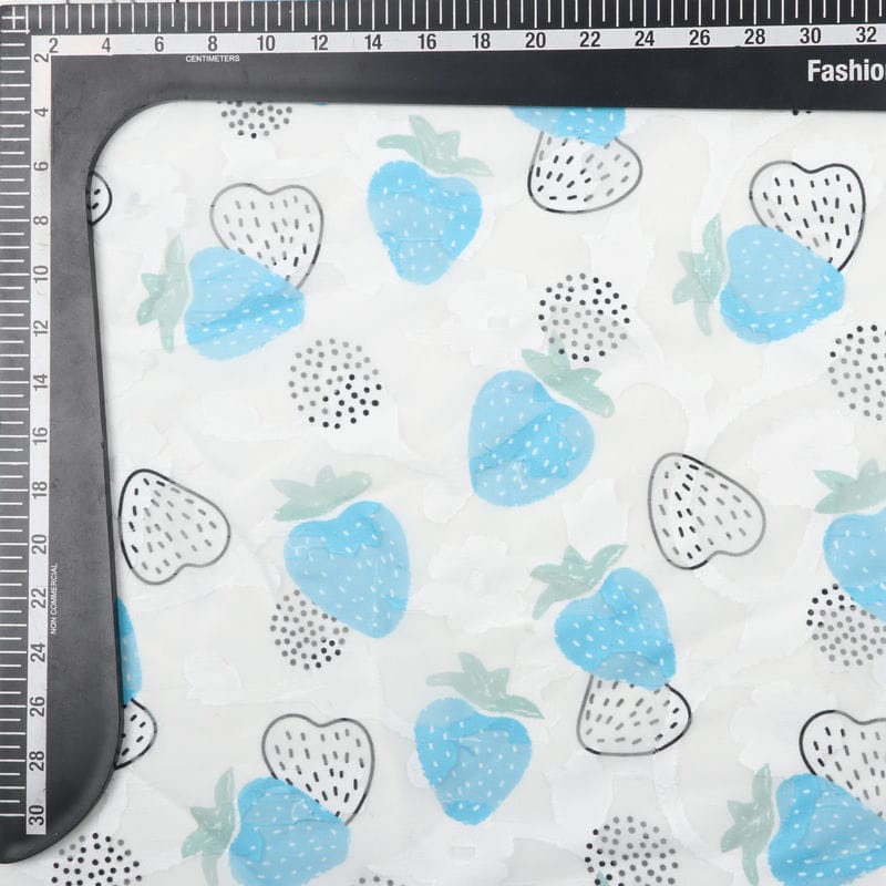 Sky Blue And White Strawberry Pattern Digital Print Georgette Jacquard Fabric