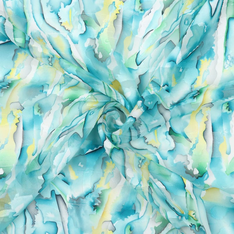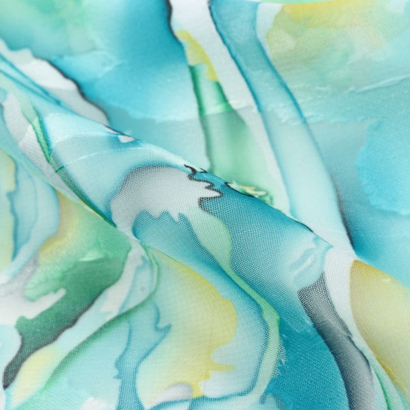 Turquoise And Parrot Green Abstract Pattern Digital Print Georgette Jacqaurd Fabric