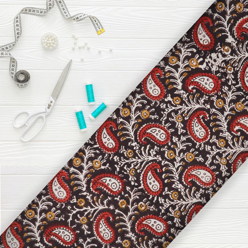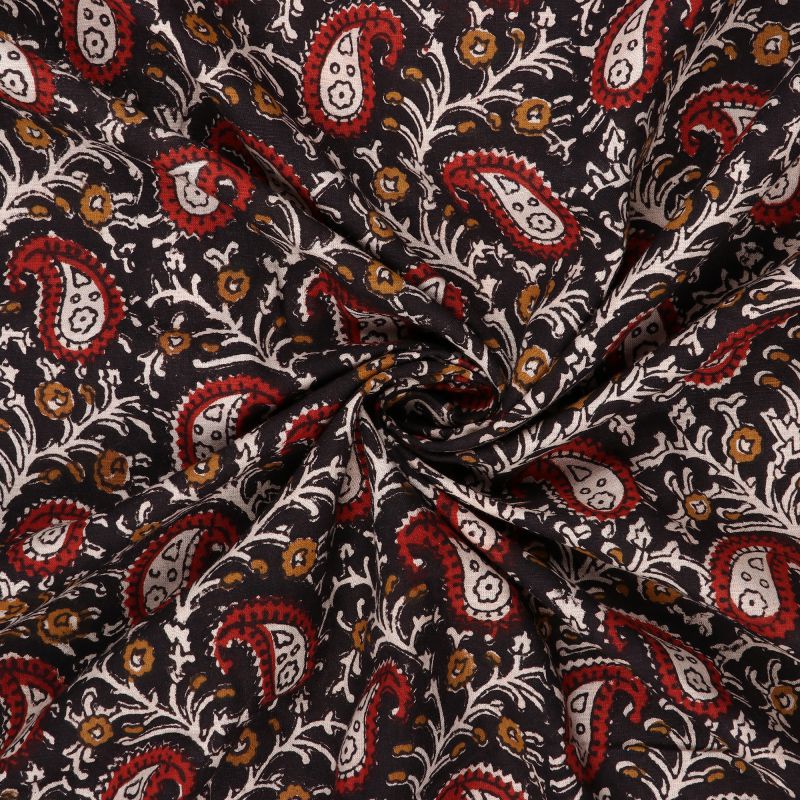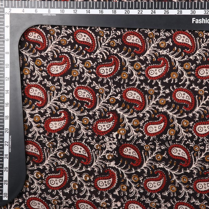 Black And Brown Paisely Kalamkari Handblock Cotton Fabric