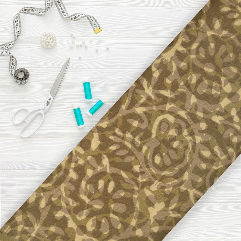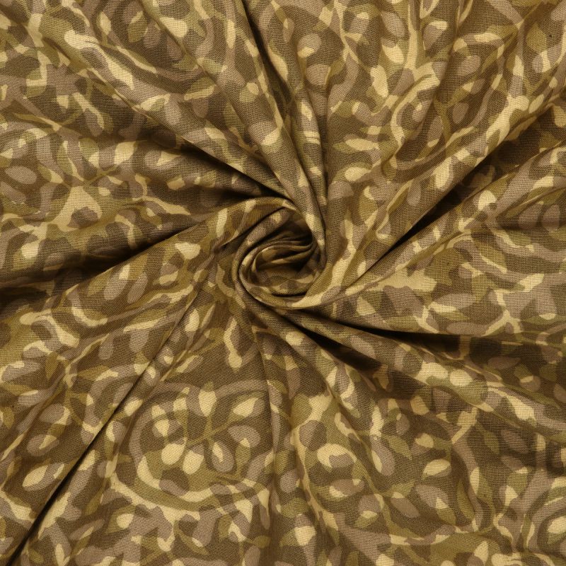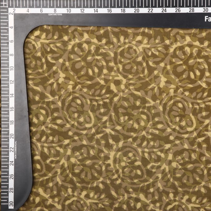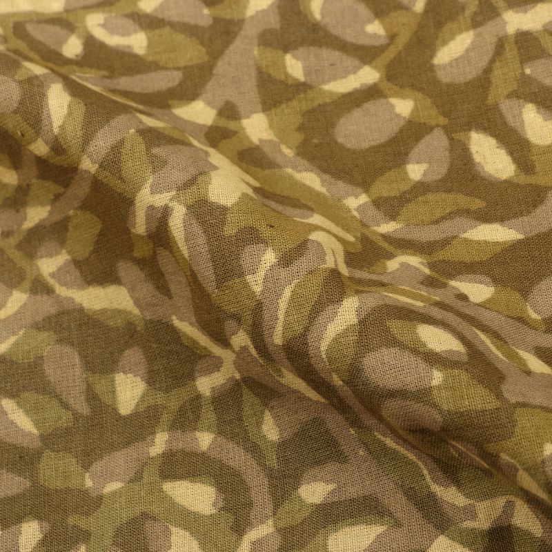 Olive Green And Beige Floral Pattern Natural Dyed Handblock Cotton Fabric