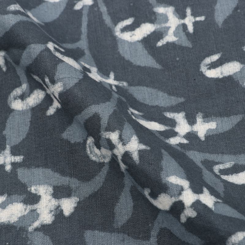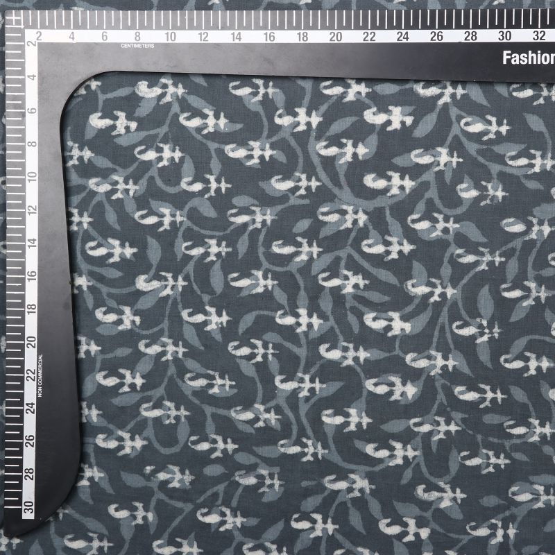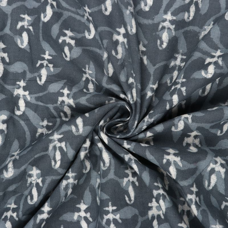 Dark Grey And White Paisely Natural Dye Handblock Cotton Fabric