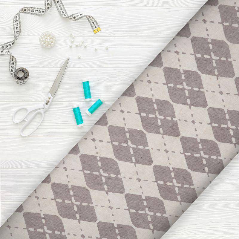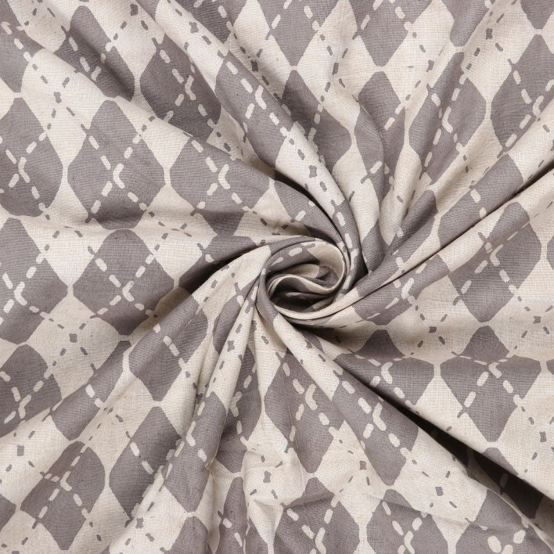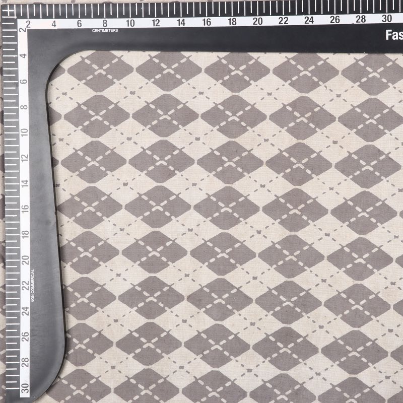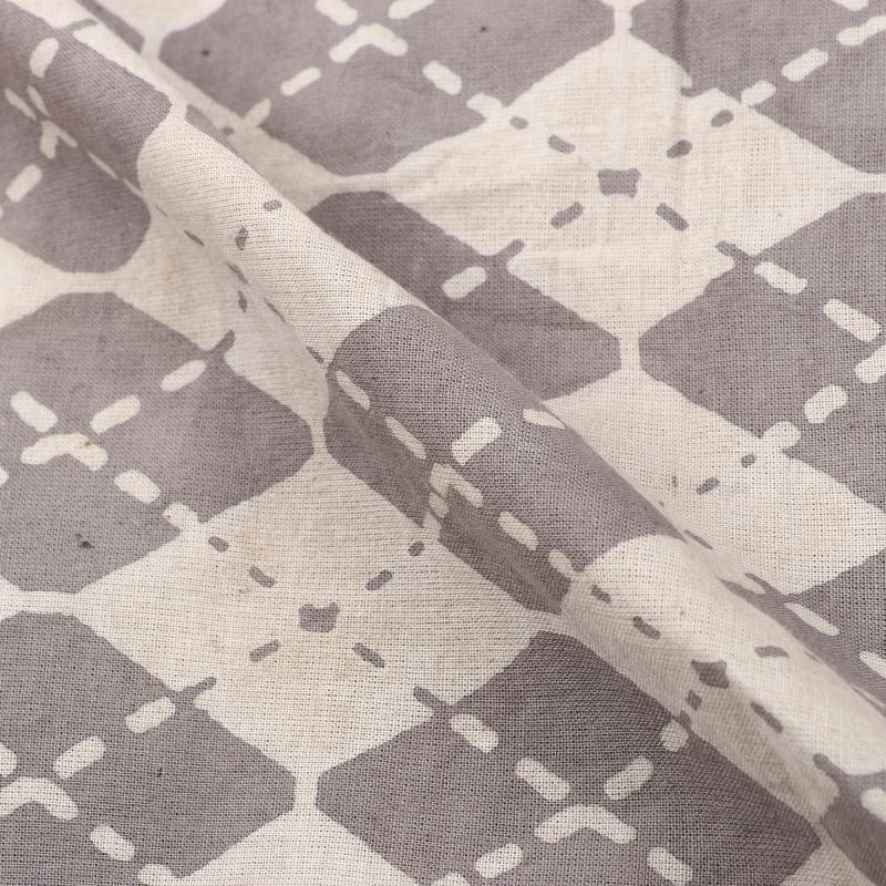 Mink Grey Geometric Natural Dye Handblock Cotton Fabric