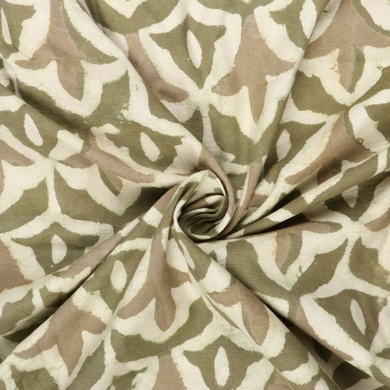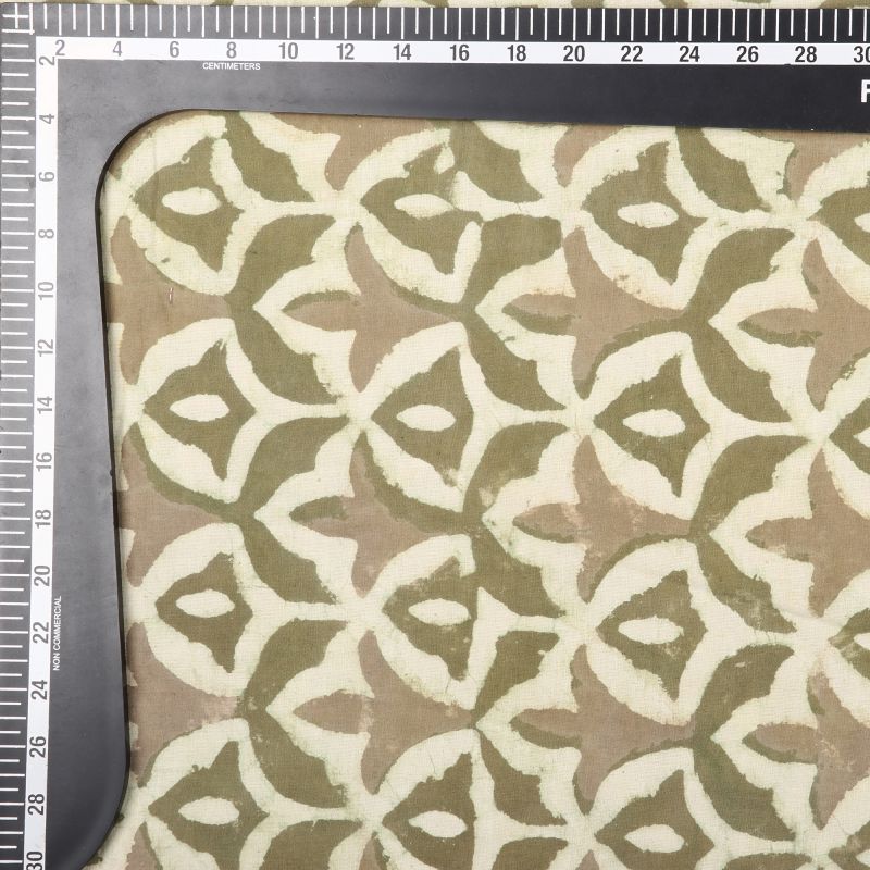 Moss Green Traditional Akola Handblock Cotton Fabric