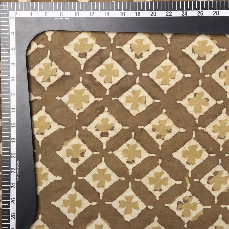 Olive Green Geometric Natural Dye Handblock Cotton Fabric