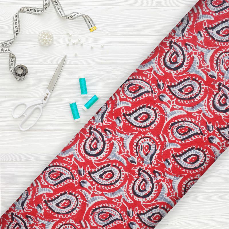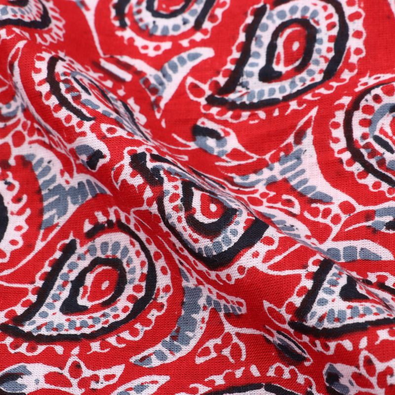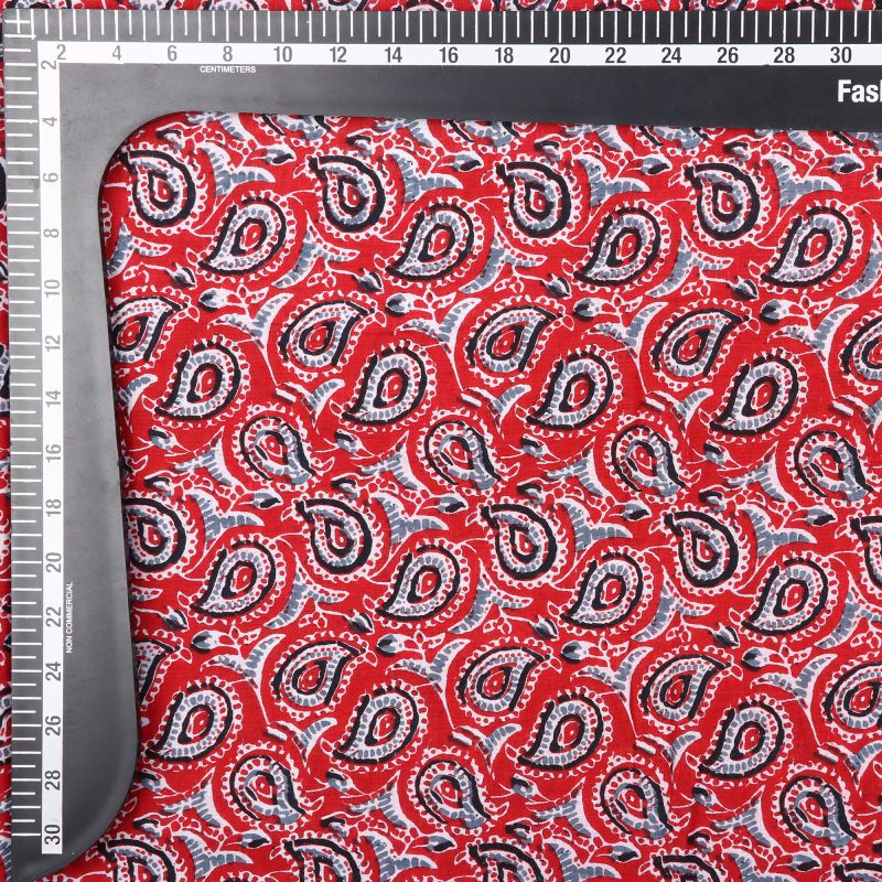 Red And Black Paisely Kalamkari Handblock Cotton Fabric
