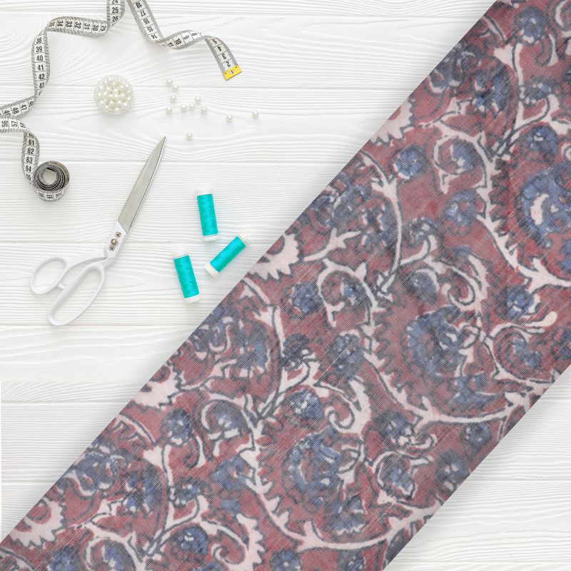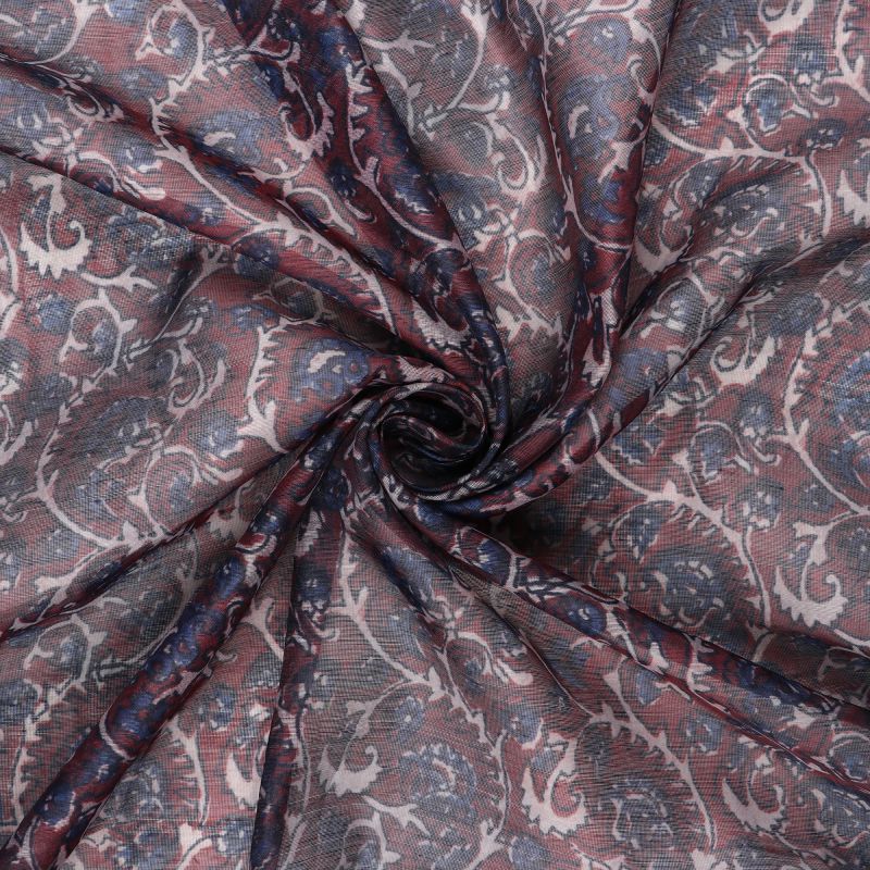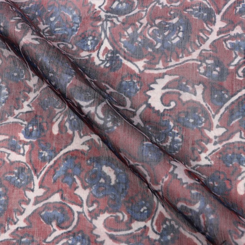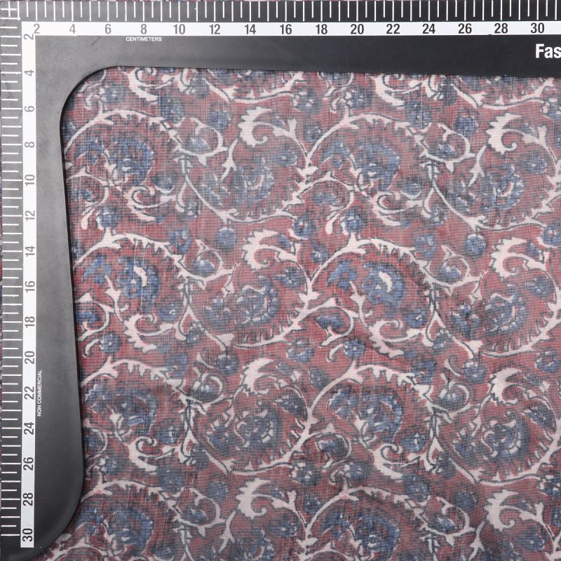 Red And Blue Floral Pattern Digital Print Chanderi Fabric