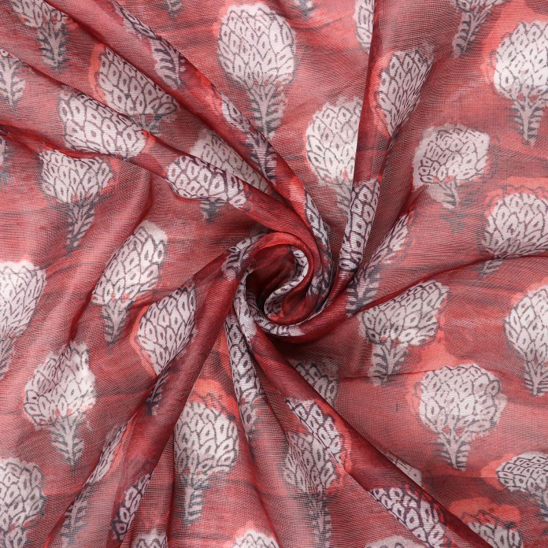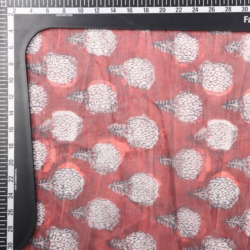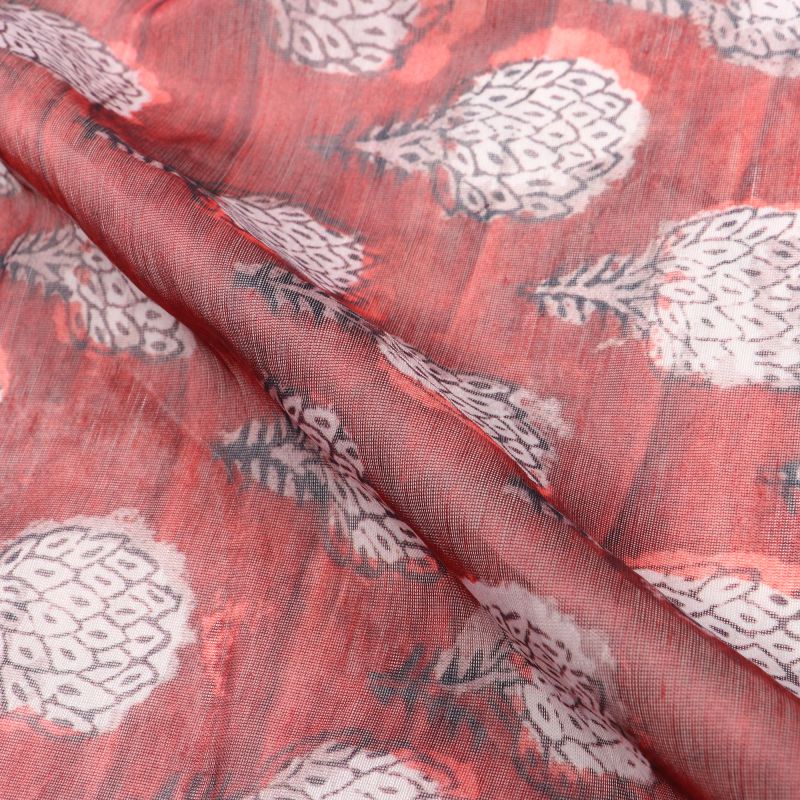 Red And White Floral Pattern Digital Print Chanderi Fabric
