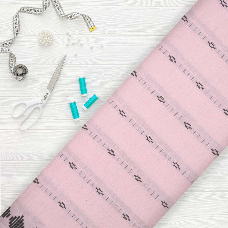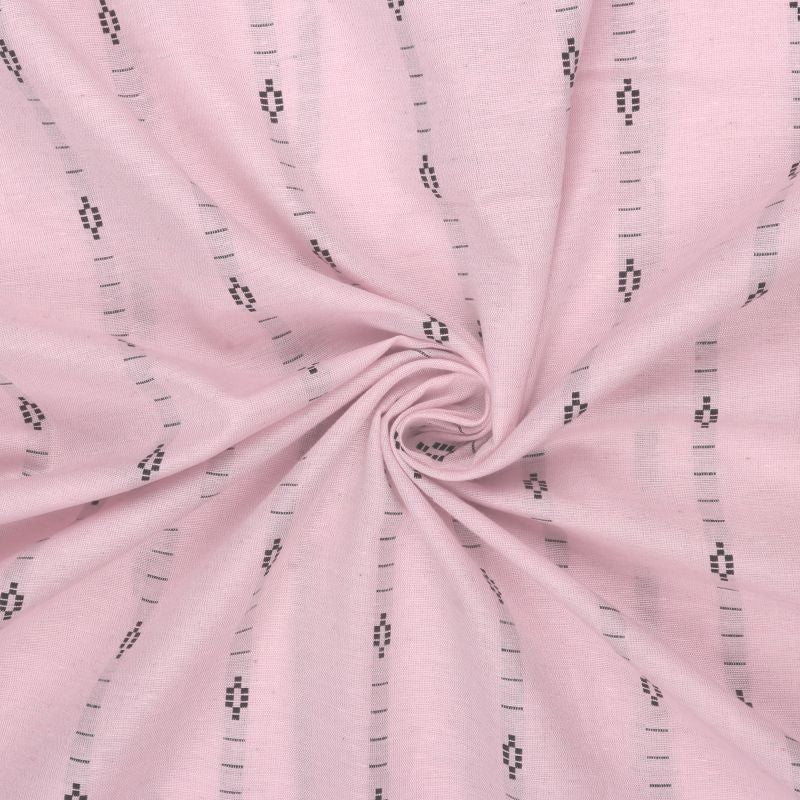 Baby Pink And Black Stripes Pattern Handloom Cotton Fabric