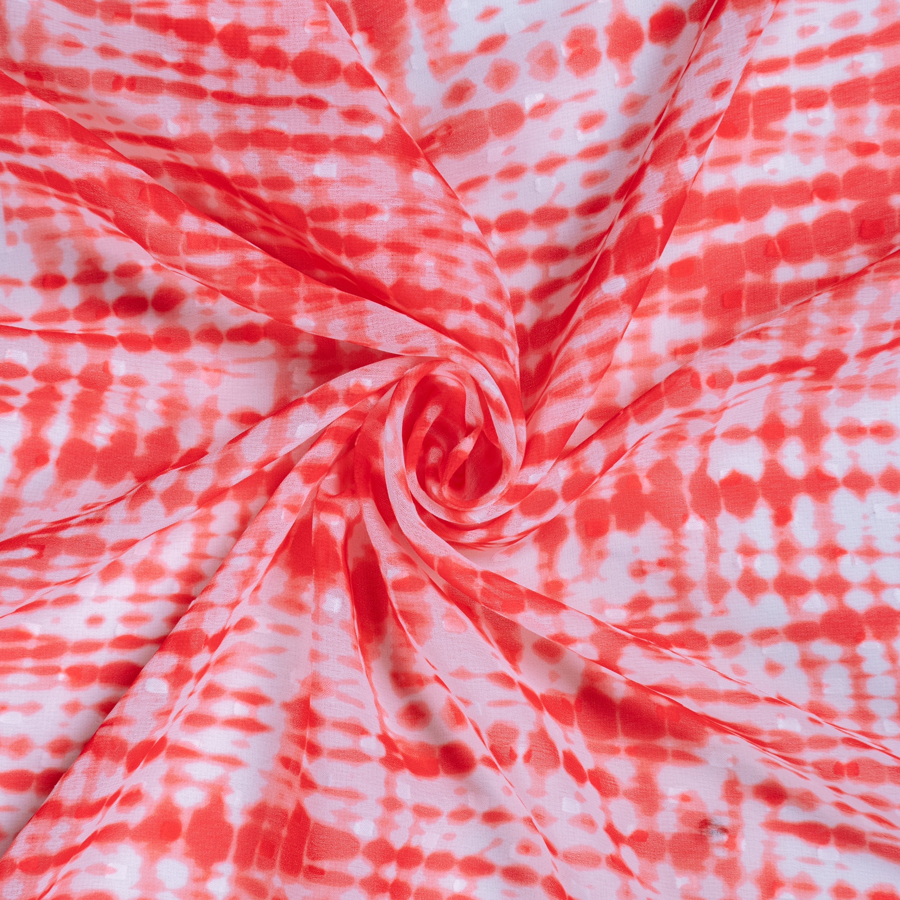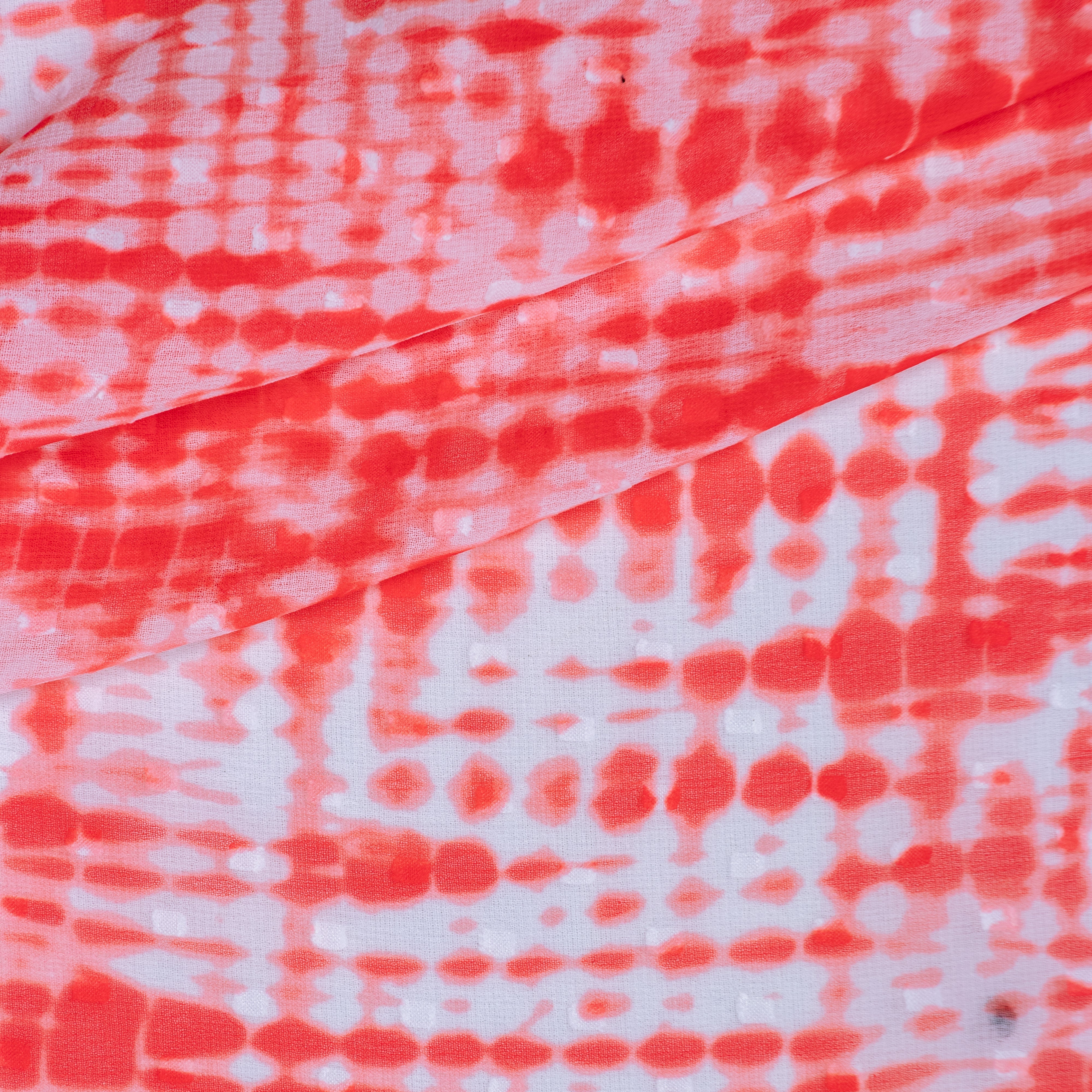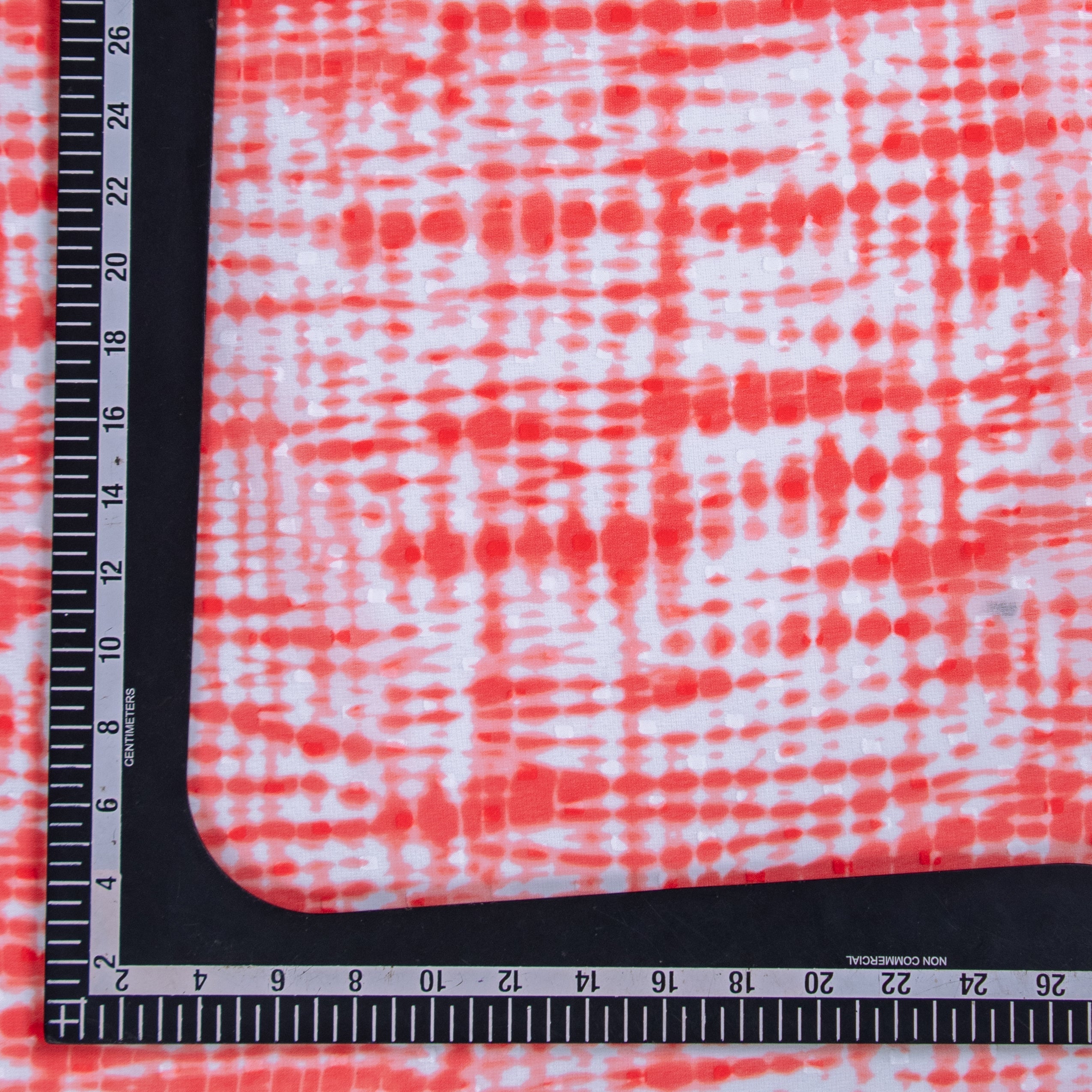 Orange and White Shibori Pattern digital Print Georgette Dobby Fabric