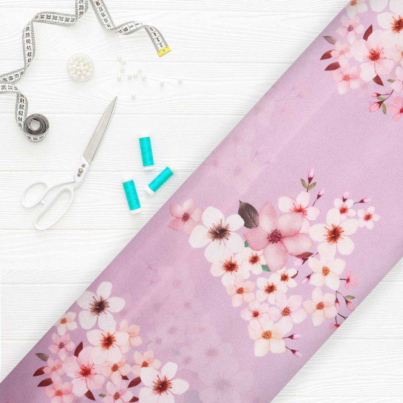 Light Lavender And Rose Pink Floral Pattern Digital Print Japan Satin Fabric