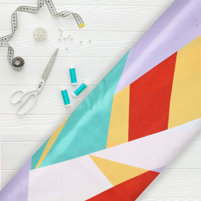 Multi Color Abstract Pattern Digital Print Japan Satin Fabric