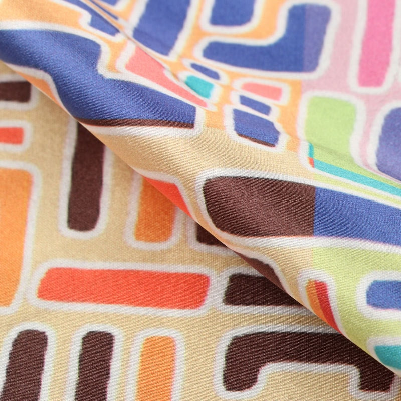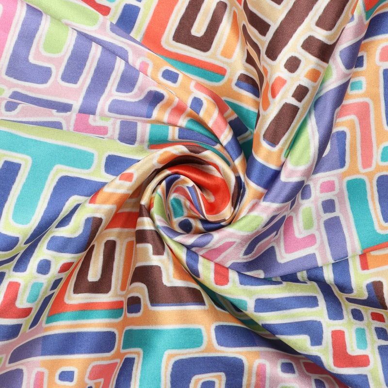 Multi Color Abstract Pattern Digital Print Japan Satin Fabric