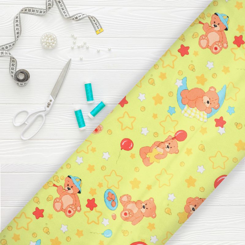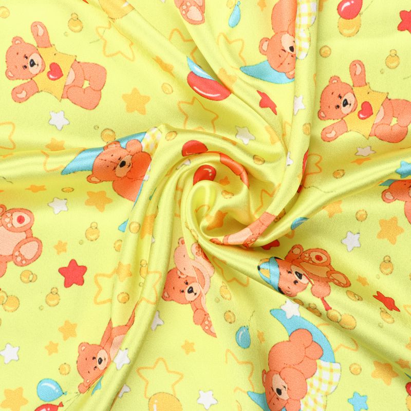 Bright Yellow And Orange Kids Pattern Digital Print Japan Satin Fabric
