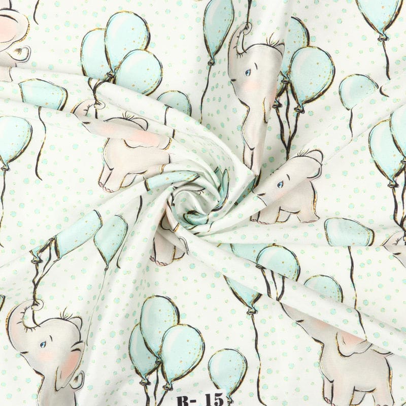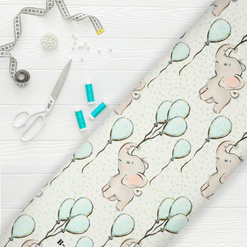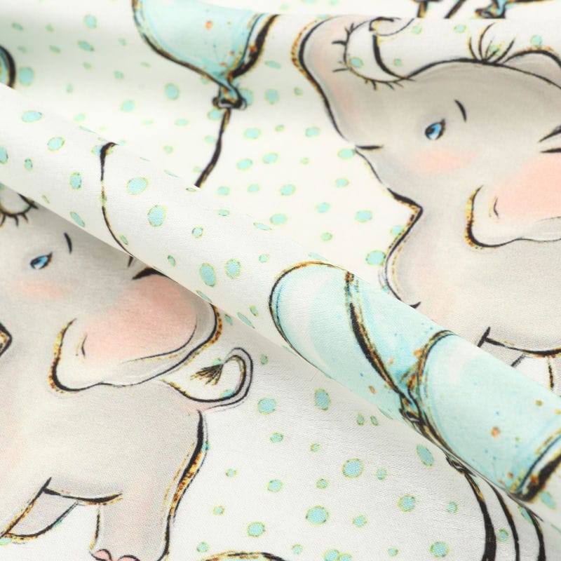 Grey And Turquoise Kids Pattern Digital Print Japan Satin Fabric