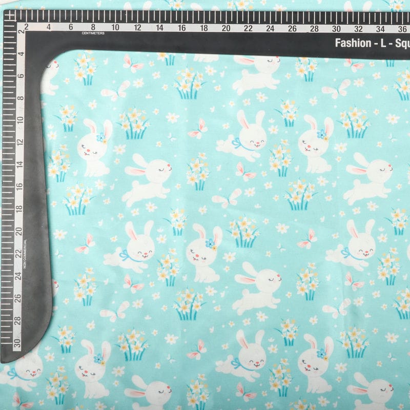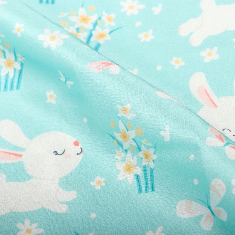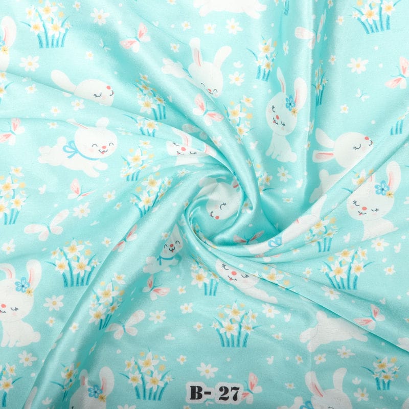 Light Turquoise And White Kids Pattern Digital Print Japan Satin Fabric