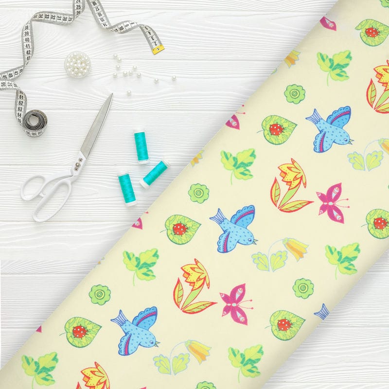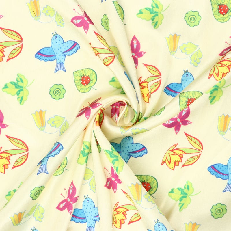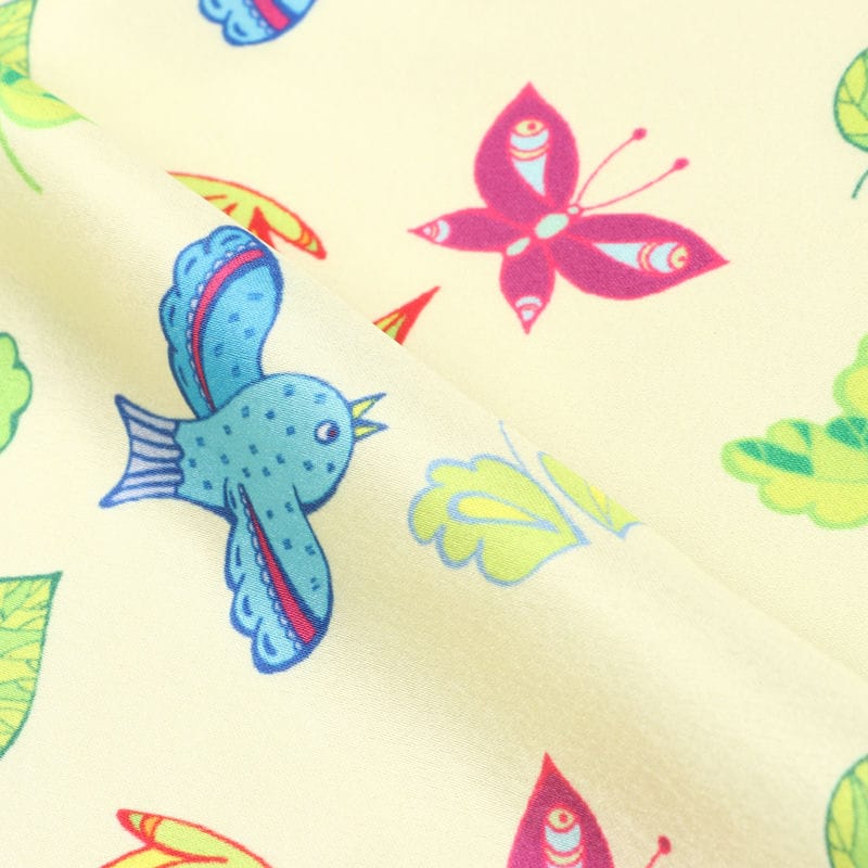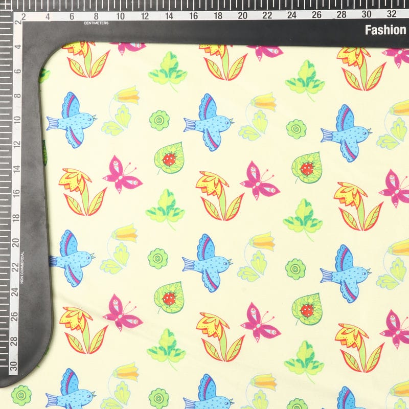 Light Yellow And Blue Kids Pattern Digital Print Japan Satin Fabric
