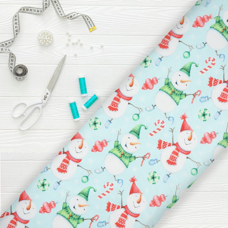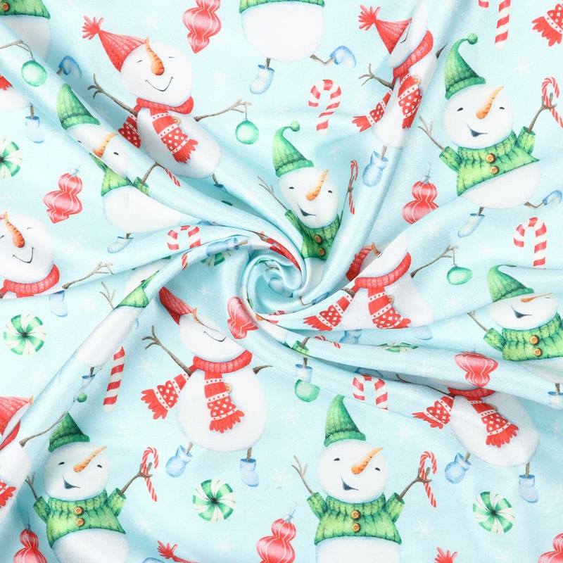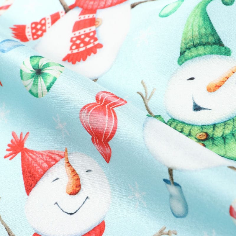 Sky Blue And White Kids Pattern Digital Print Japan Satin Fabric