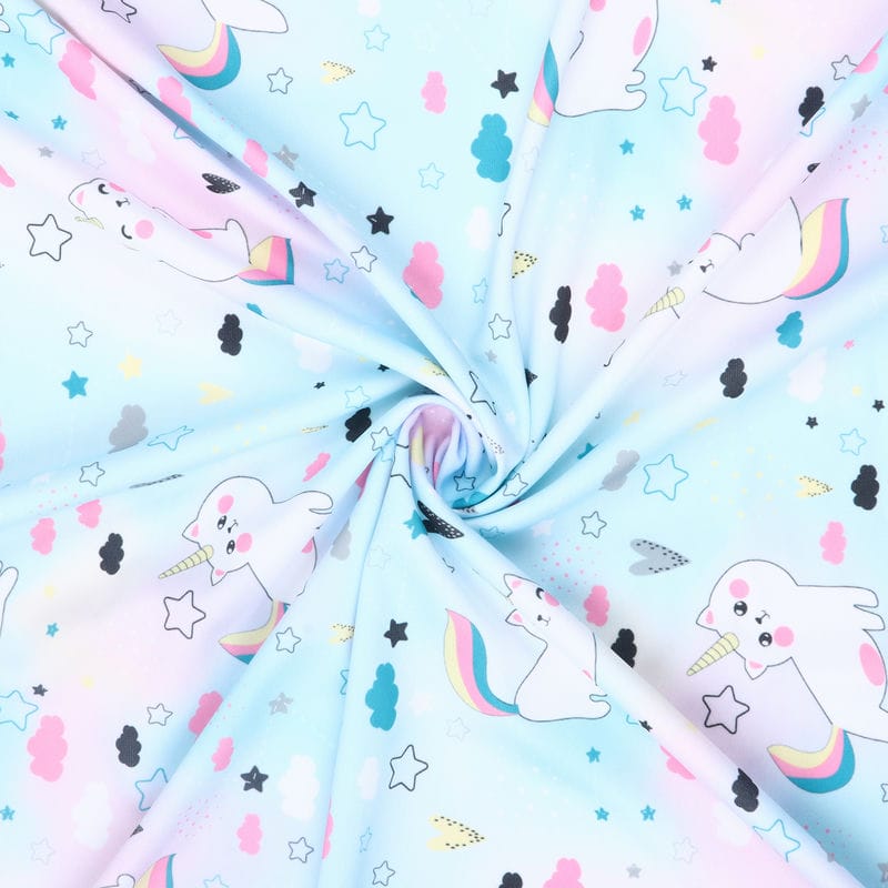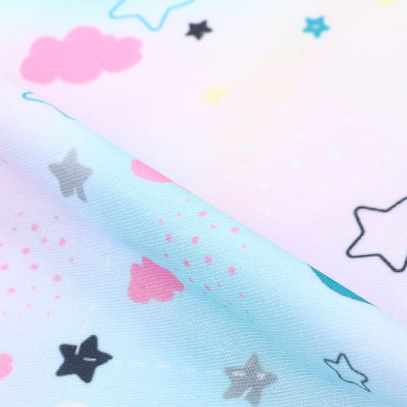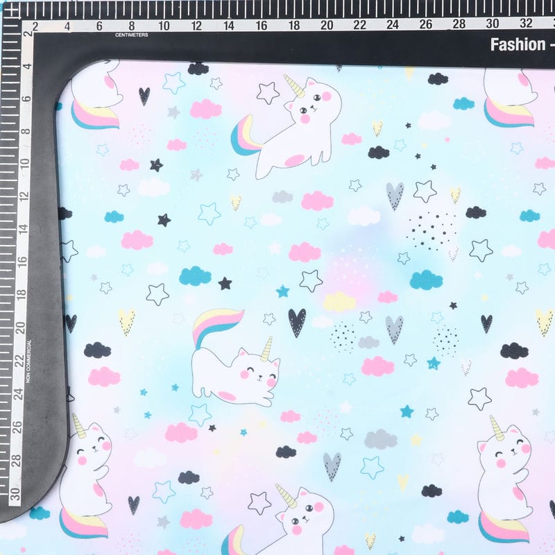 Sky Blue And White Kids Pattern Digital Print Lycra Fabric