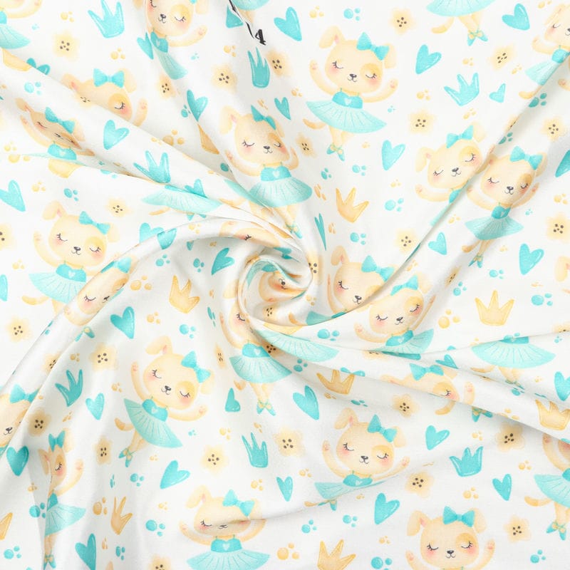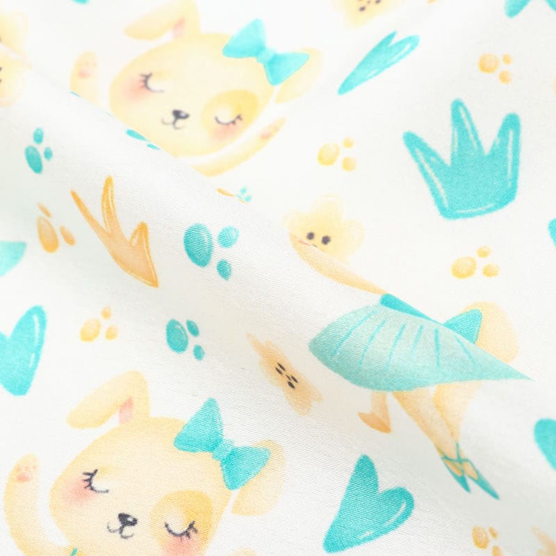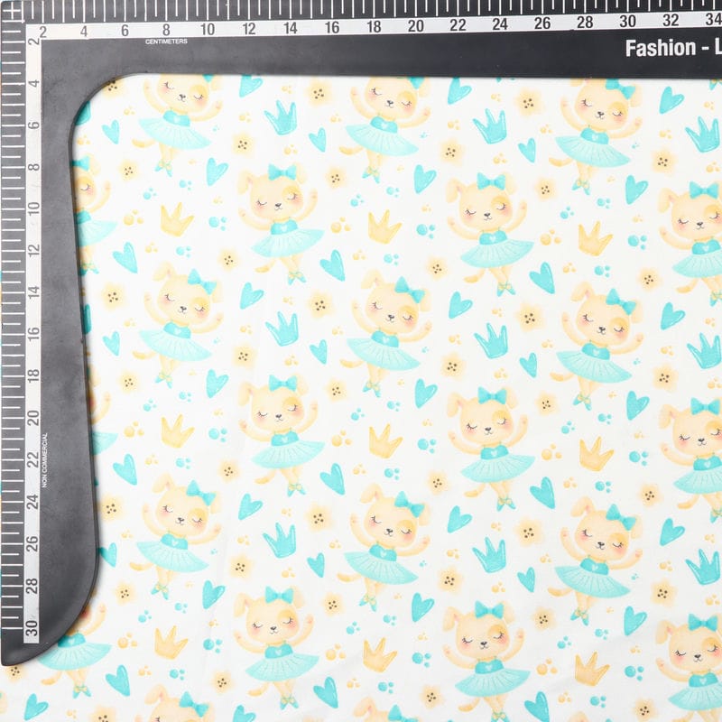 Turquoise And Yellow Kids Pattern Digital Print Japan Satin Fabric