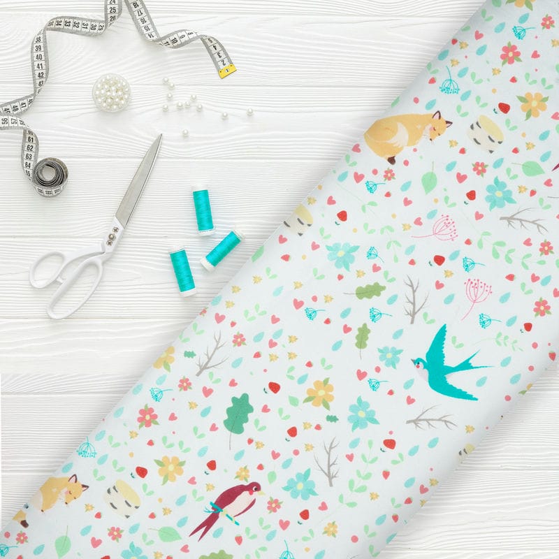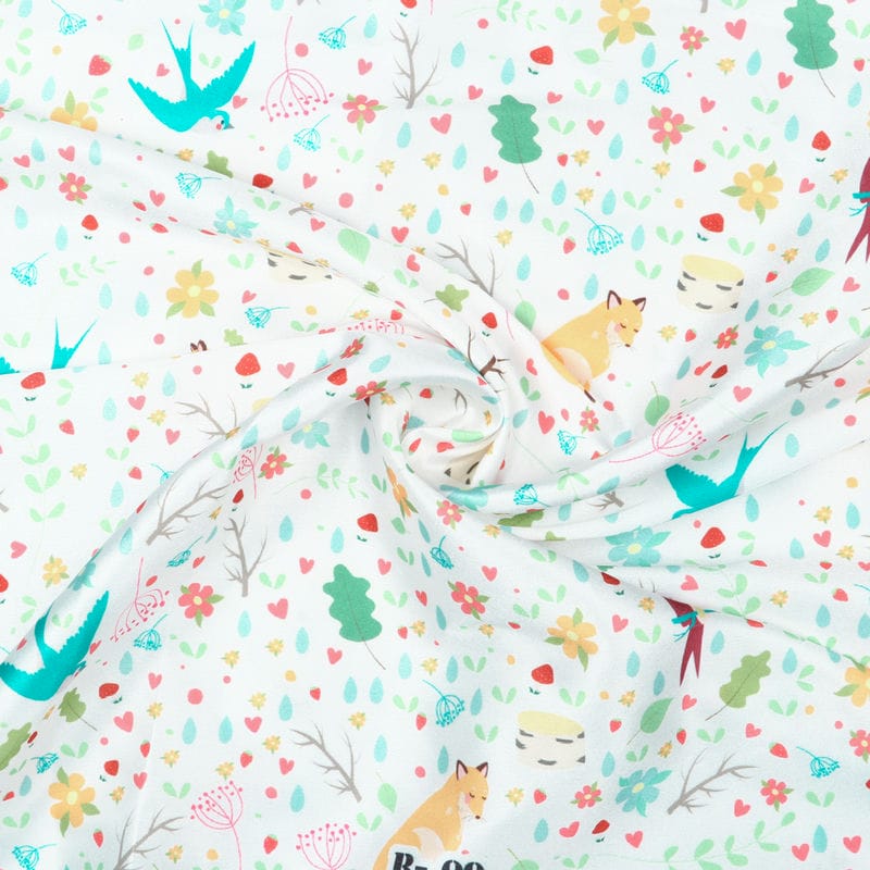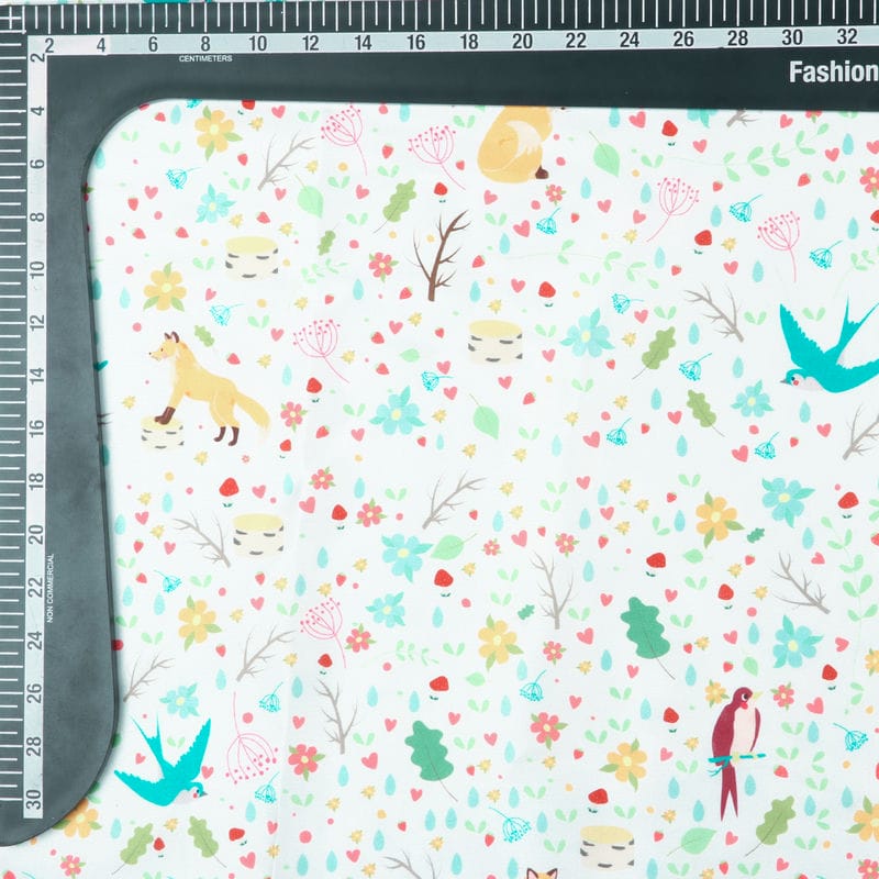 White And Parrot Green Kids Pattern Digital Print Japan Satin Fabric