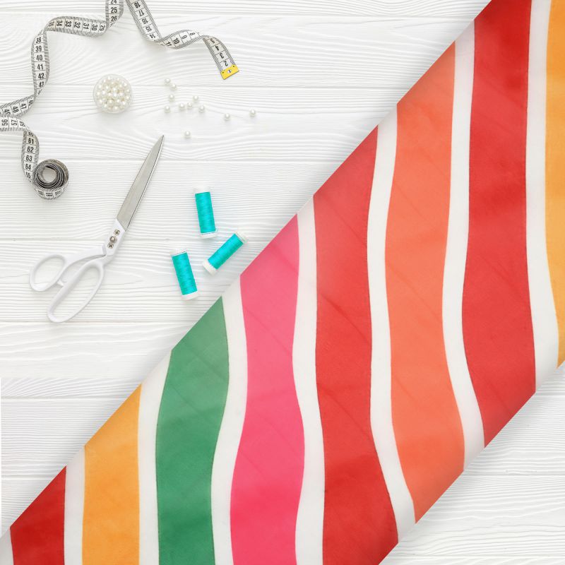 Multi Color Leheriya Pattern Digital Print Liquid Organza Fabric