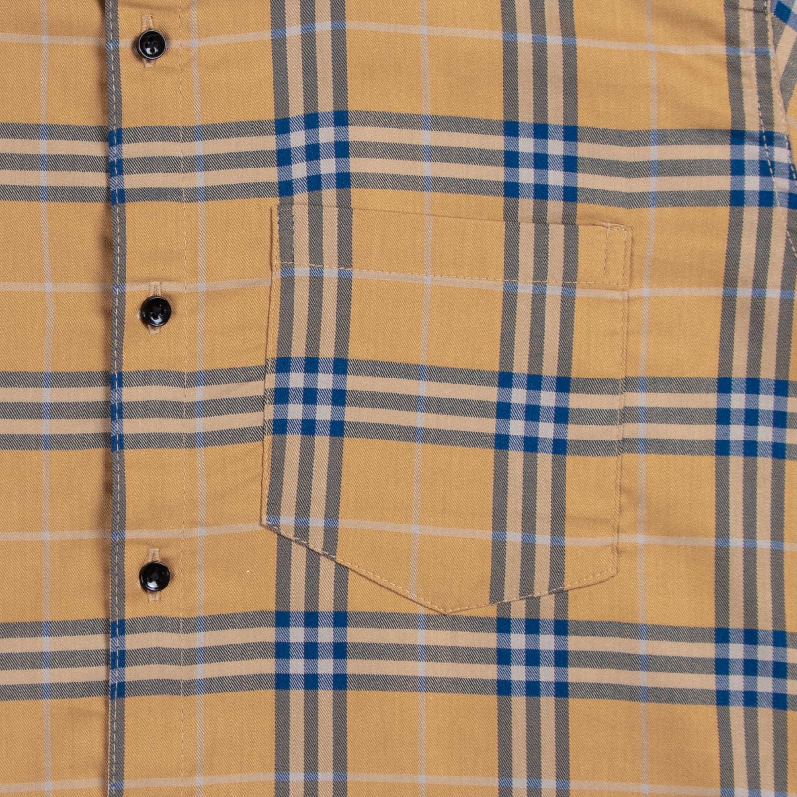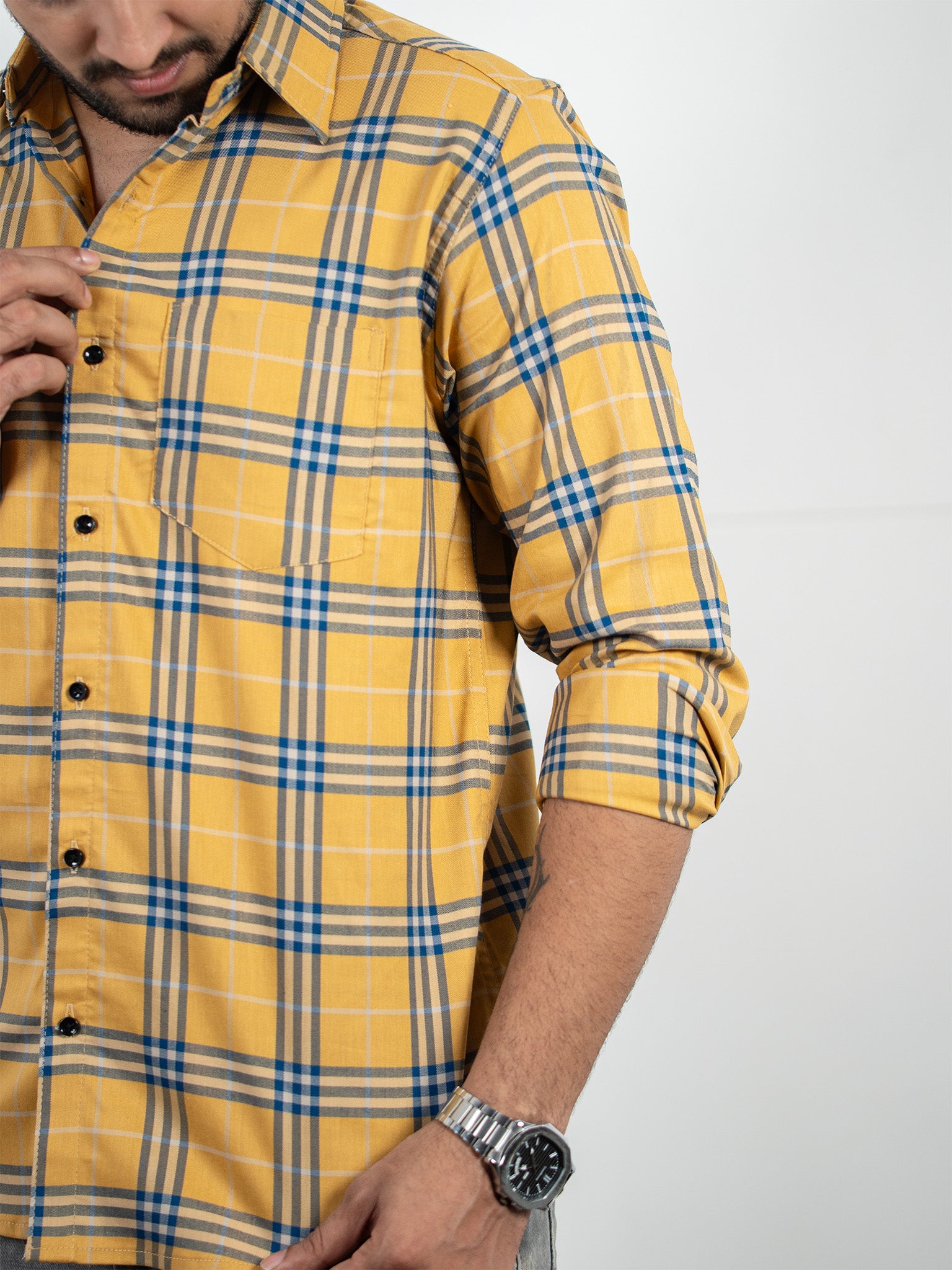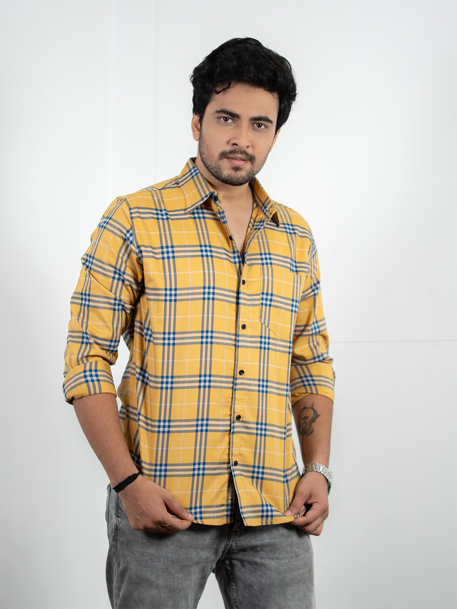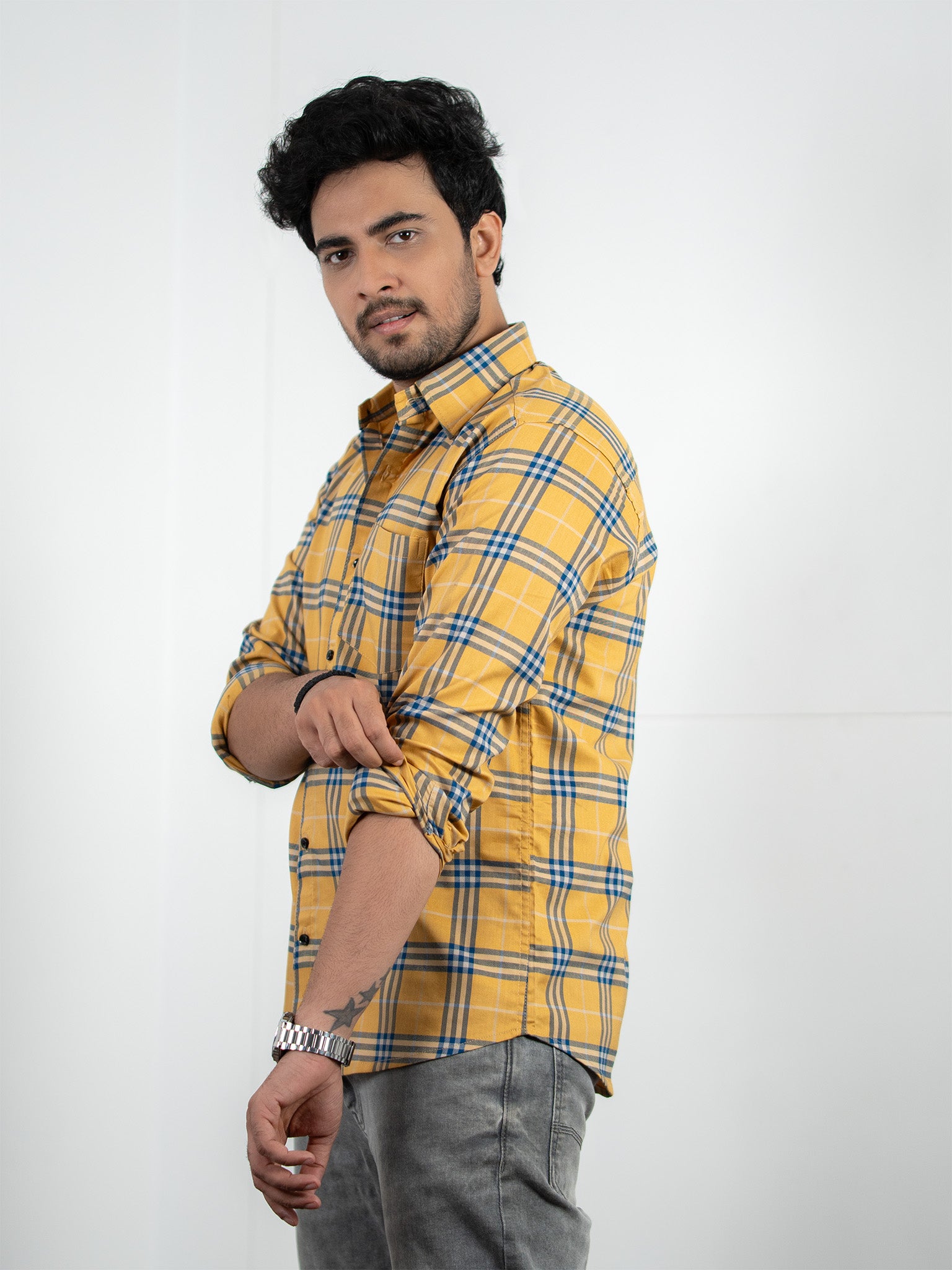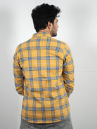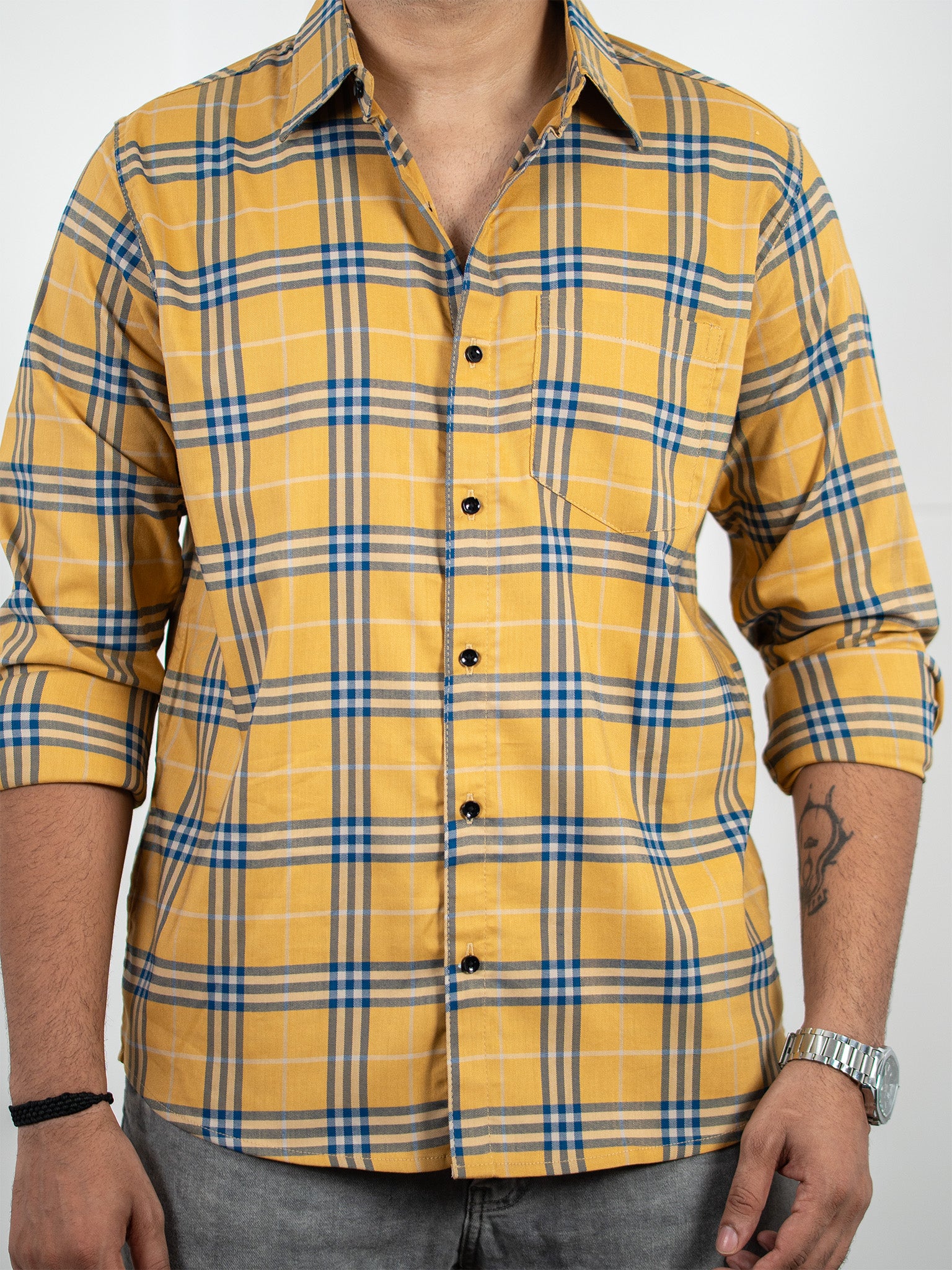 Men's Yellow And Blue Checks Pattern Cotton Shirt