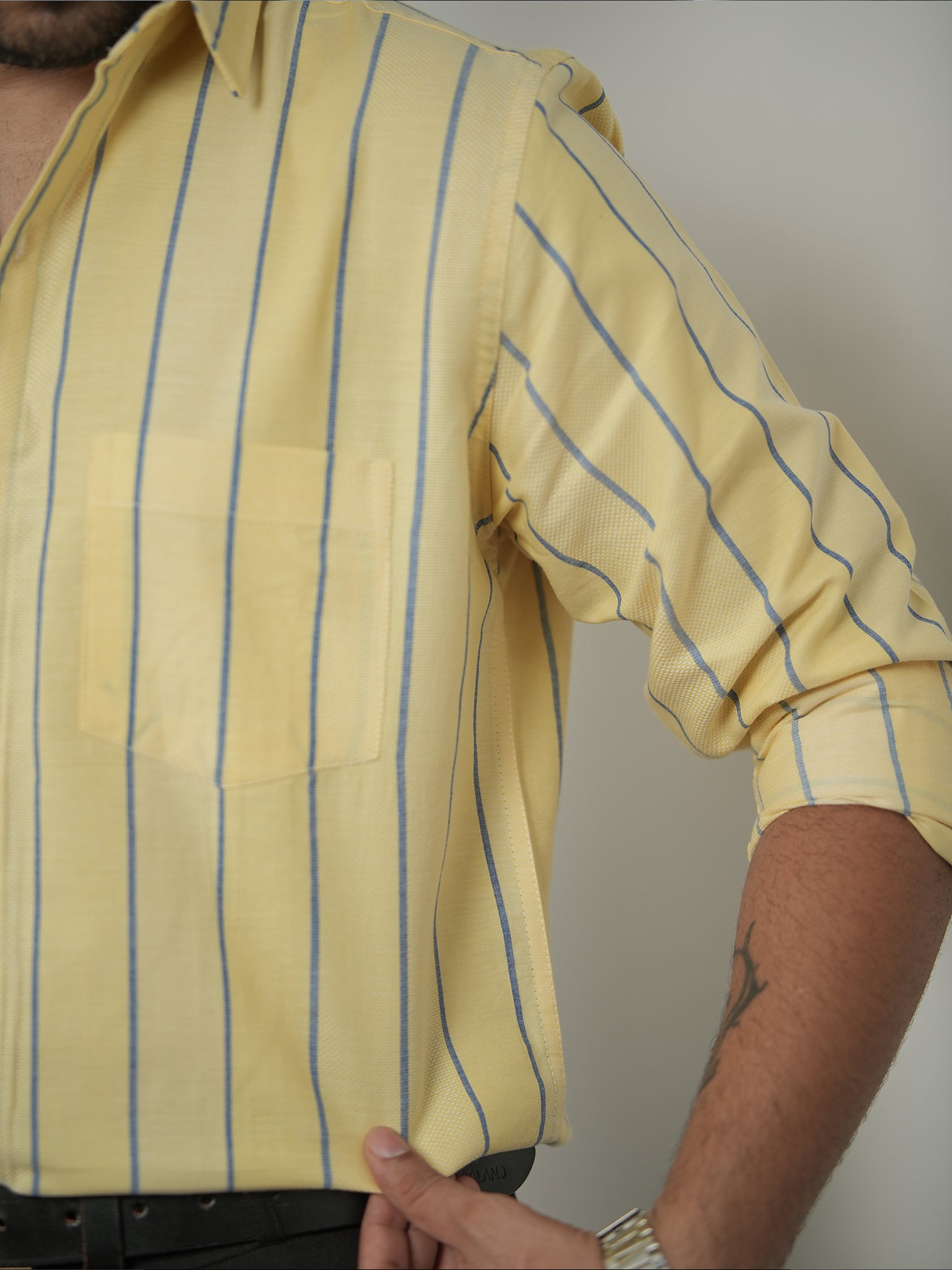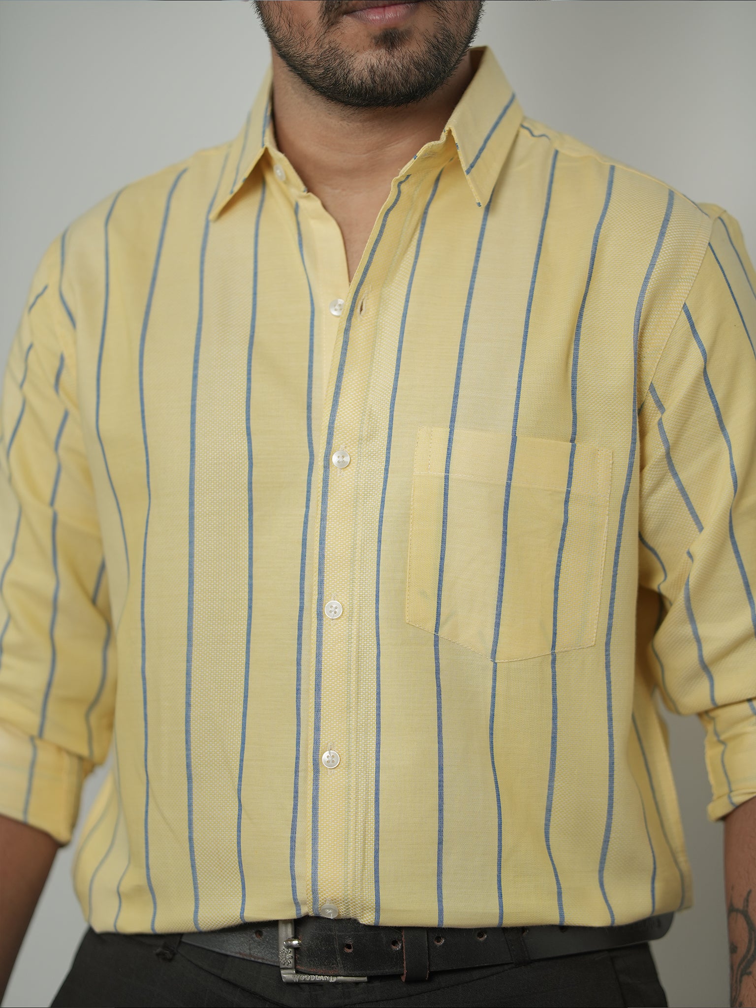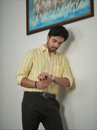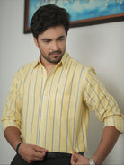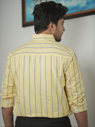 Men's Light Yellow And Blue Stripe Pattern Cotton Shirt