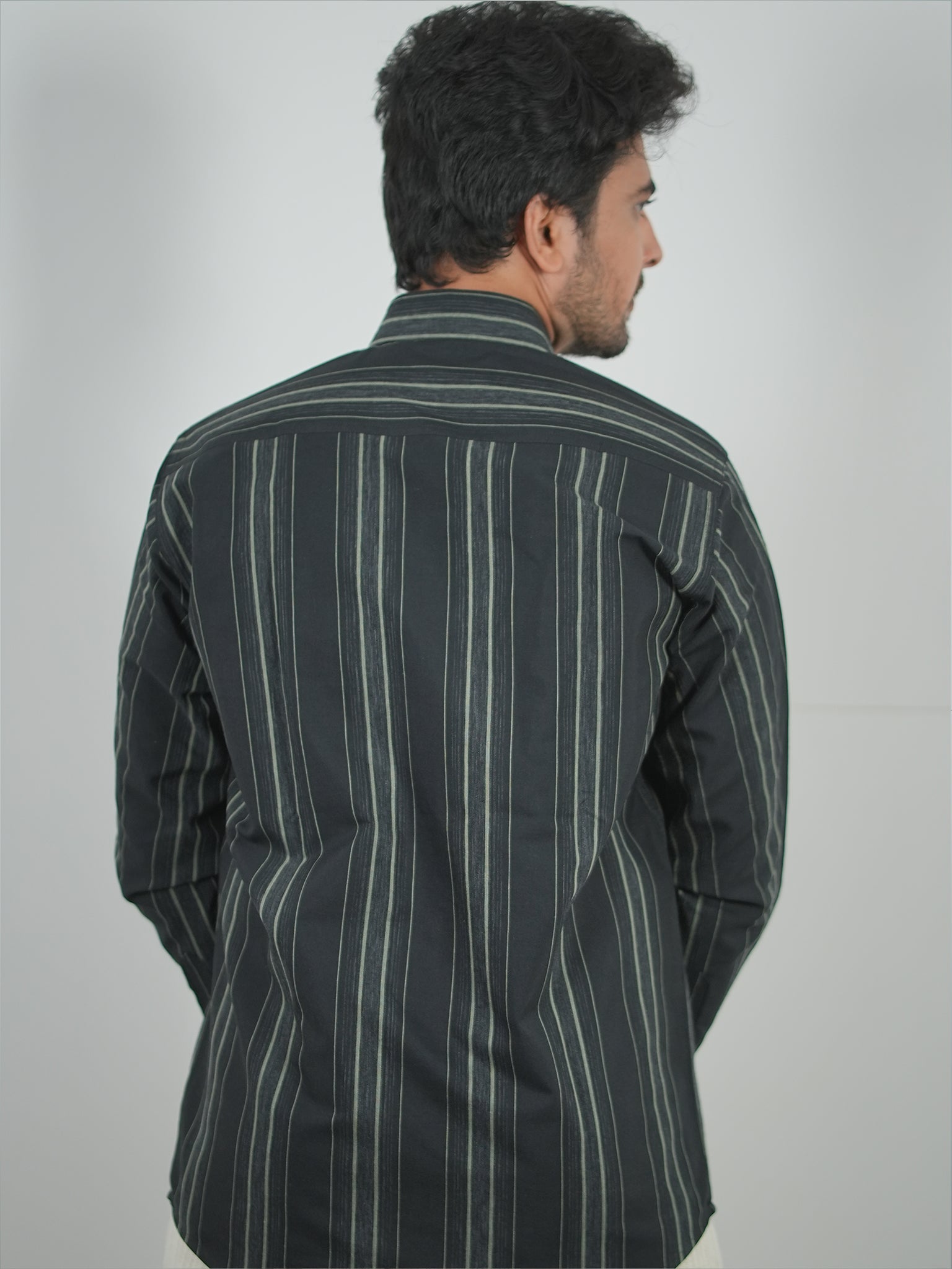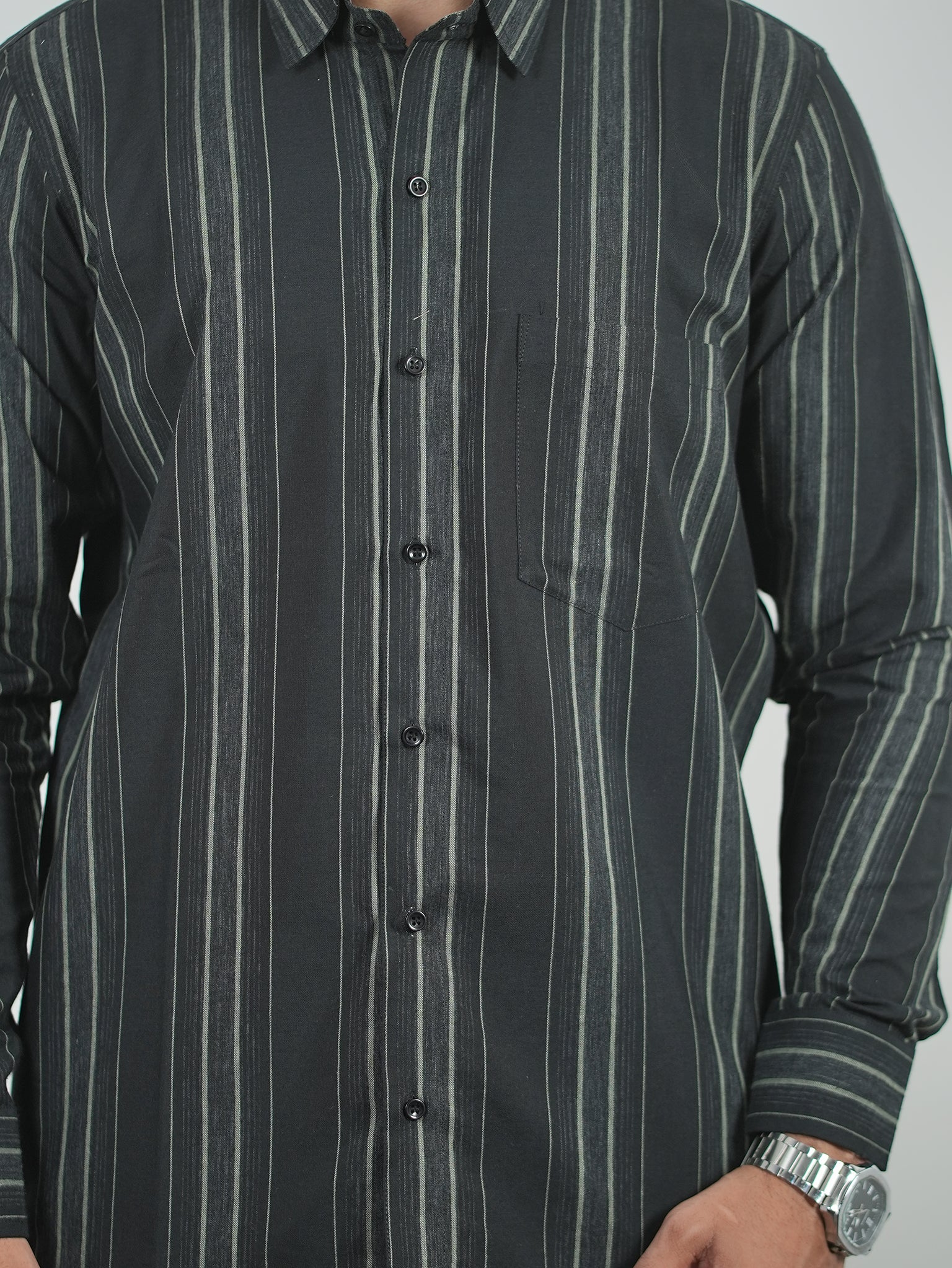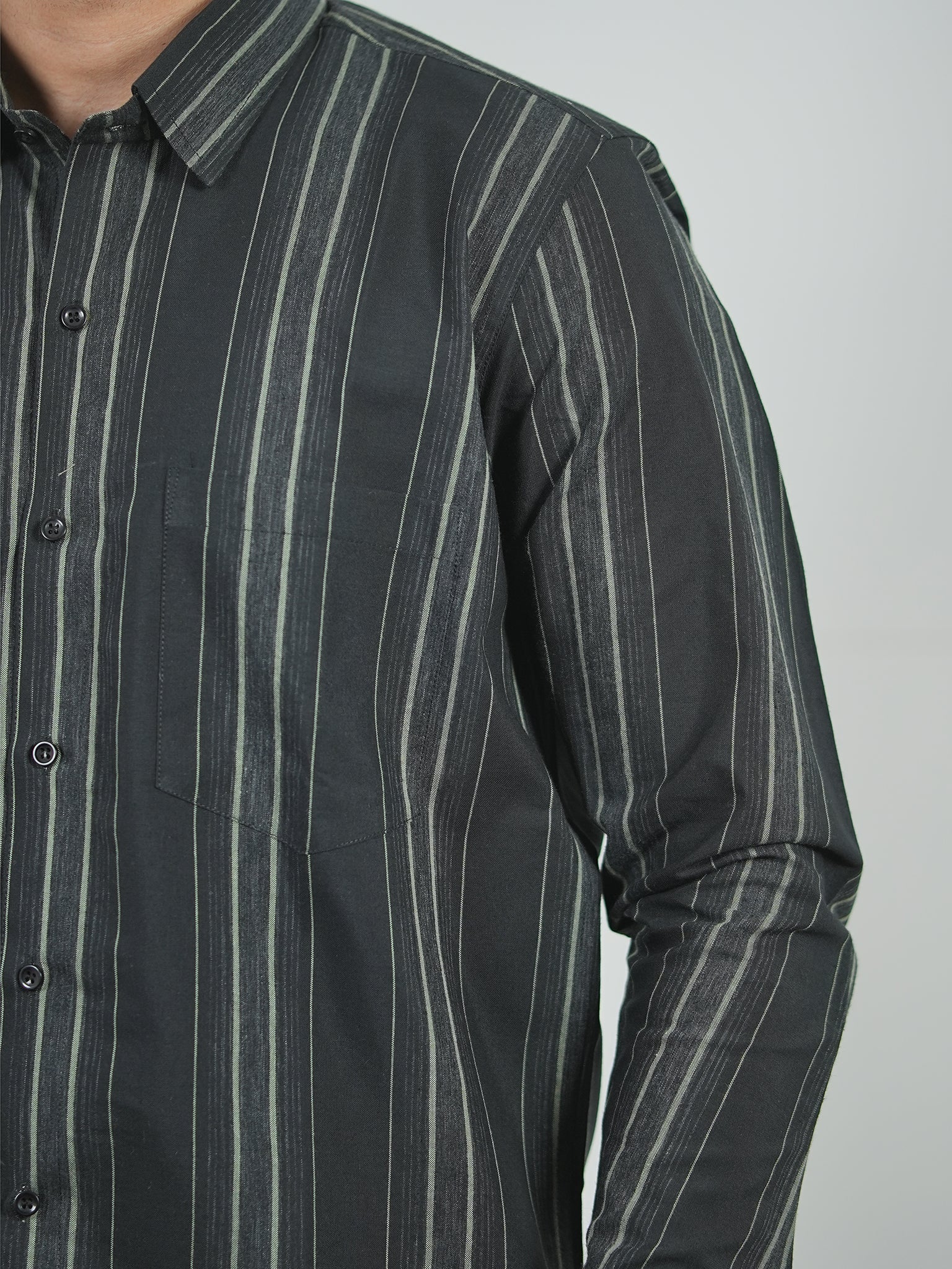 Men's Black And Grey Stripes Pattern Cotton Shirt