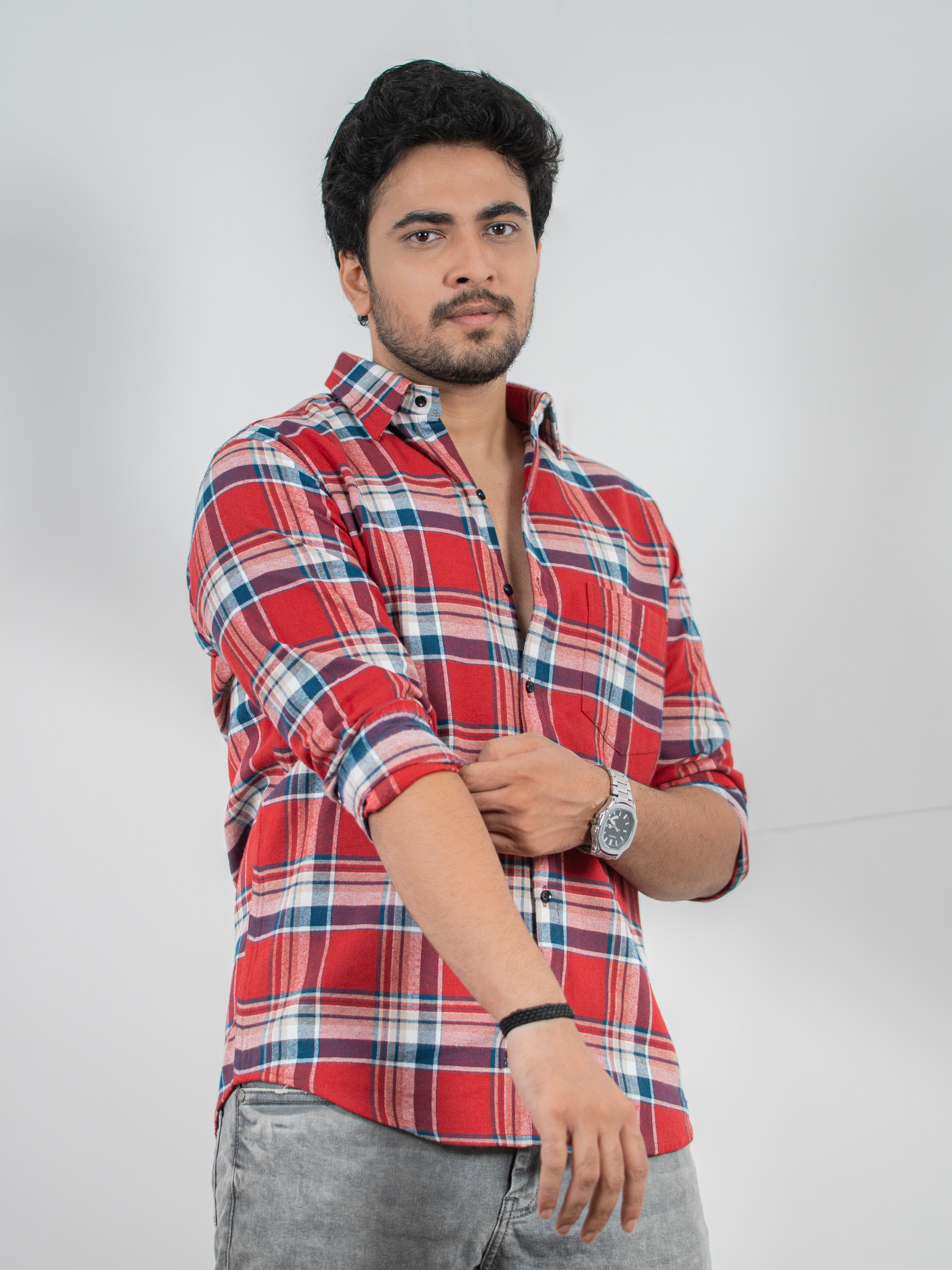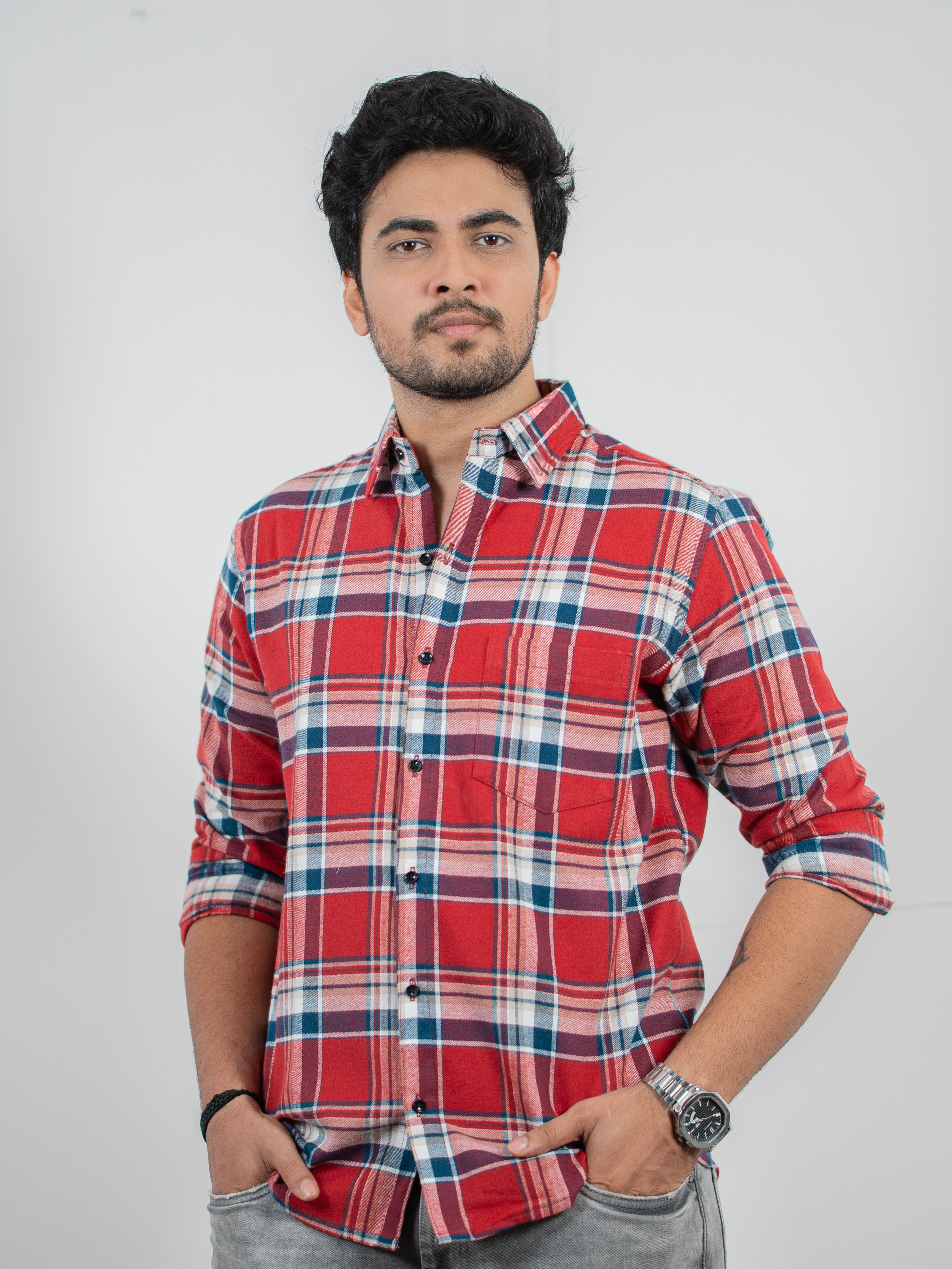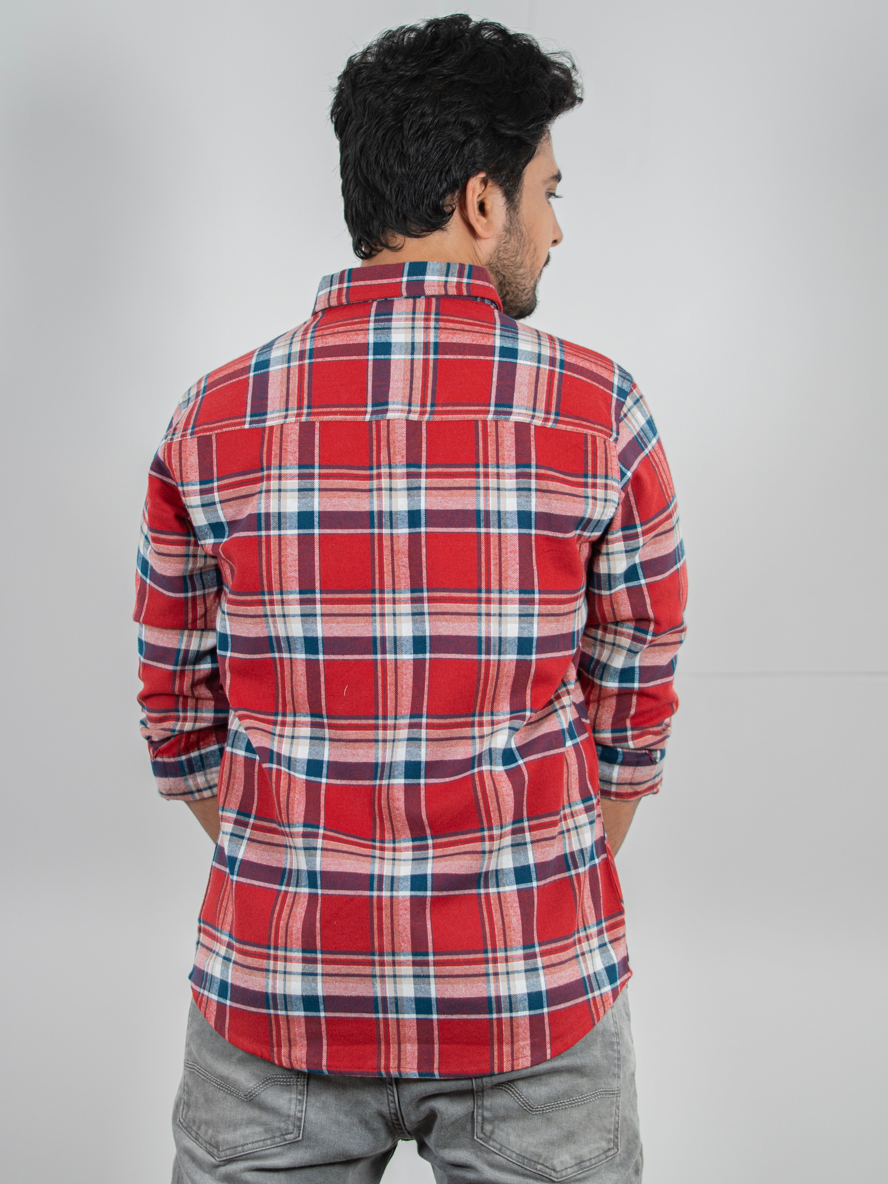 Men's Red And Blue Checks Pattern Cotton Shirt