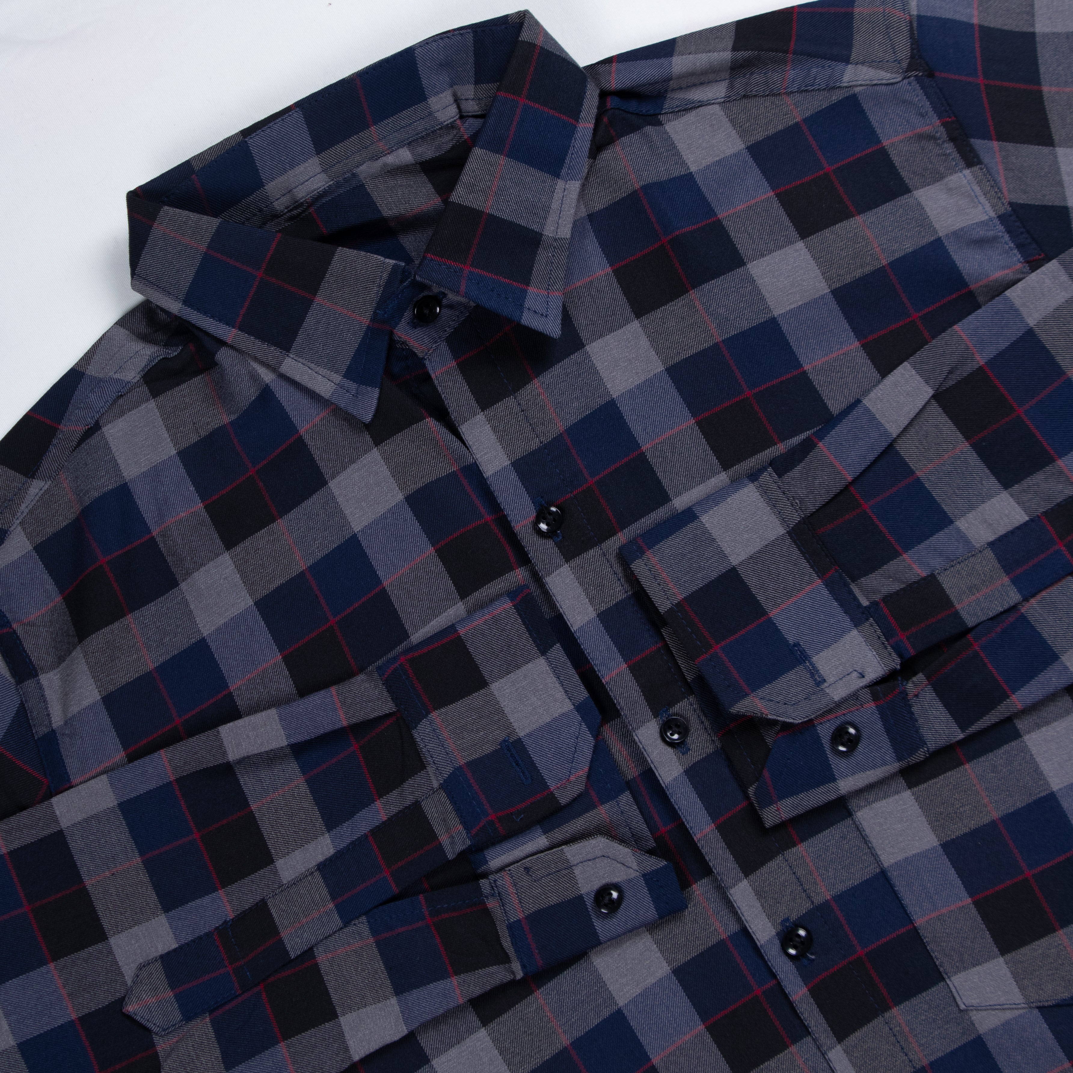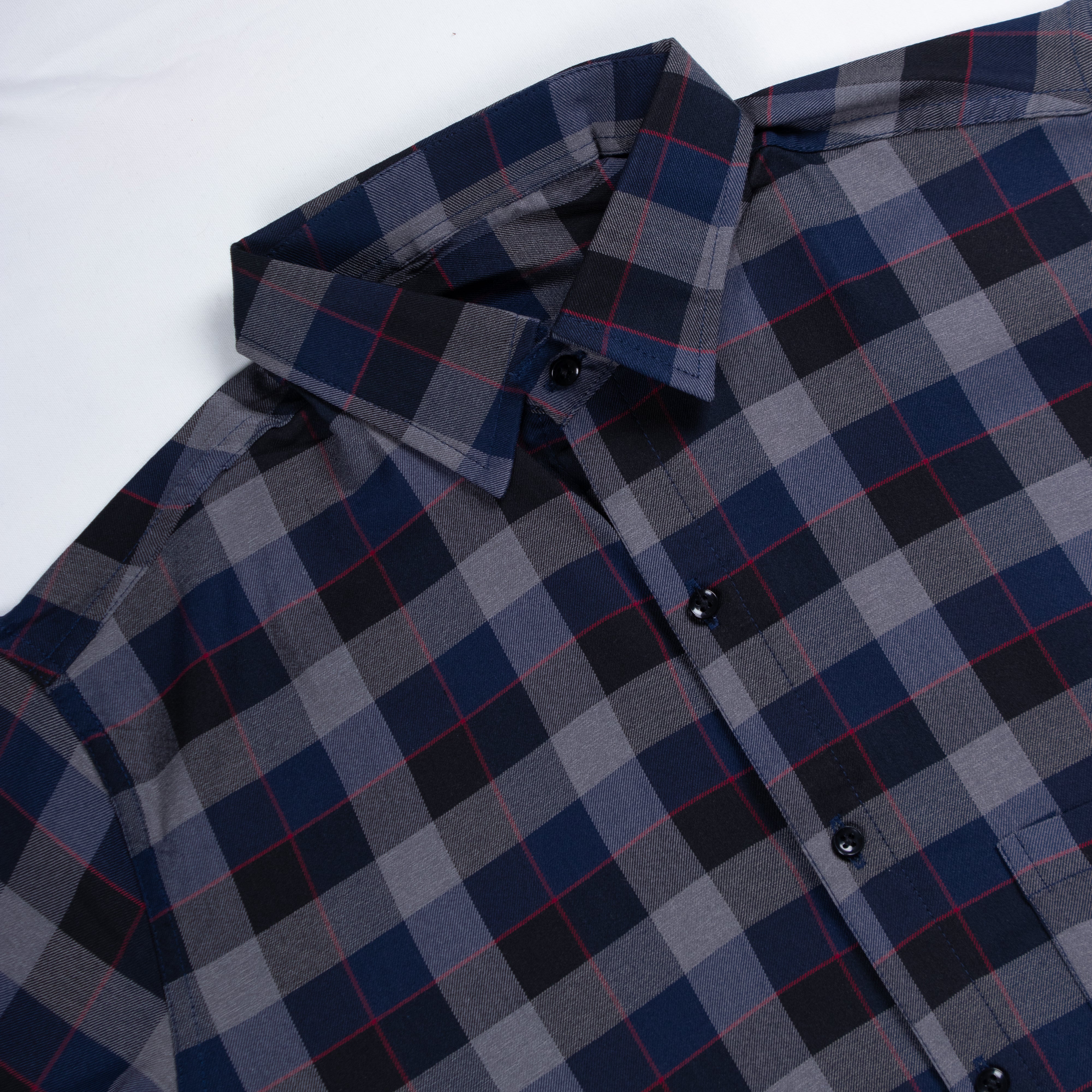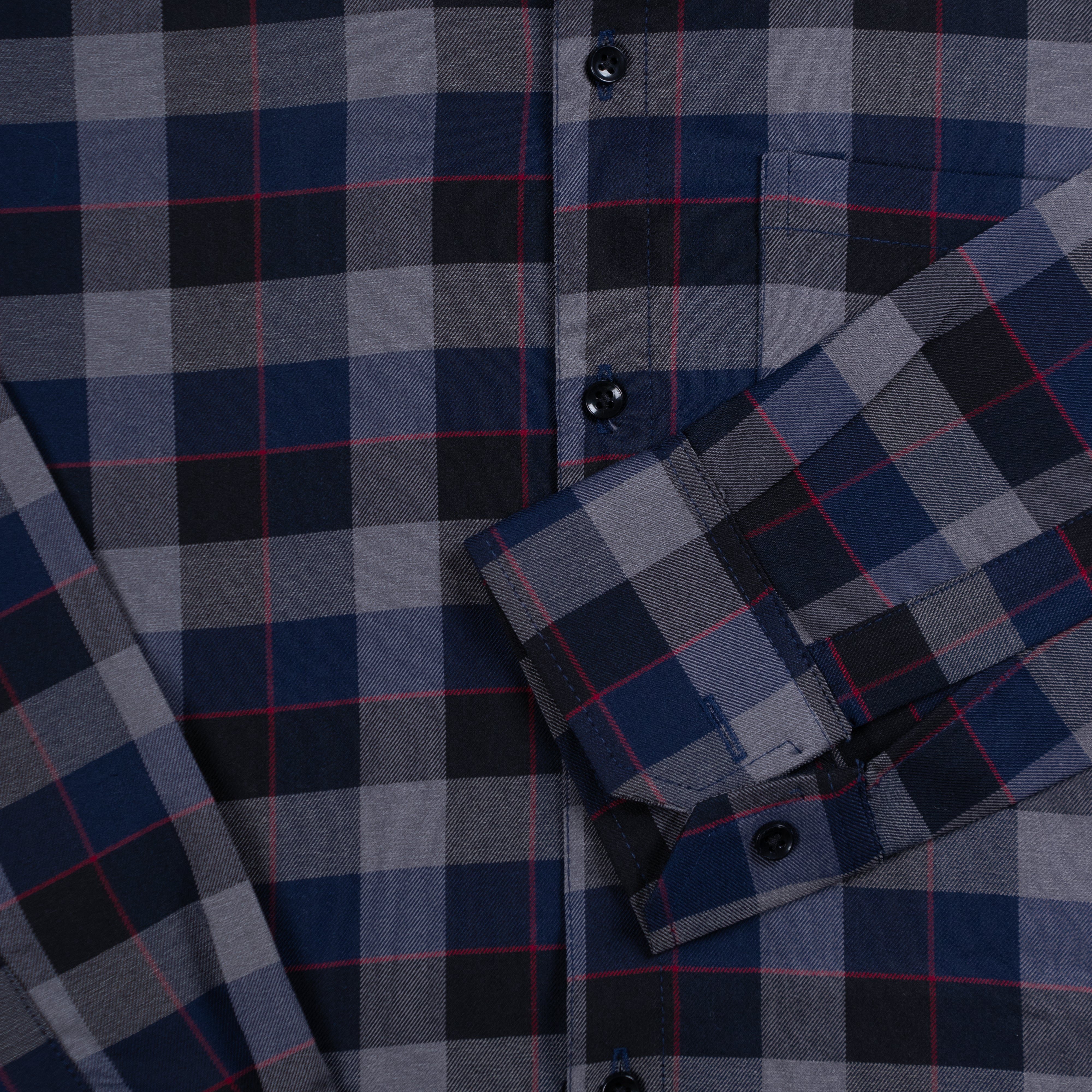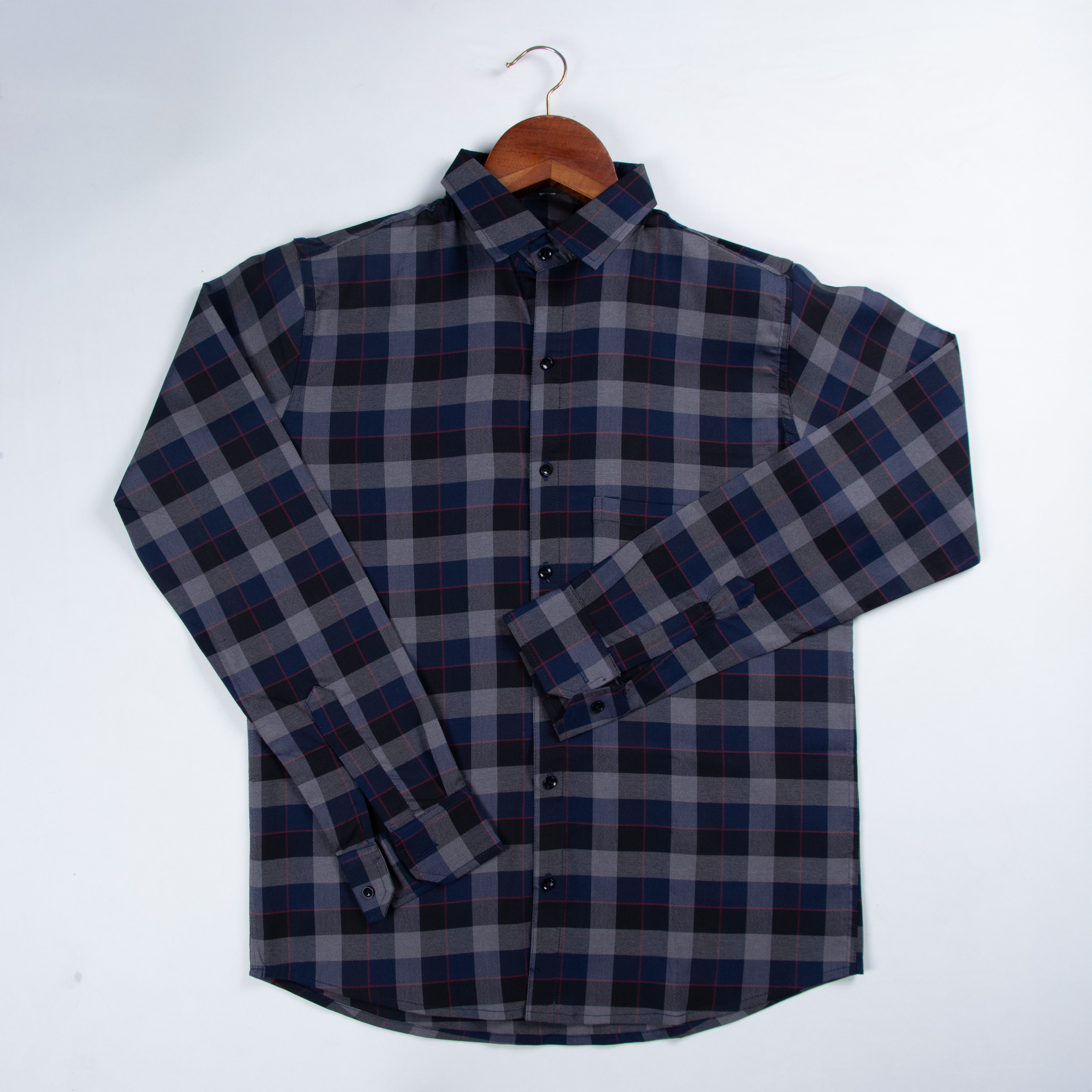 Men's Blue and Grey Checks Pattern Cotton Shirt