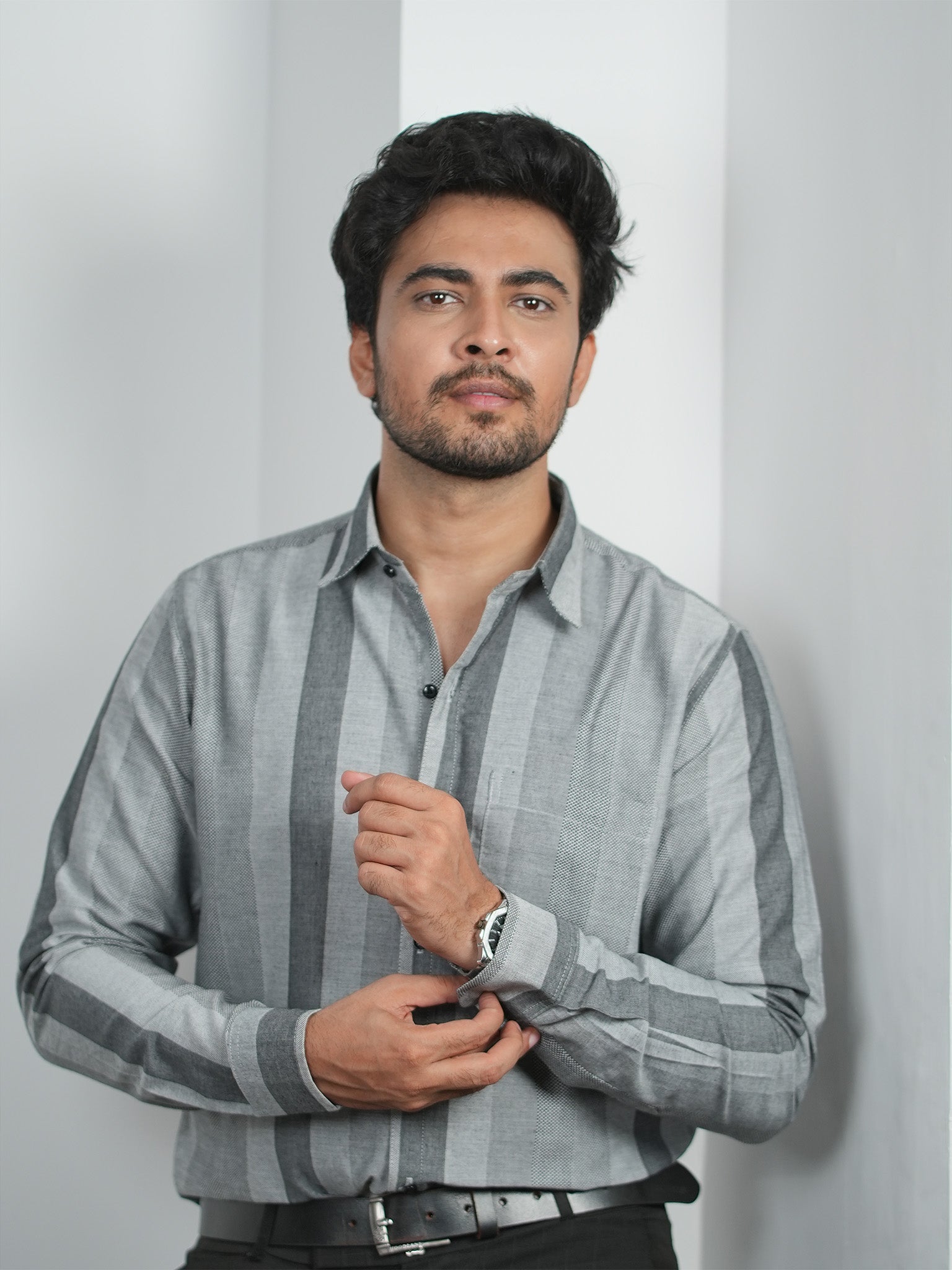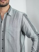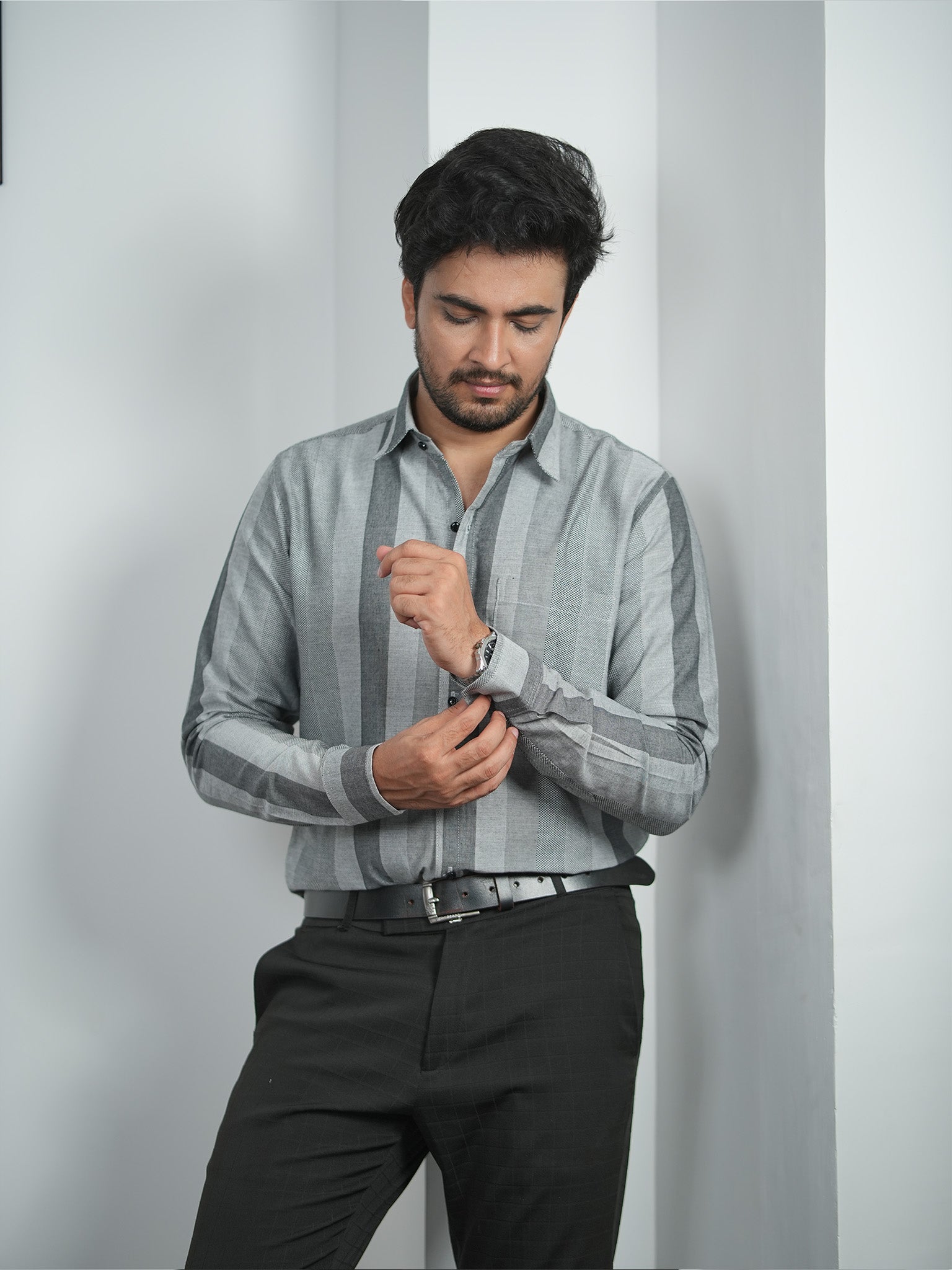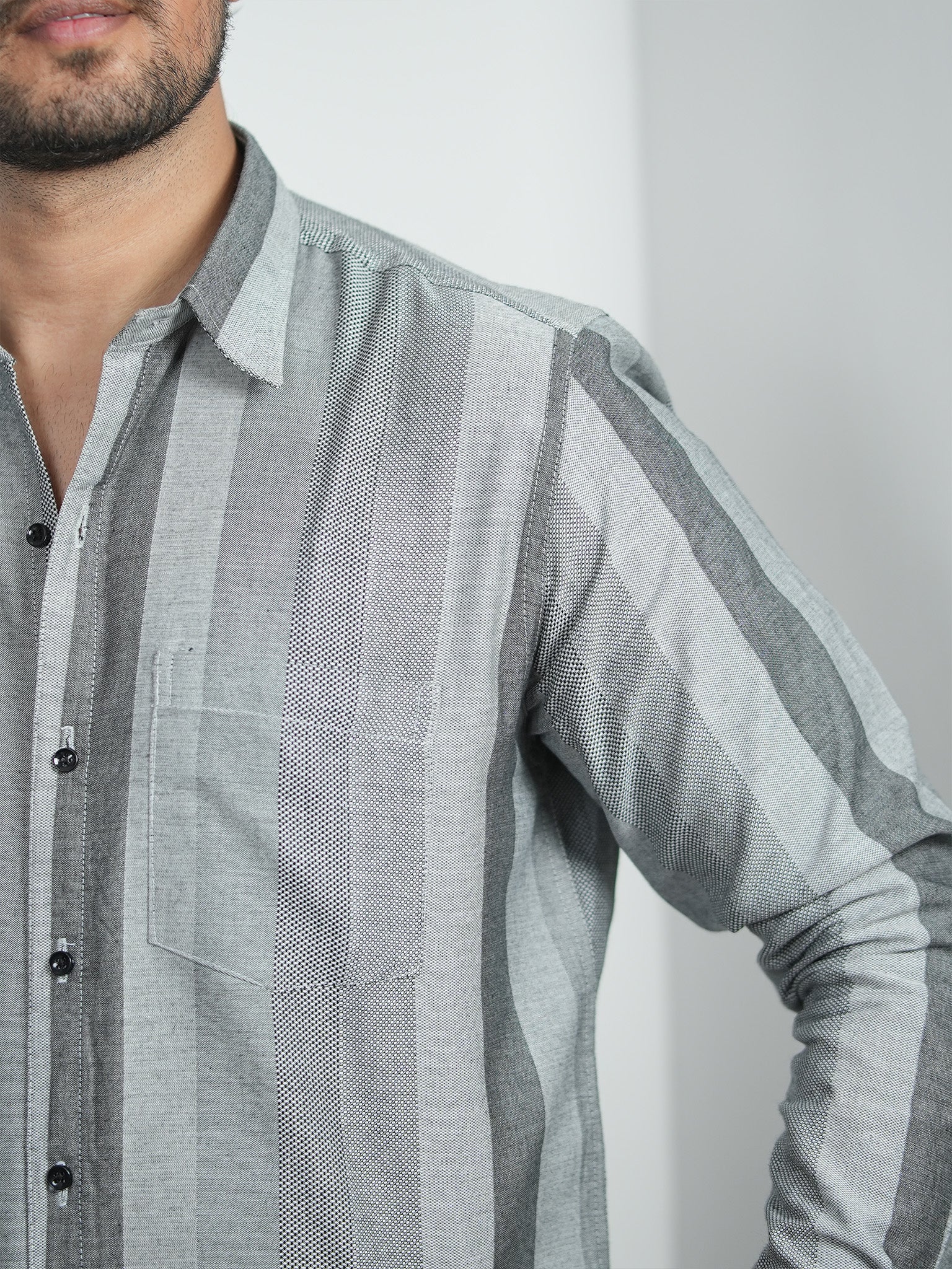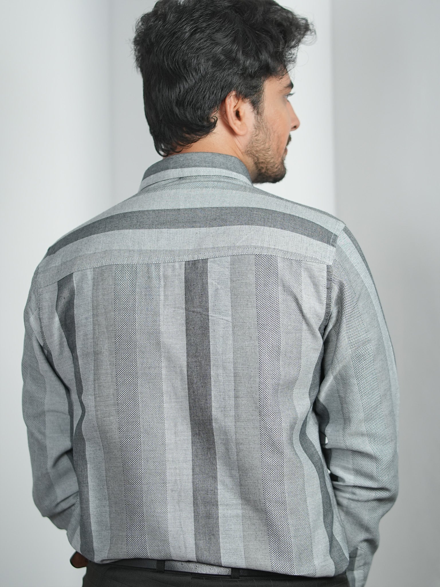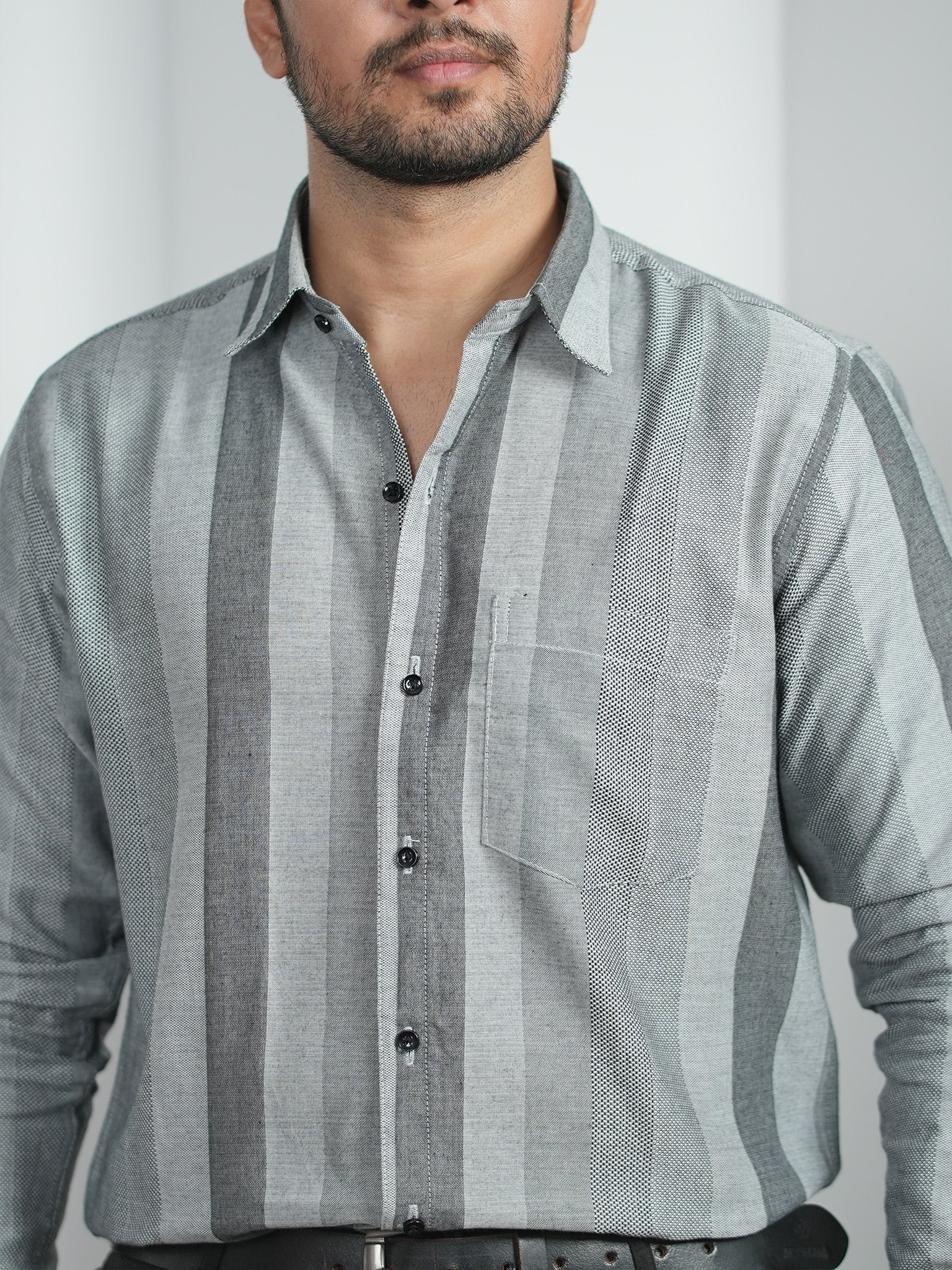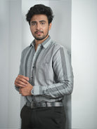 Men's Light Grey And Dark Grey Stripes Pattern Cotton Shirt