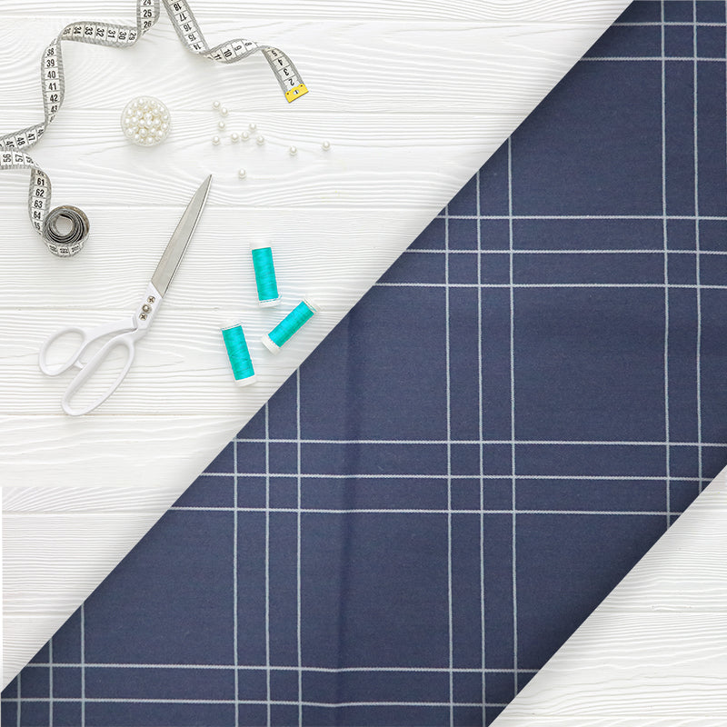 Dark Blue Checks Pattern Yarn Dyed Cotton Fabric
