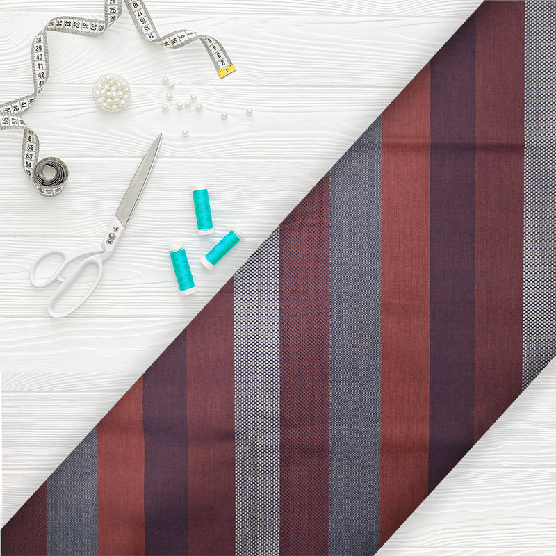 Red And Beige Stripes Pattern Yarn Dyed Cotton Fabric
