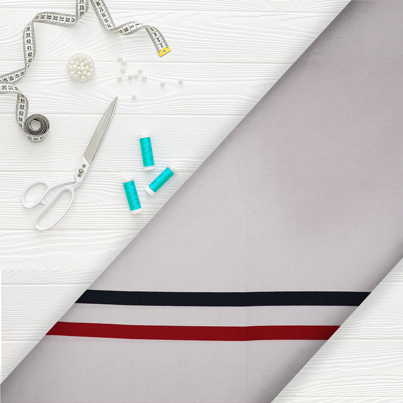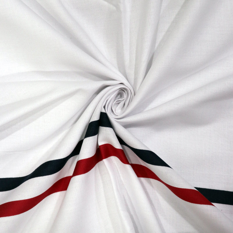 White And Red Stripe Pattern Yarn Dyed Cotton Fabric