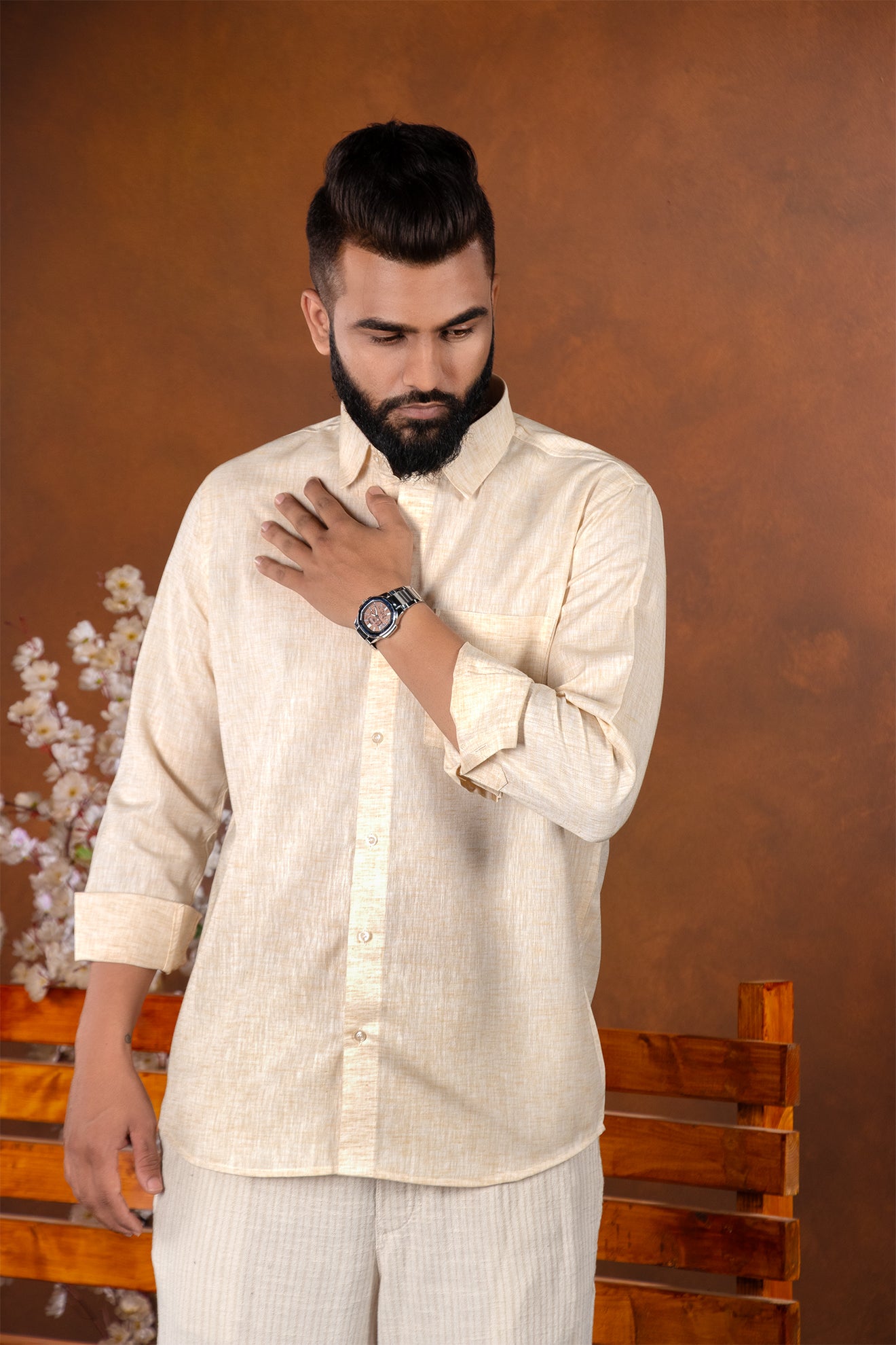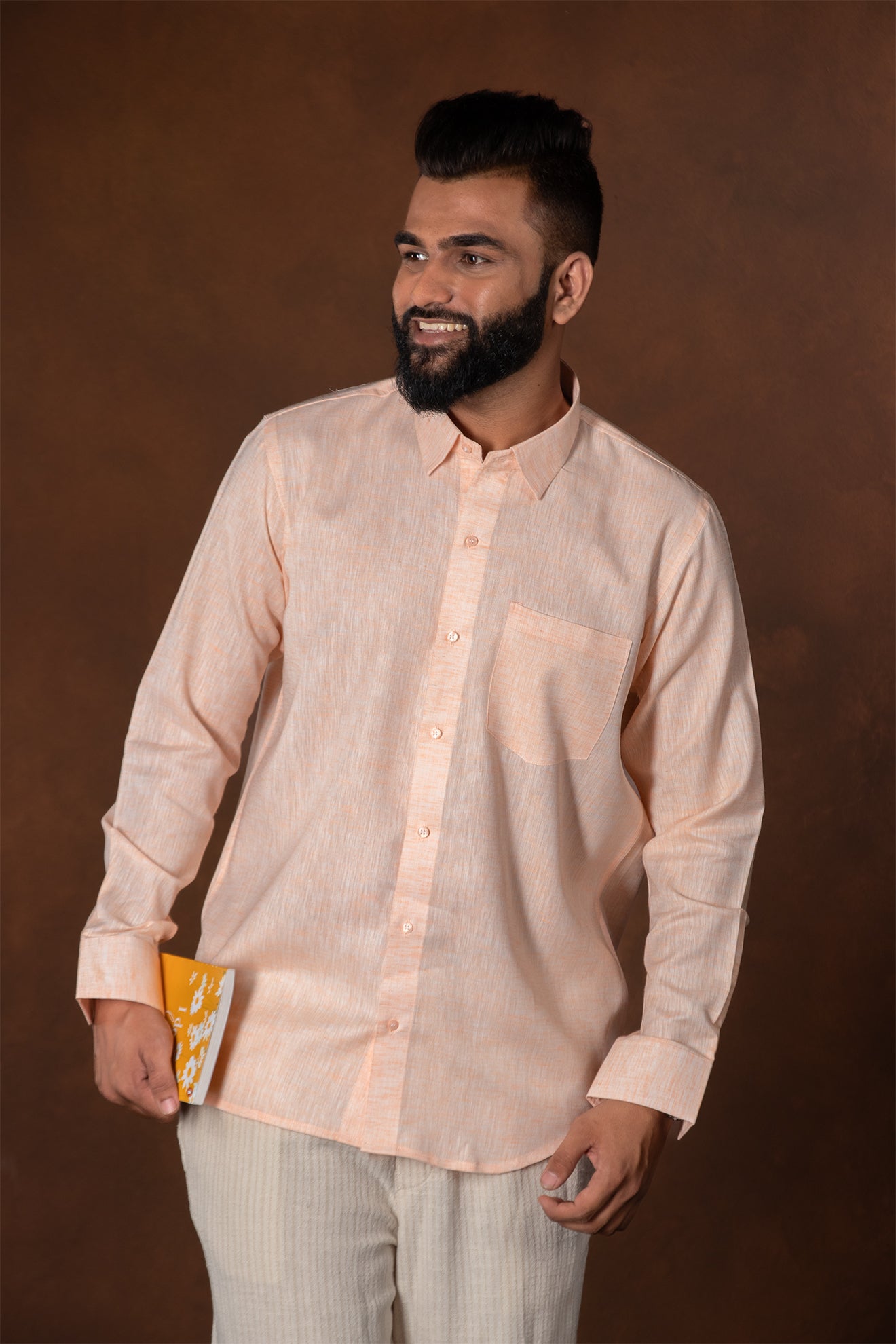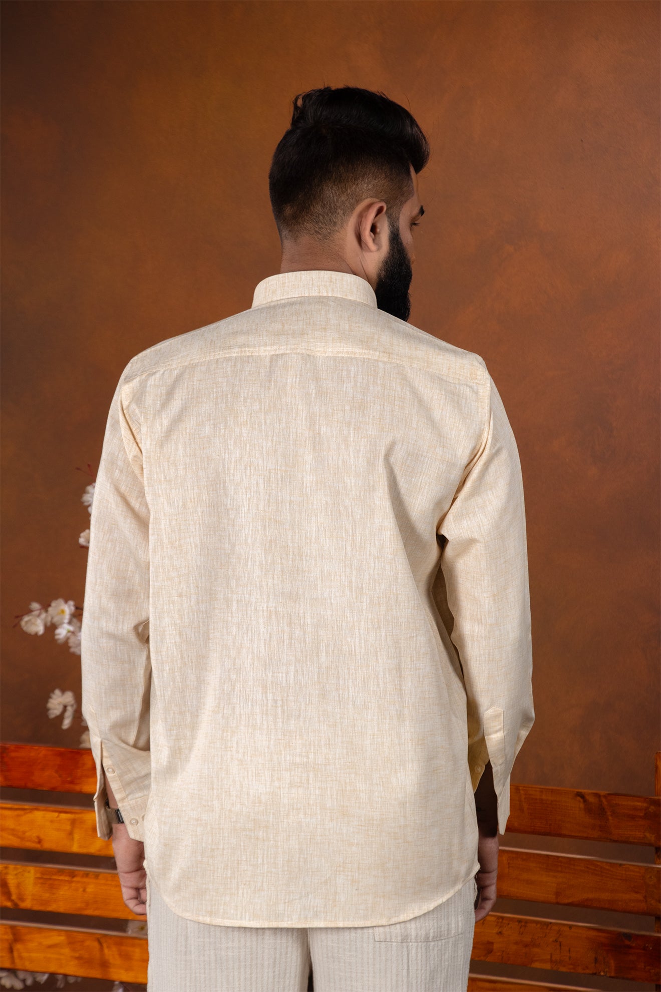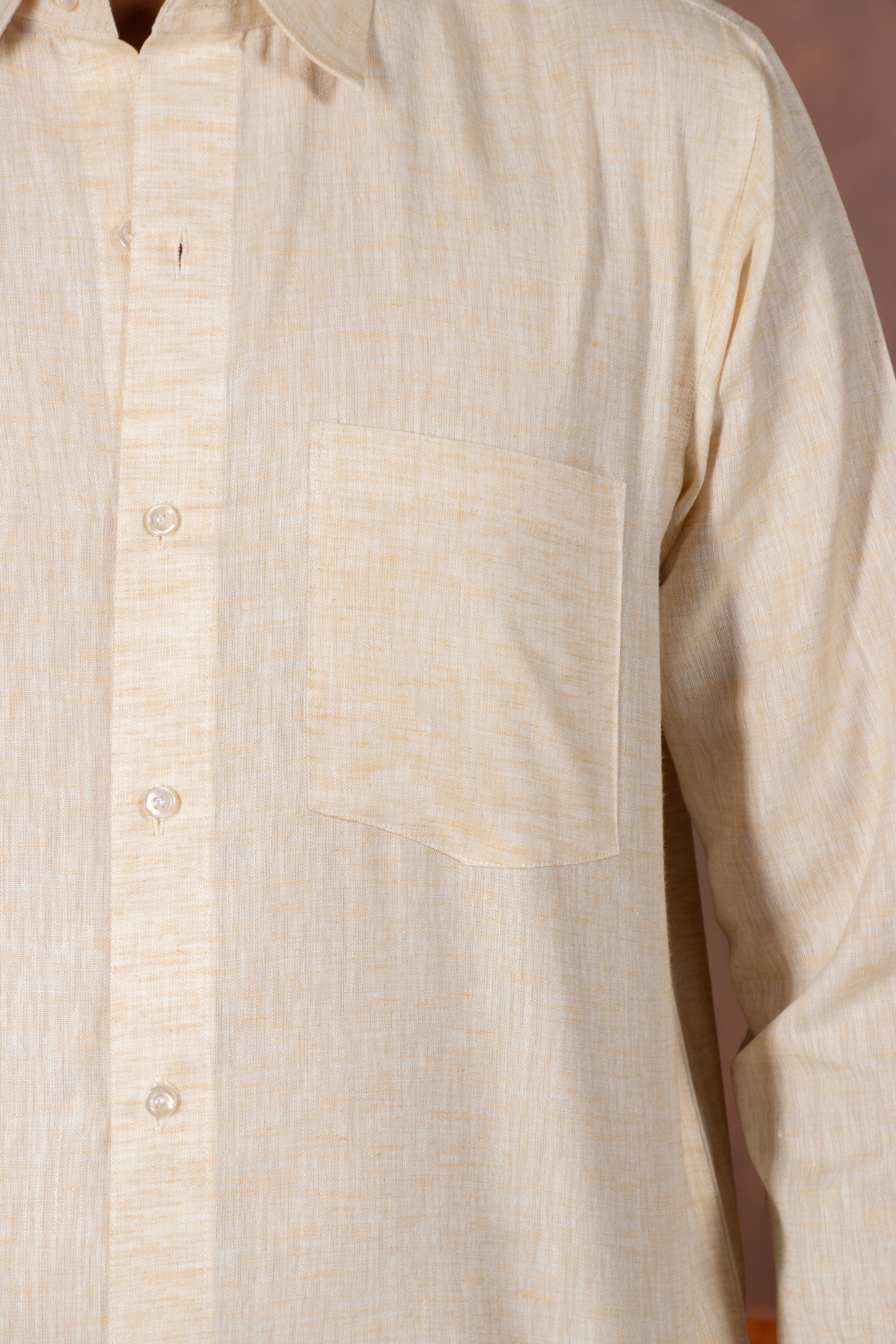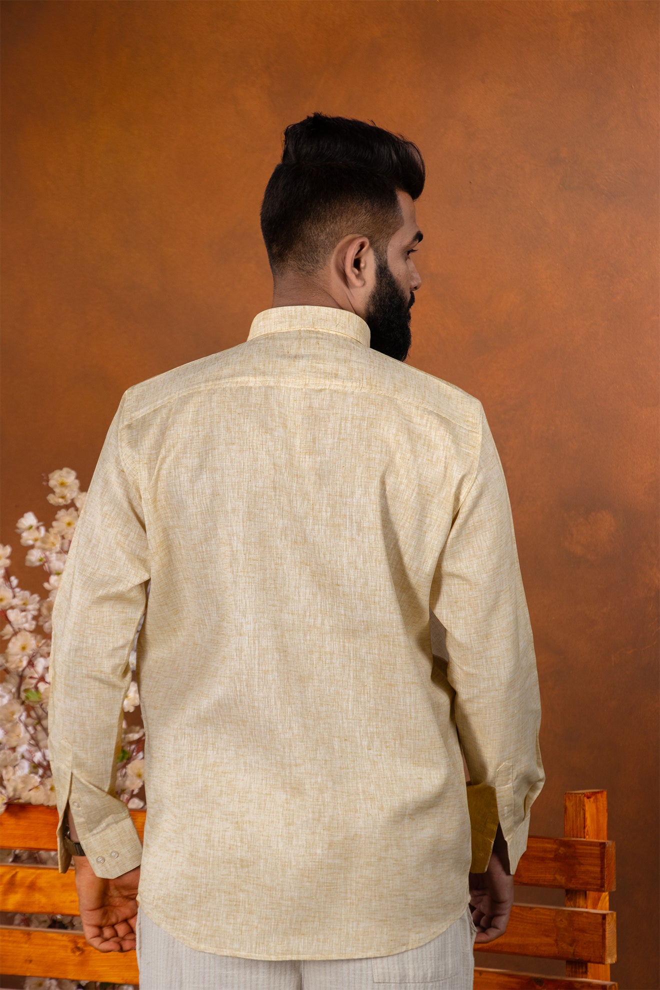Men's Dark Yellow Dyed Cotton Linen Shirt