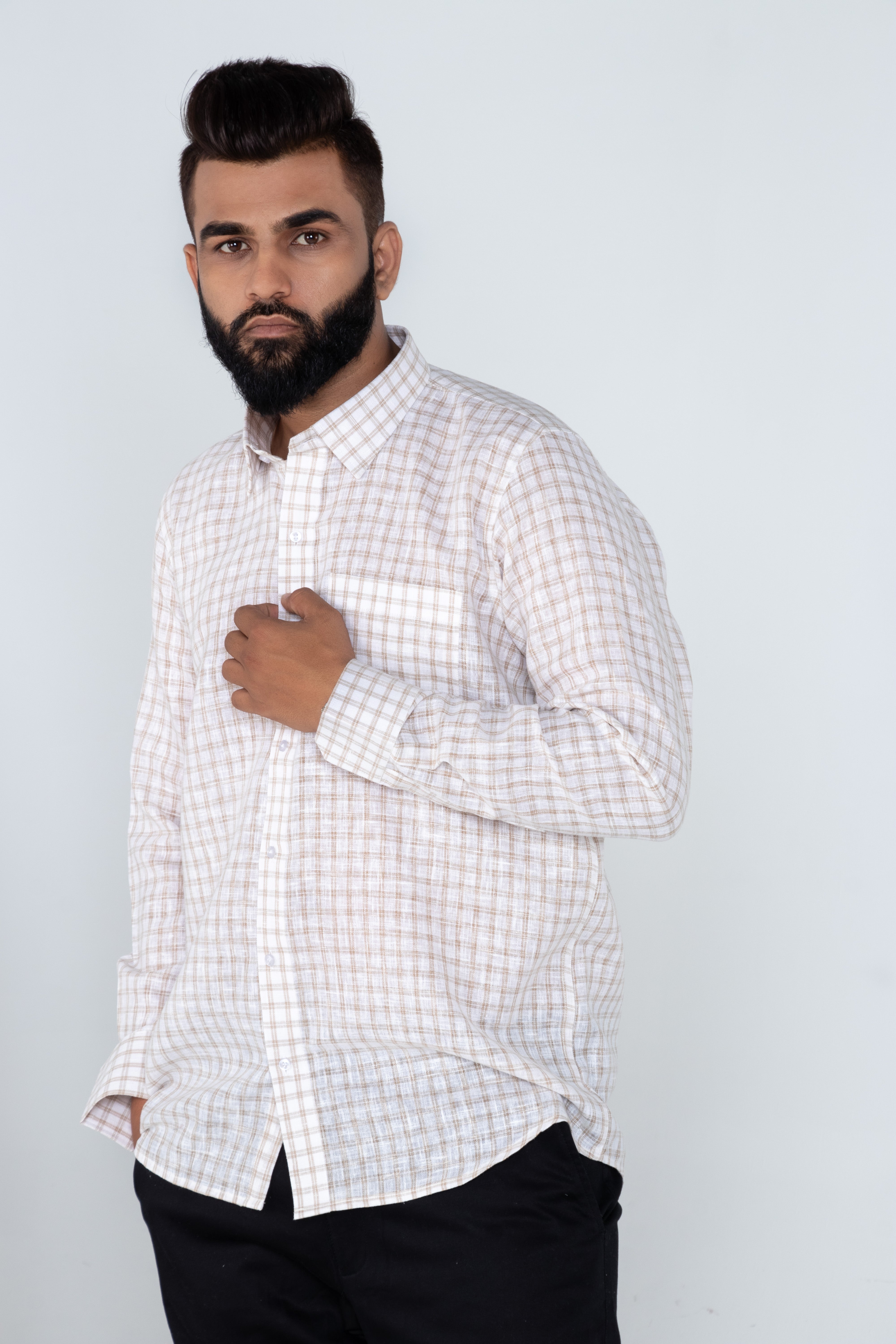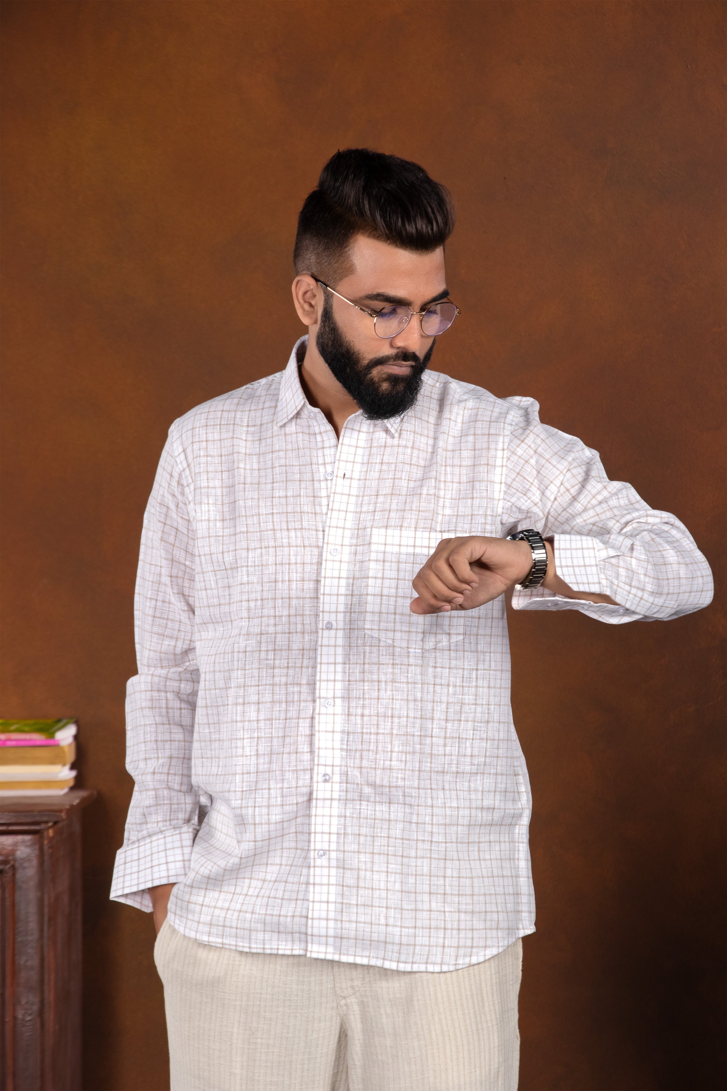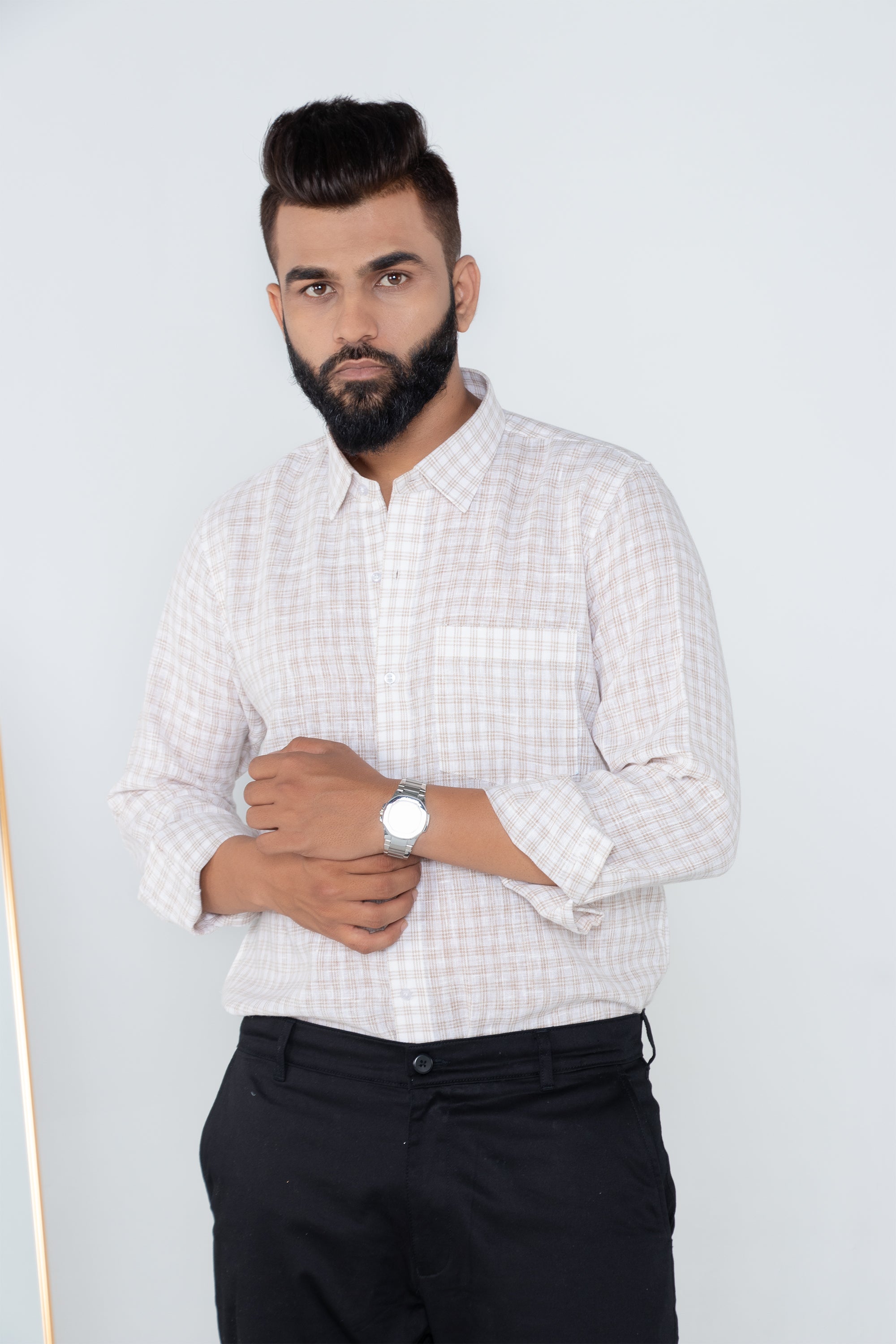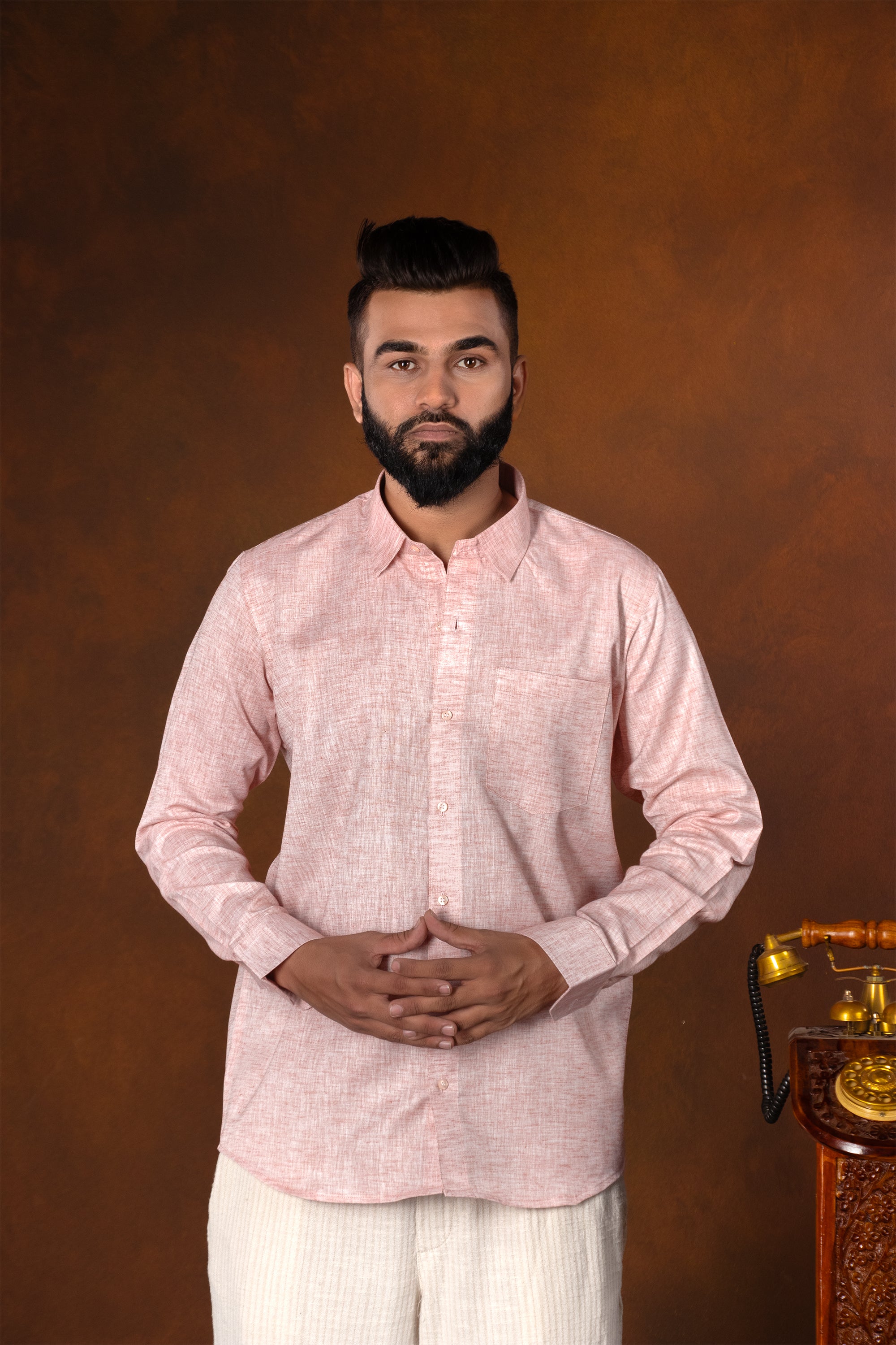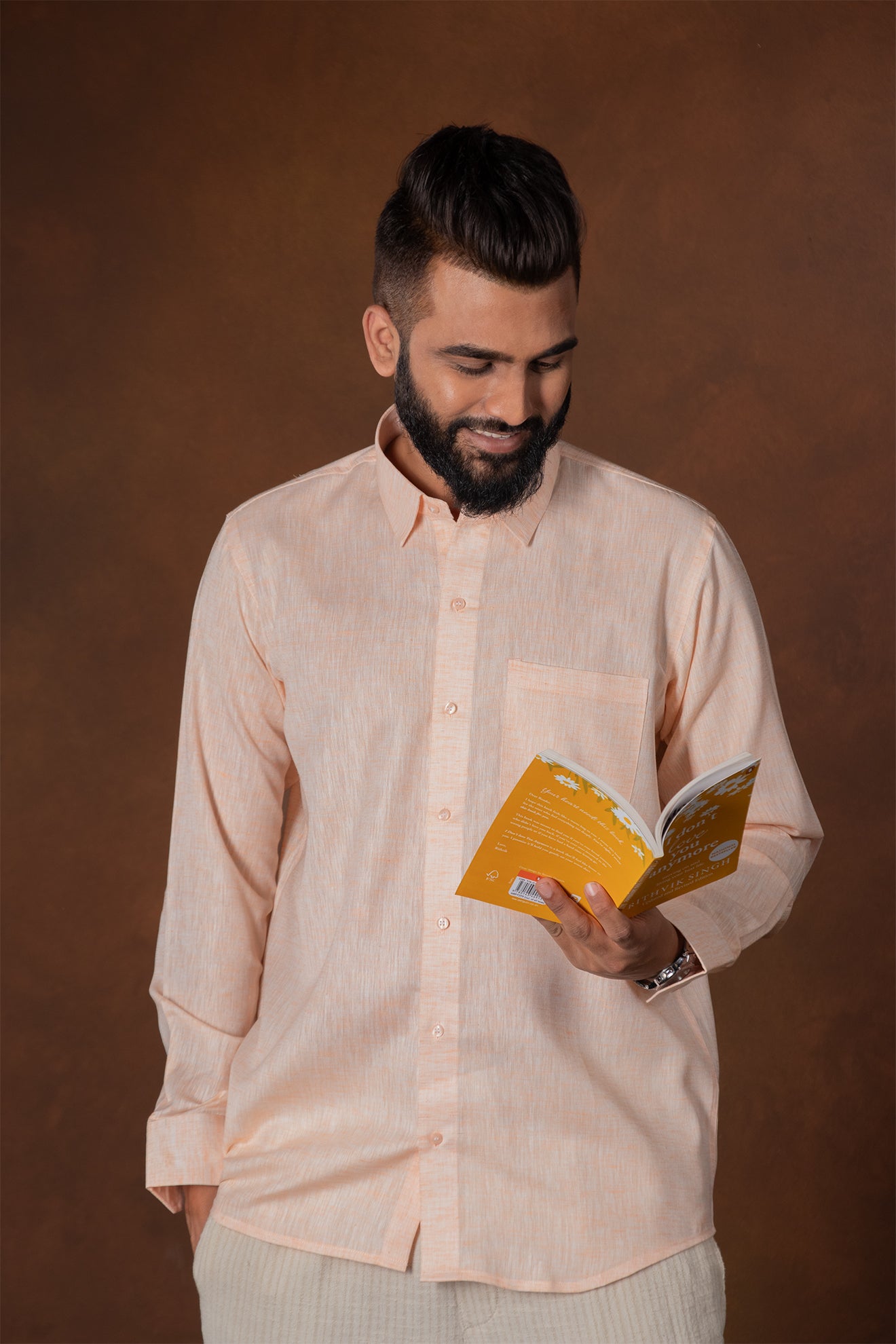 Men's Dark Yellow Dyed Cotton Linen Shirt
