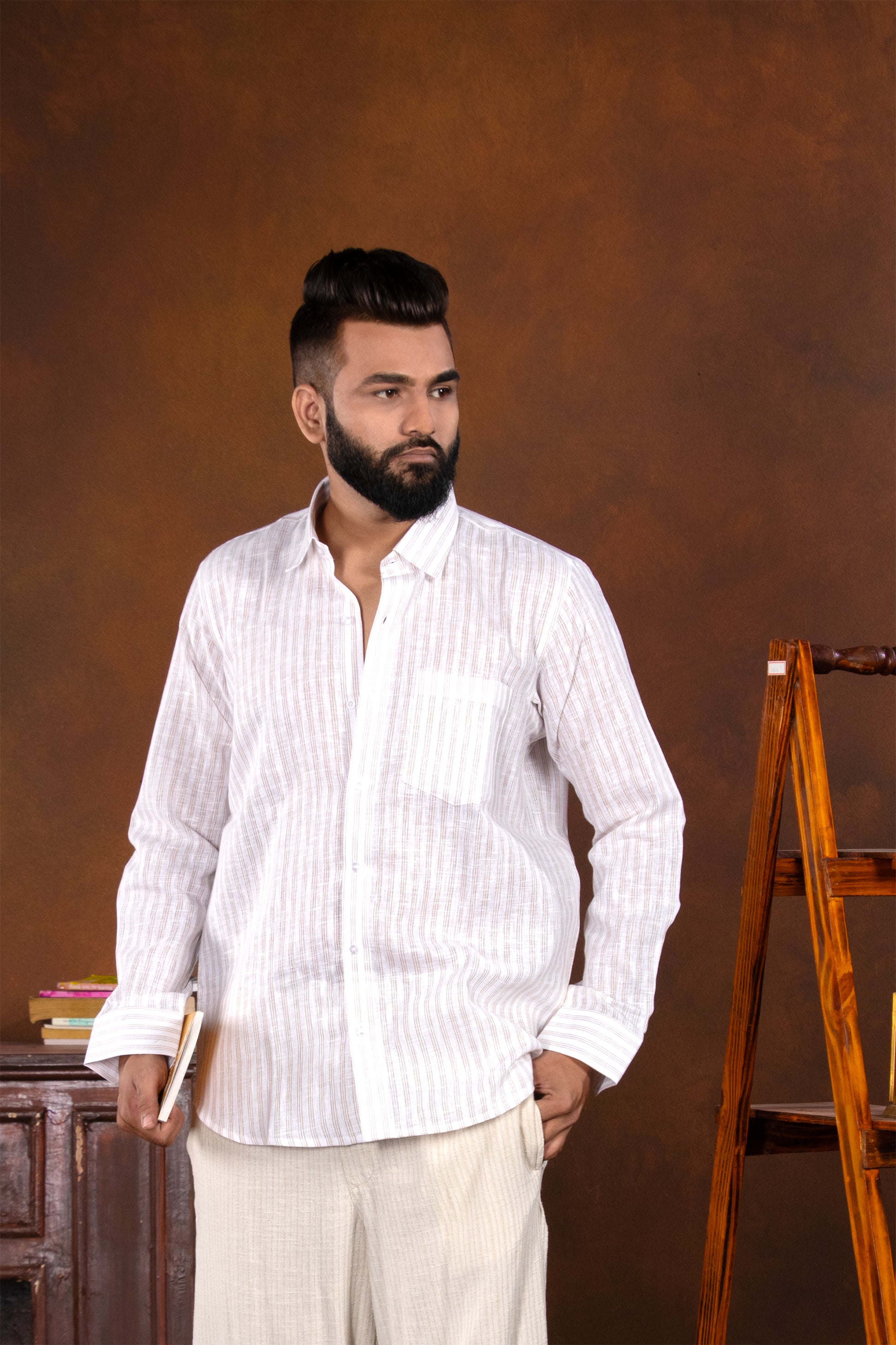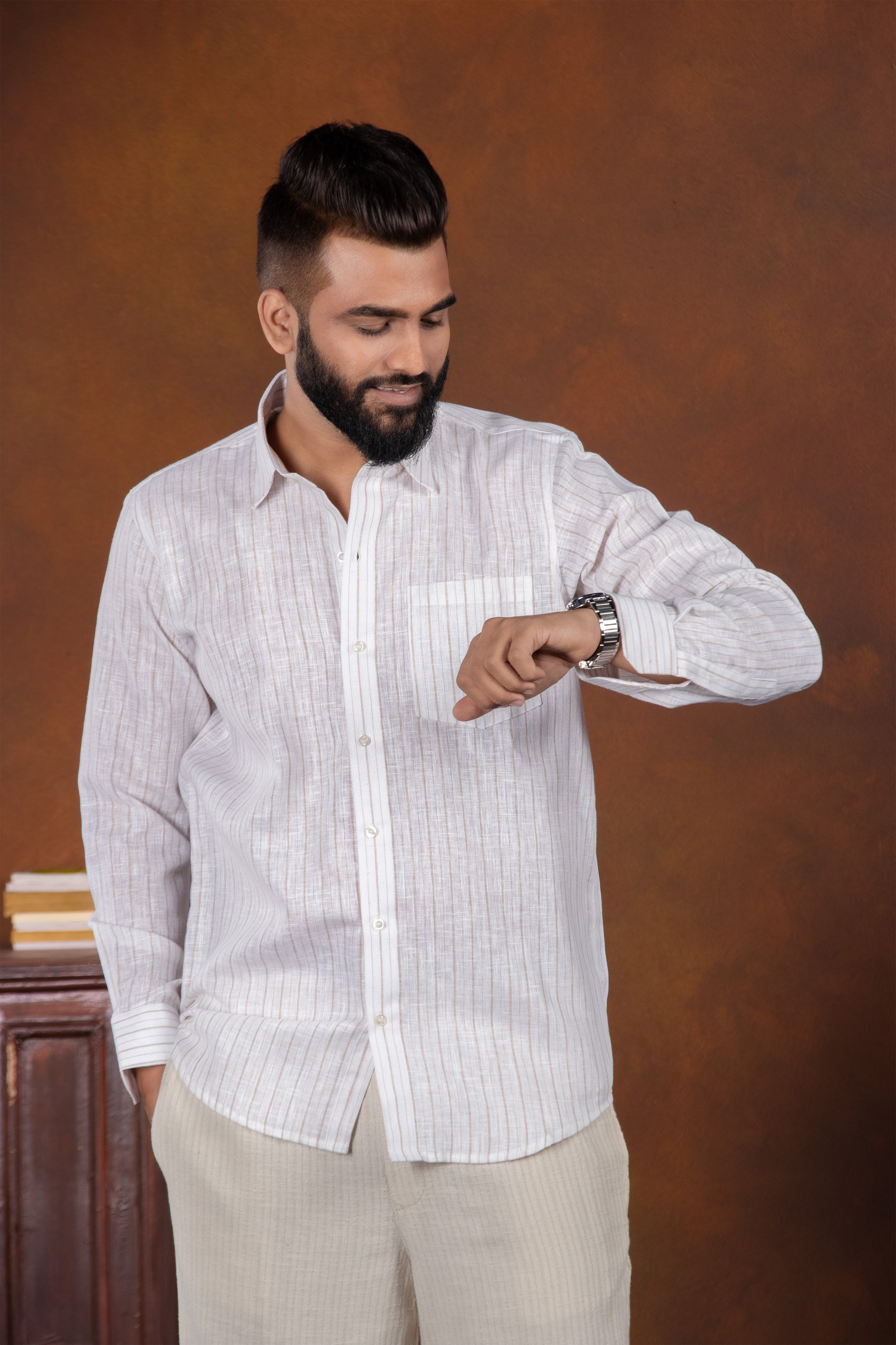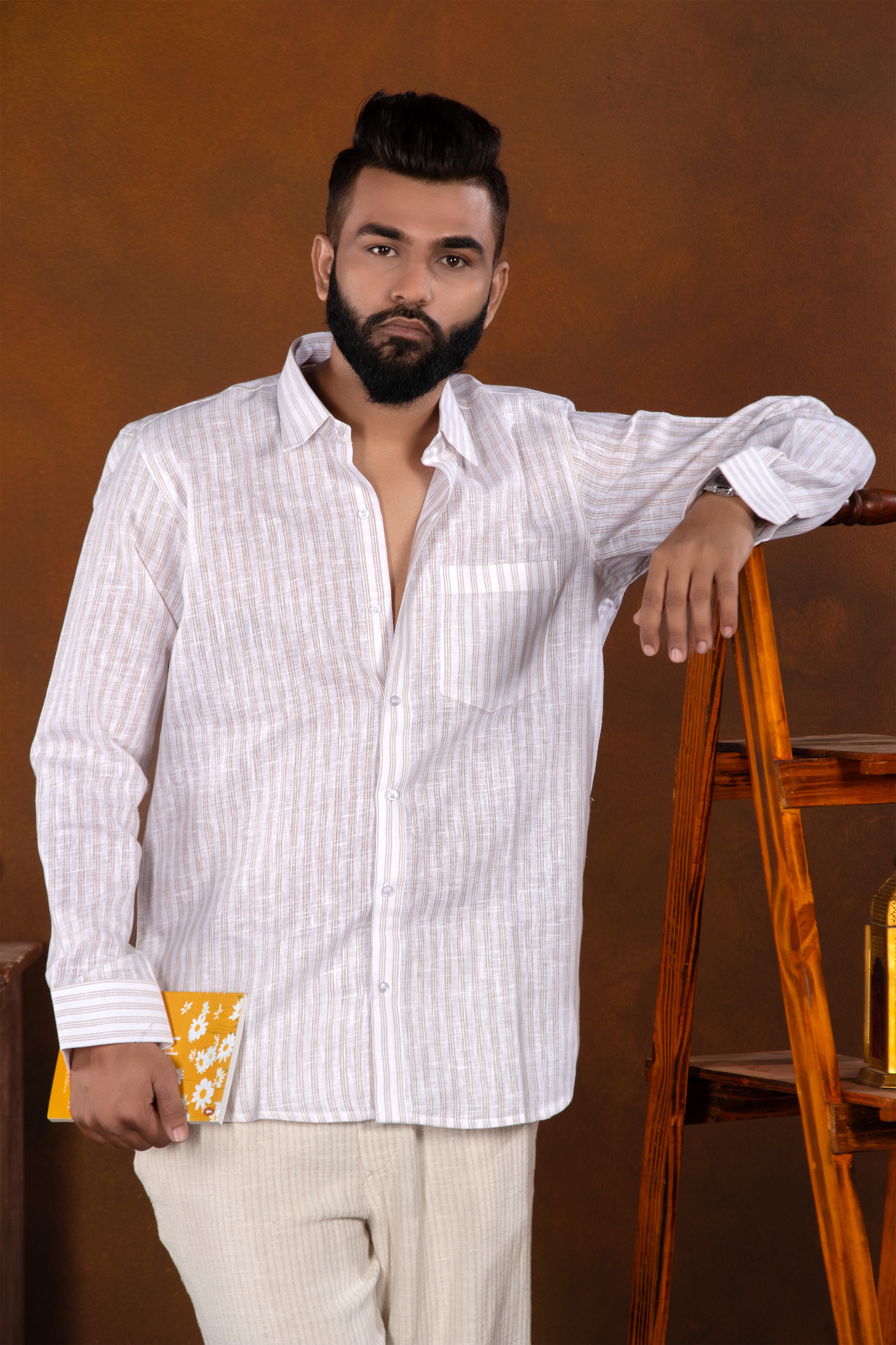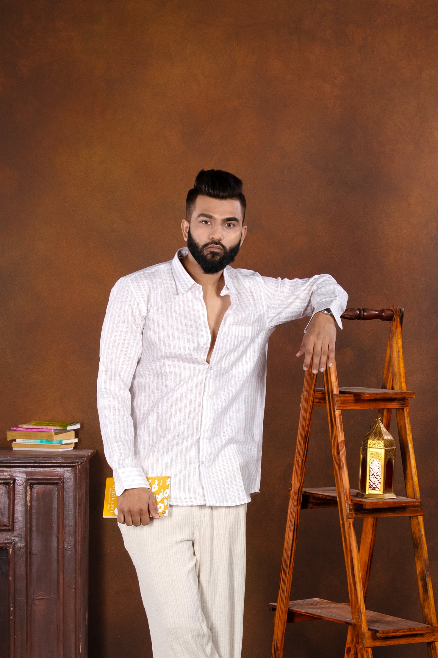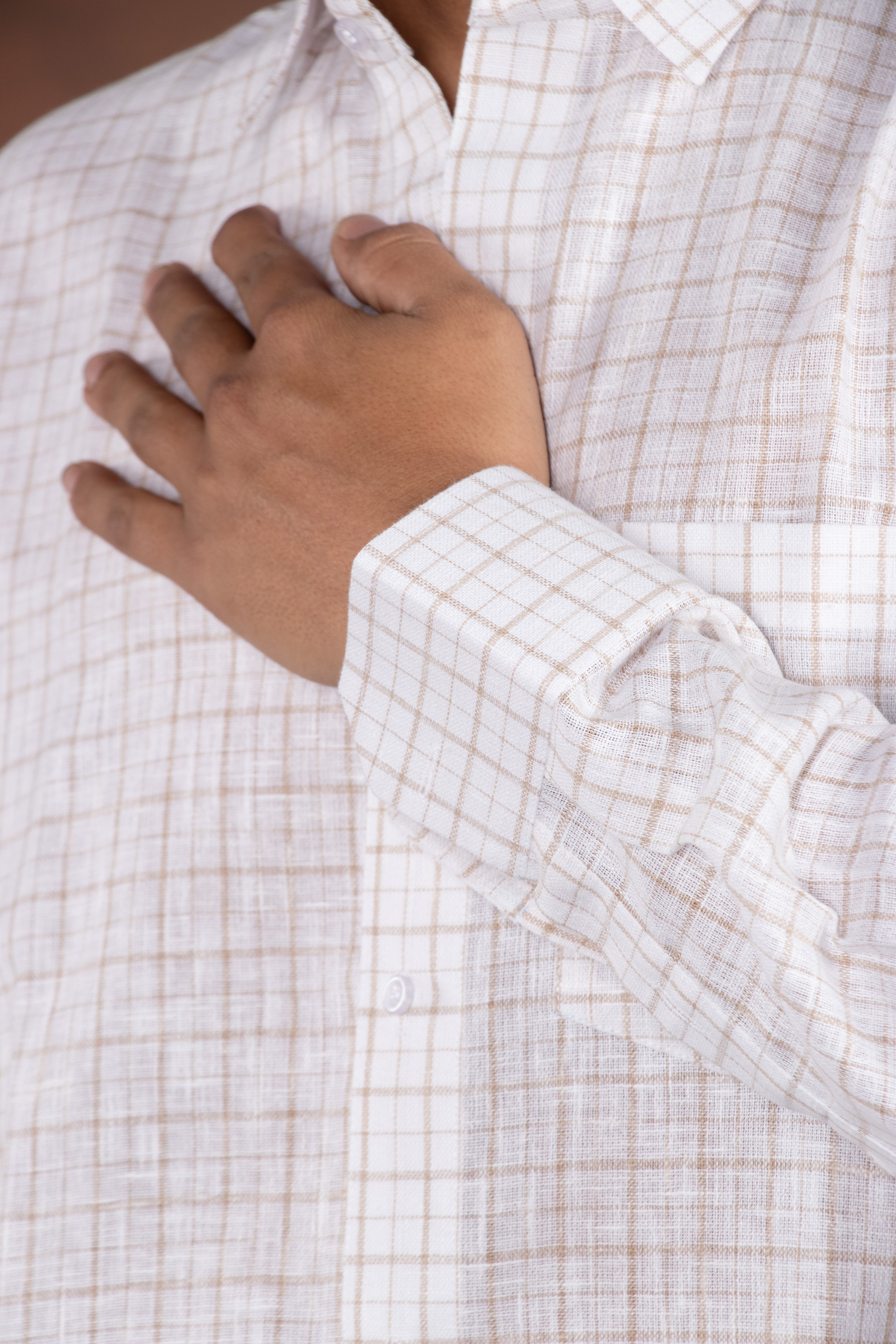 Men's Dark Yellow Dyed Cotton Linen Shirt