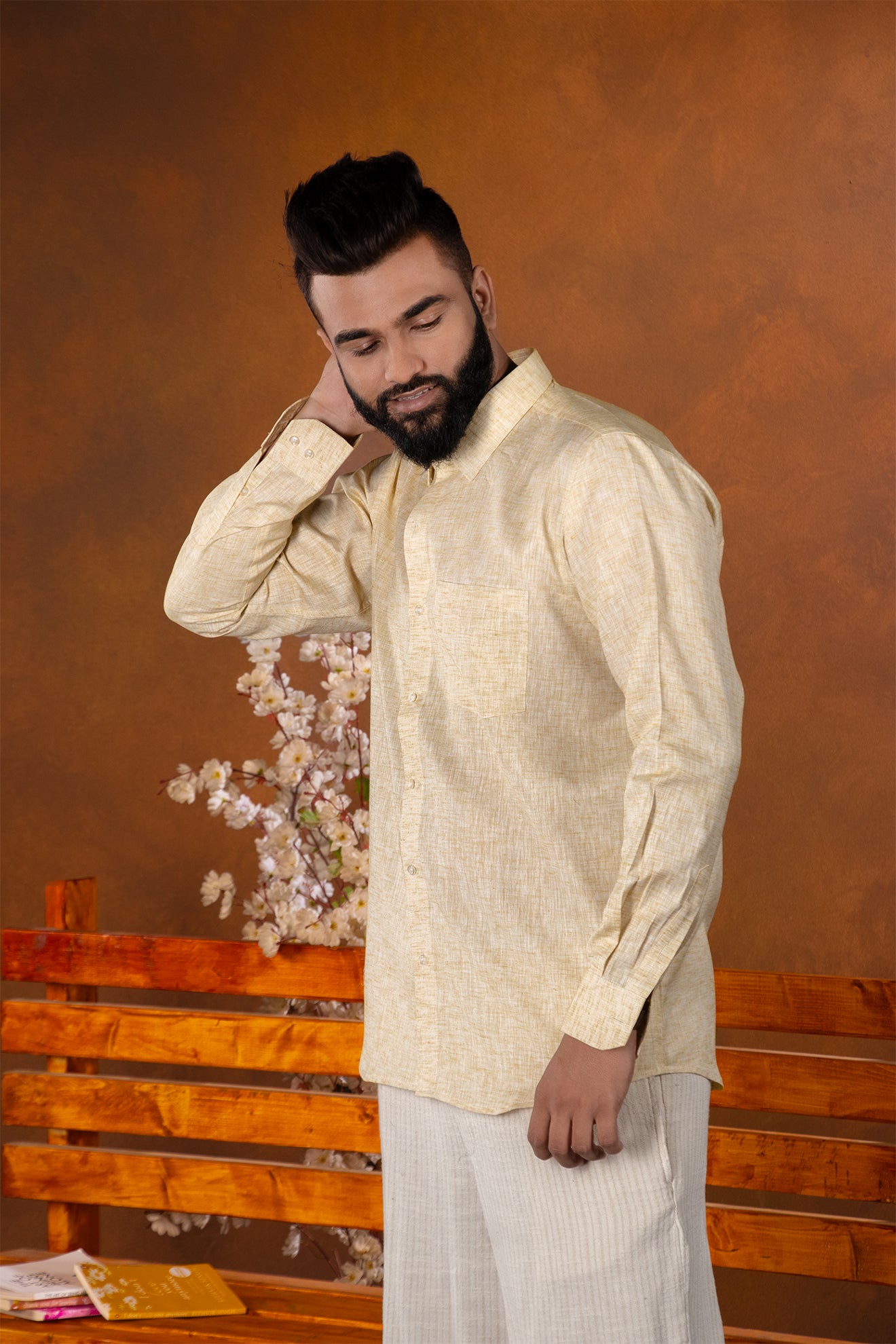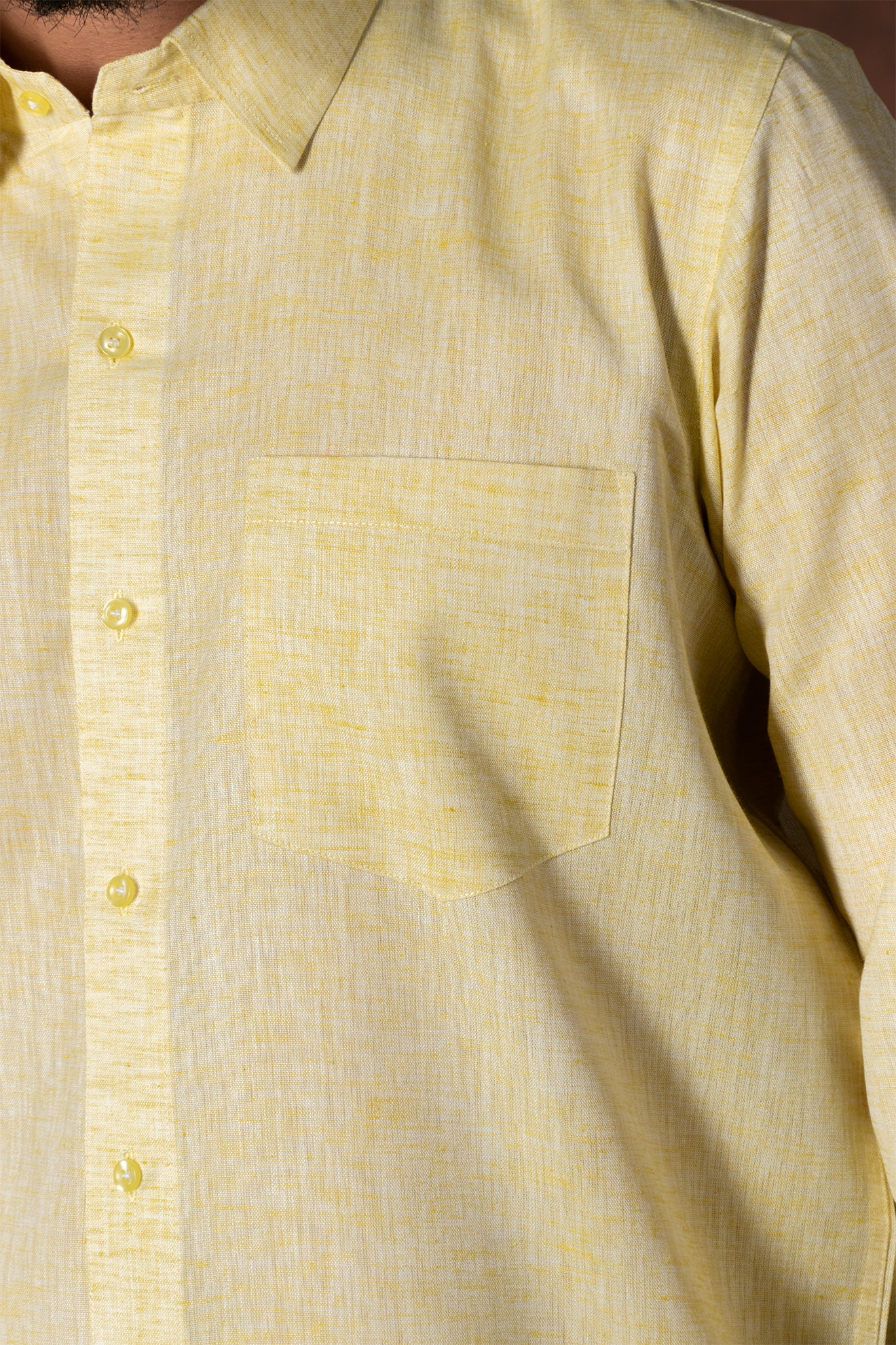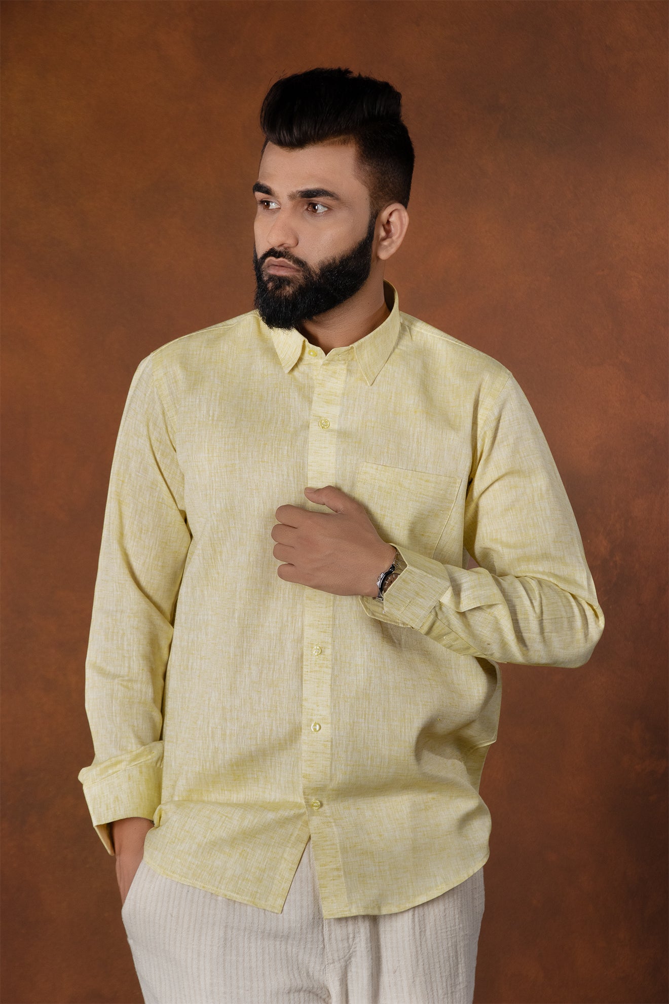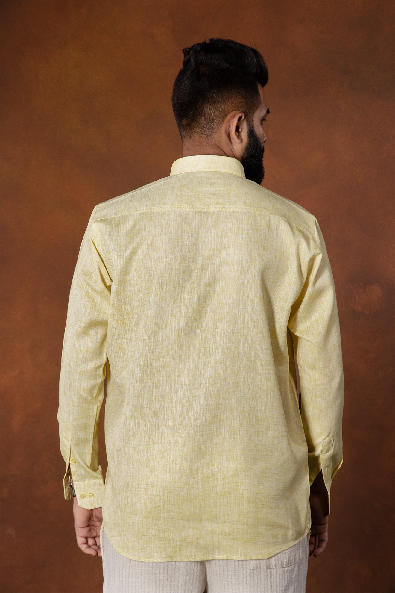 Men's Light Lemon Yellow Dyed Cotton Linen Shirt