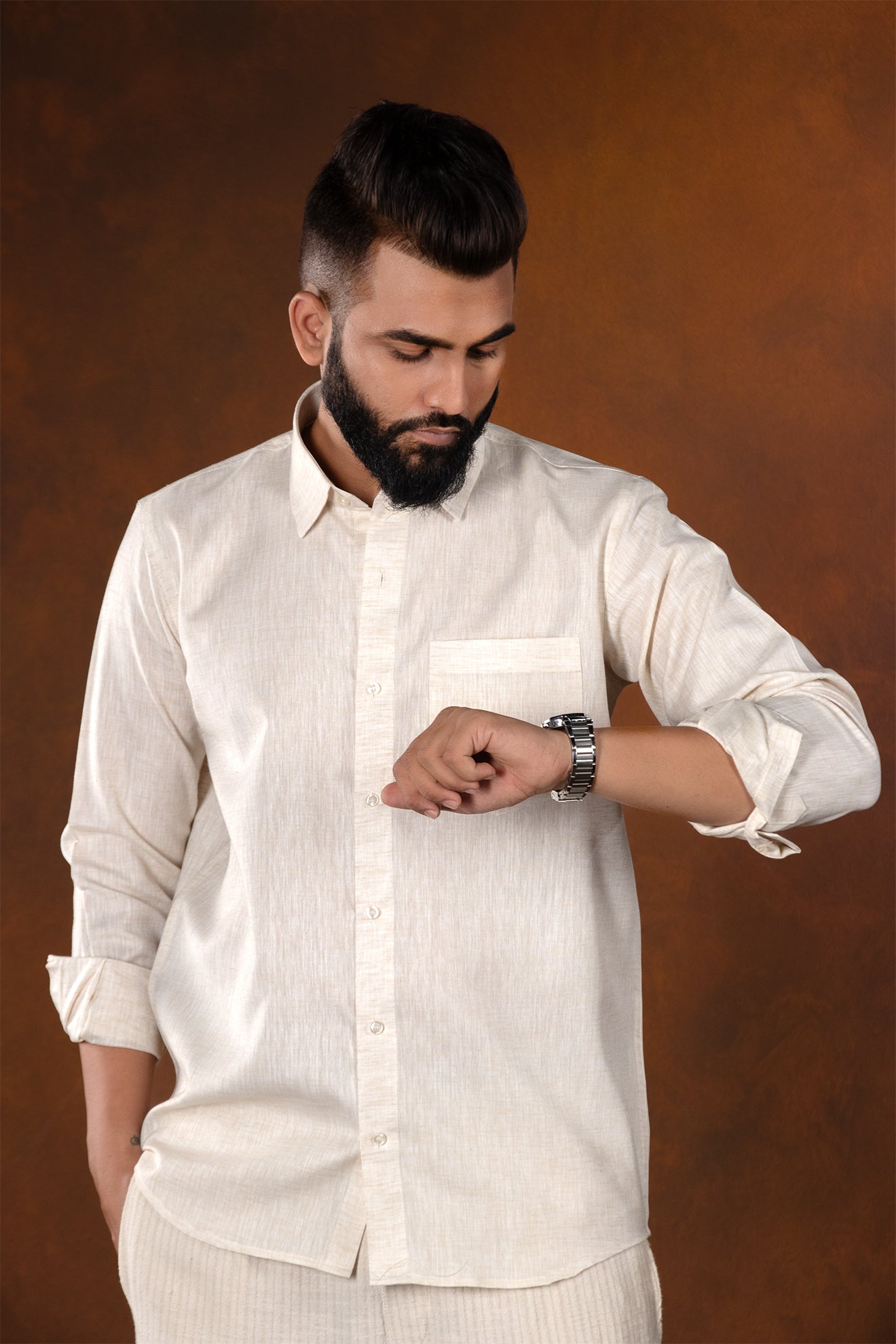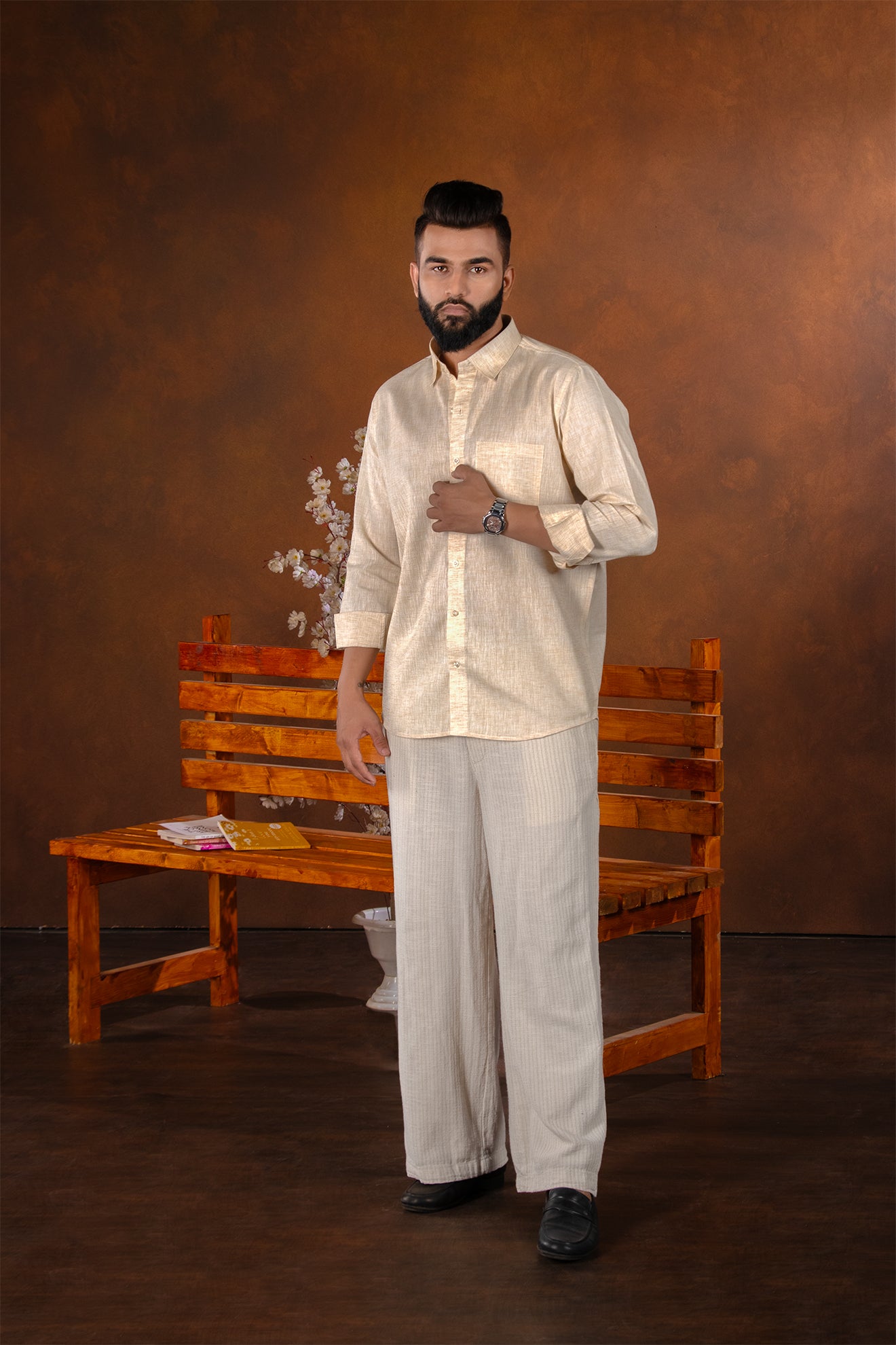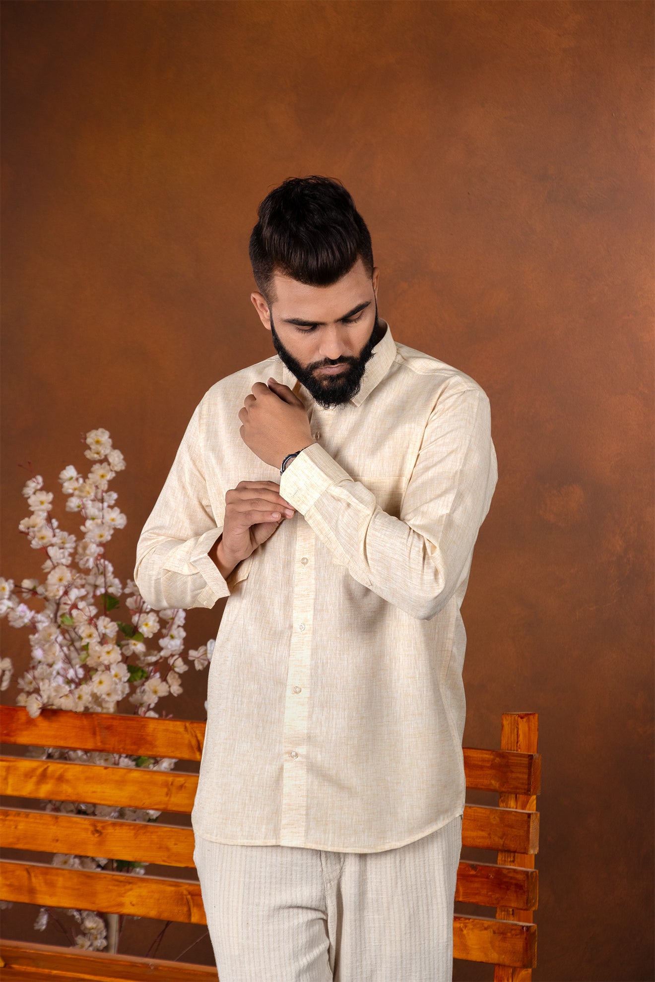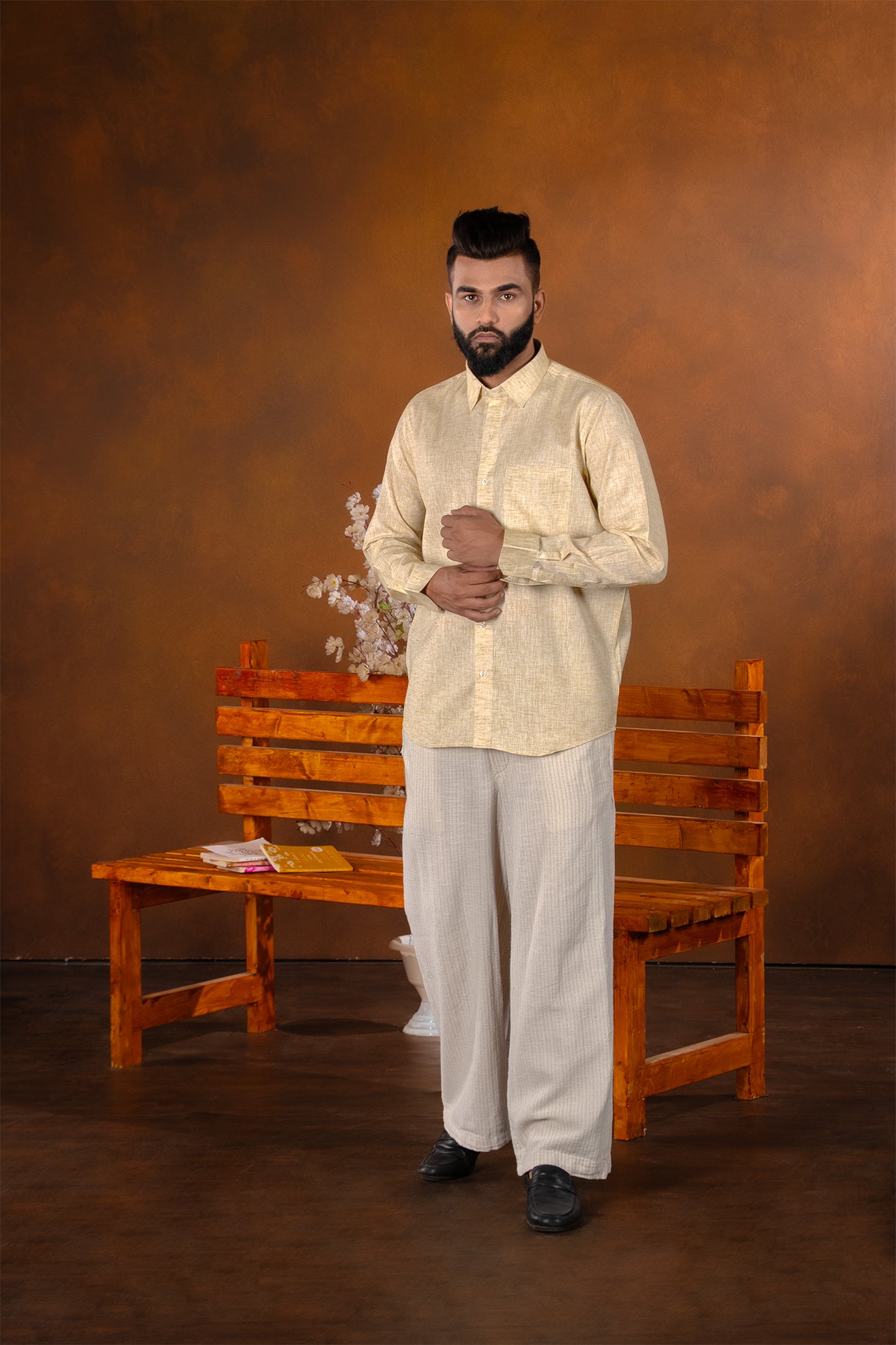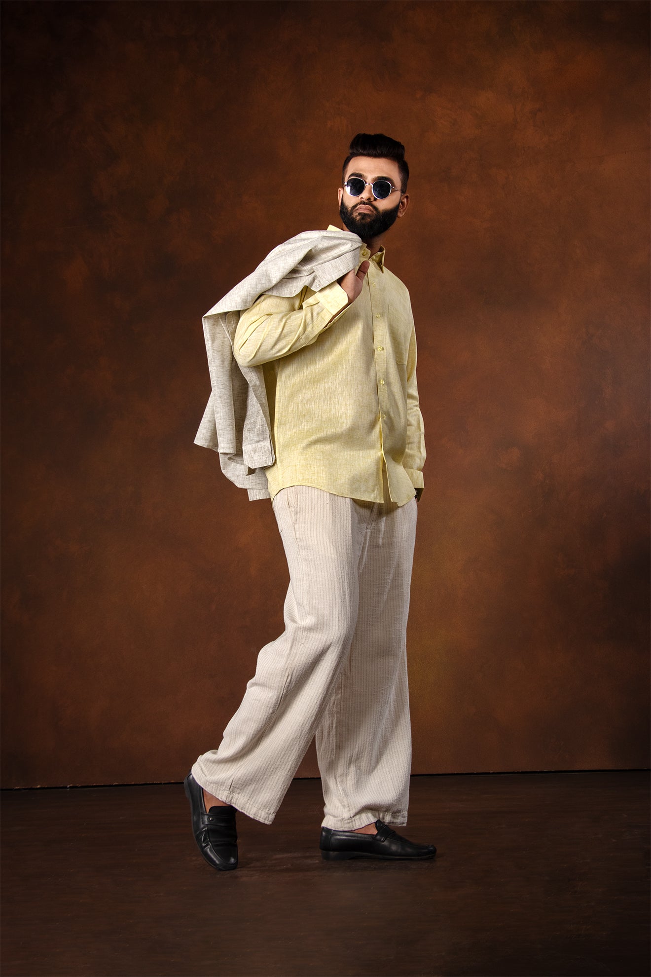 Men's Light Lemon Yellow Dyed Cotton Linen Shirt