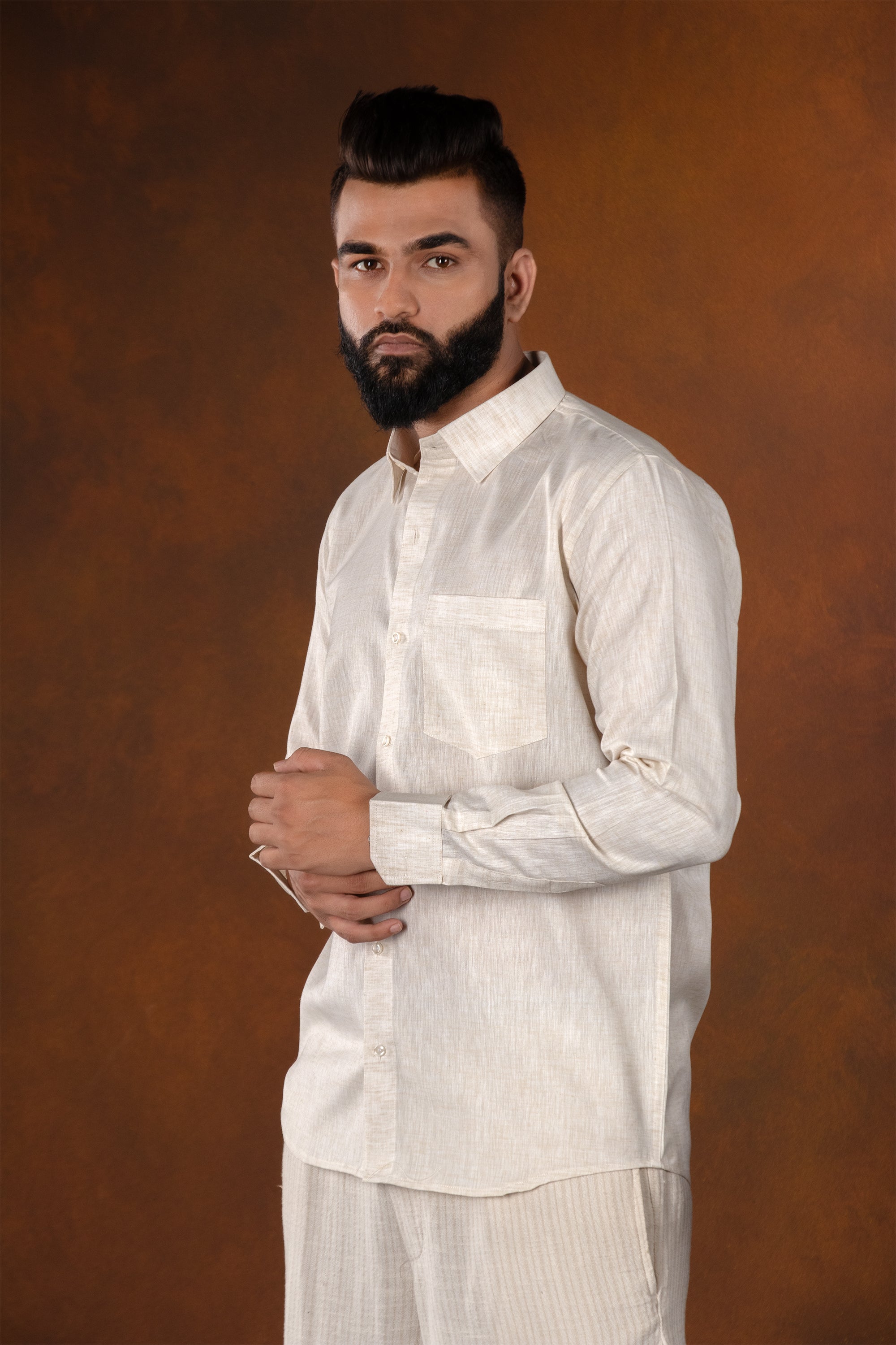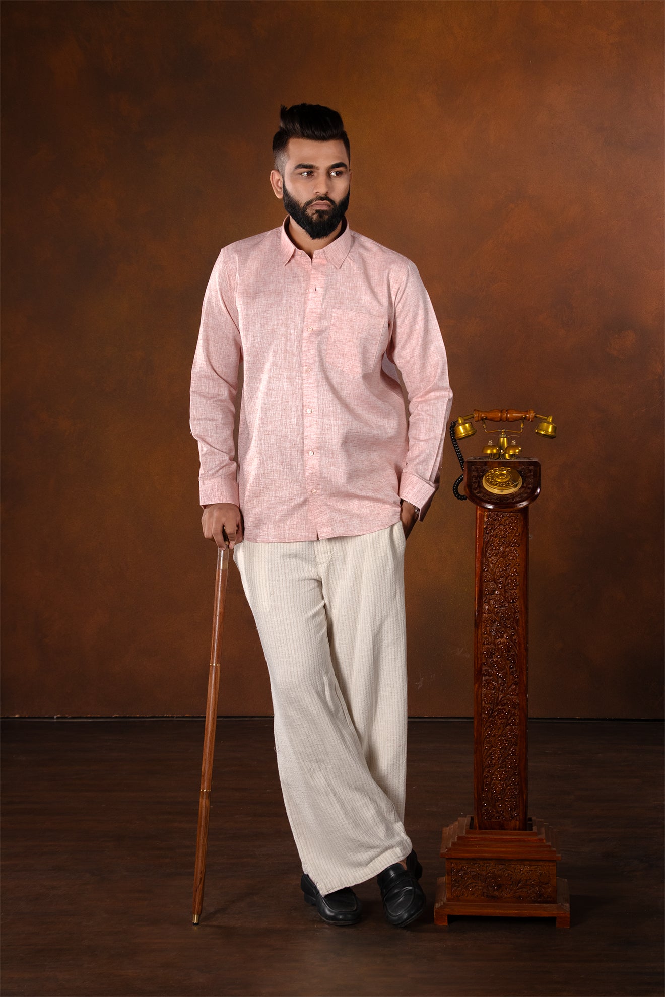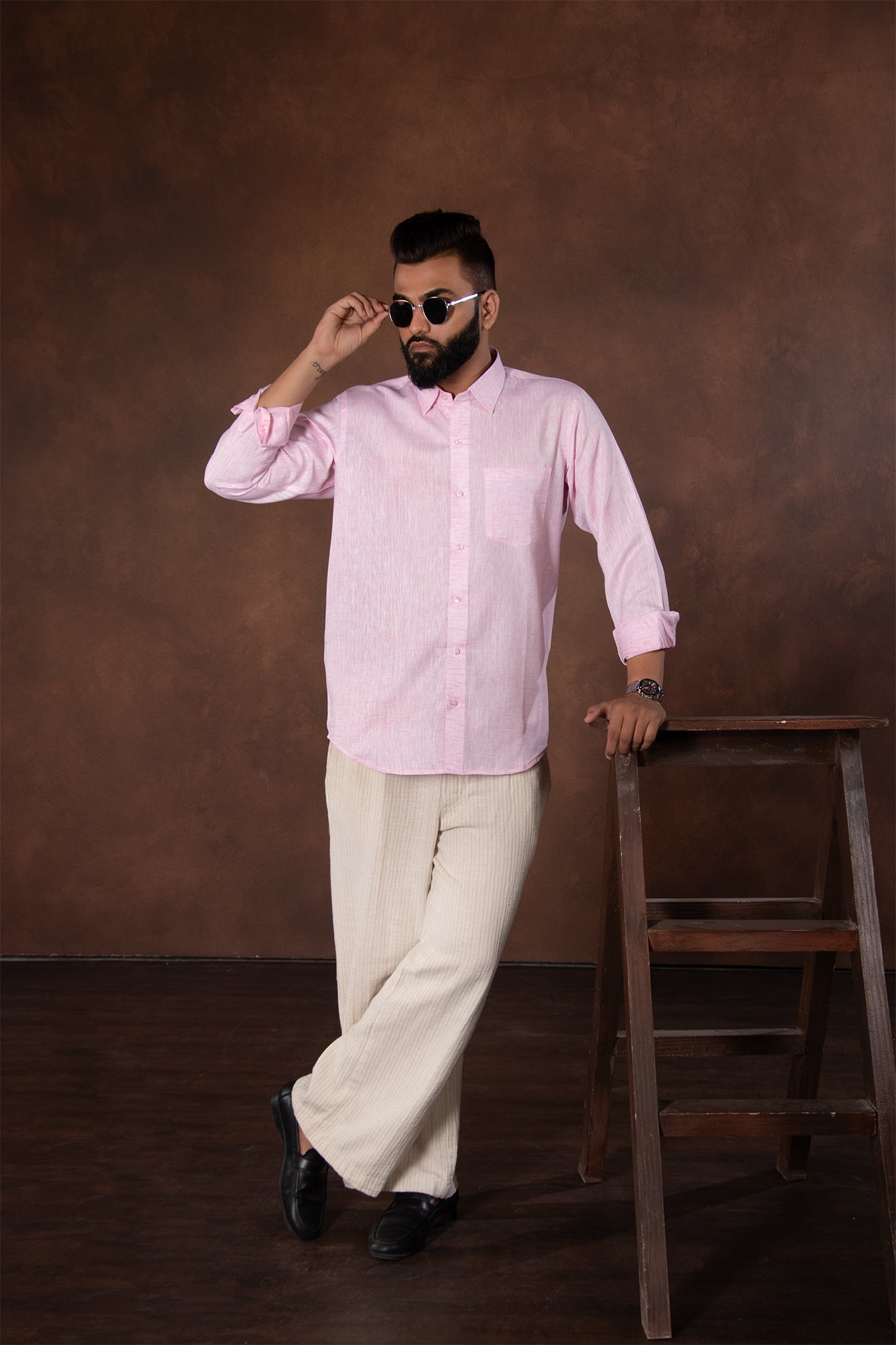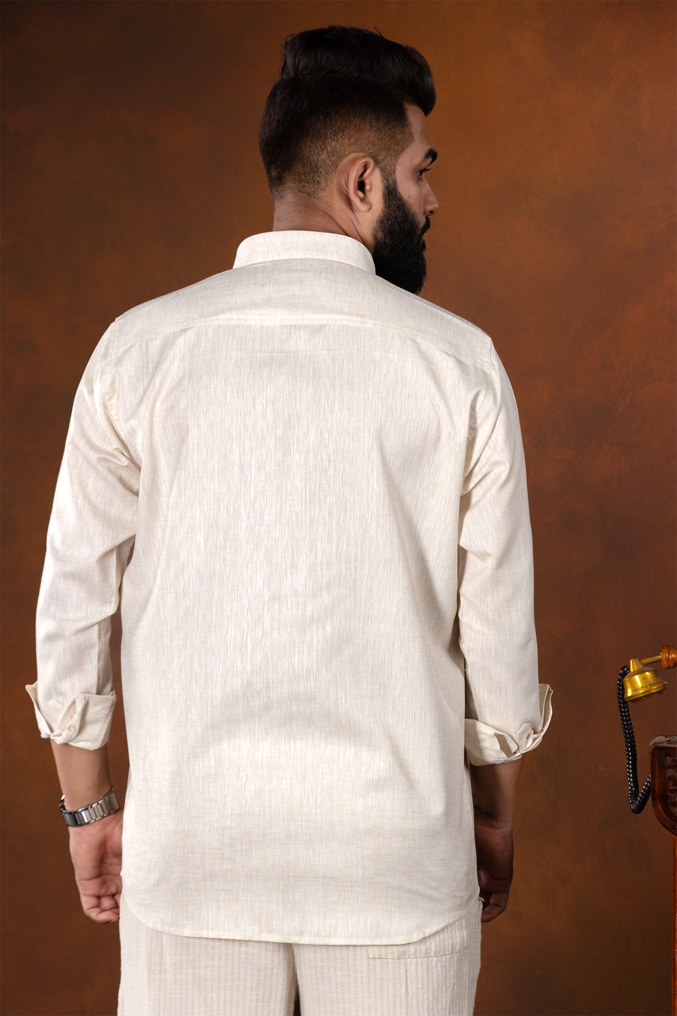 Men's Light Lemon Yellow Dyed Cotton Linen Shirt