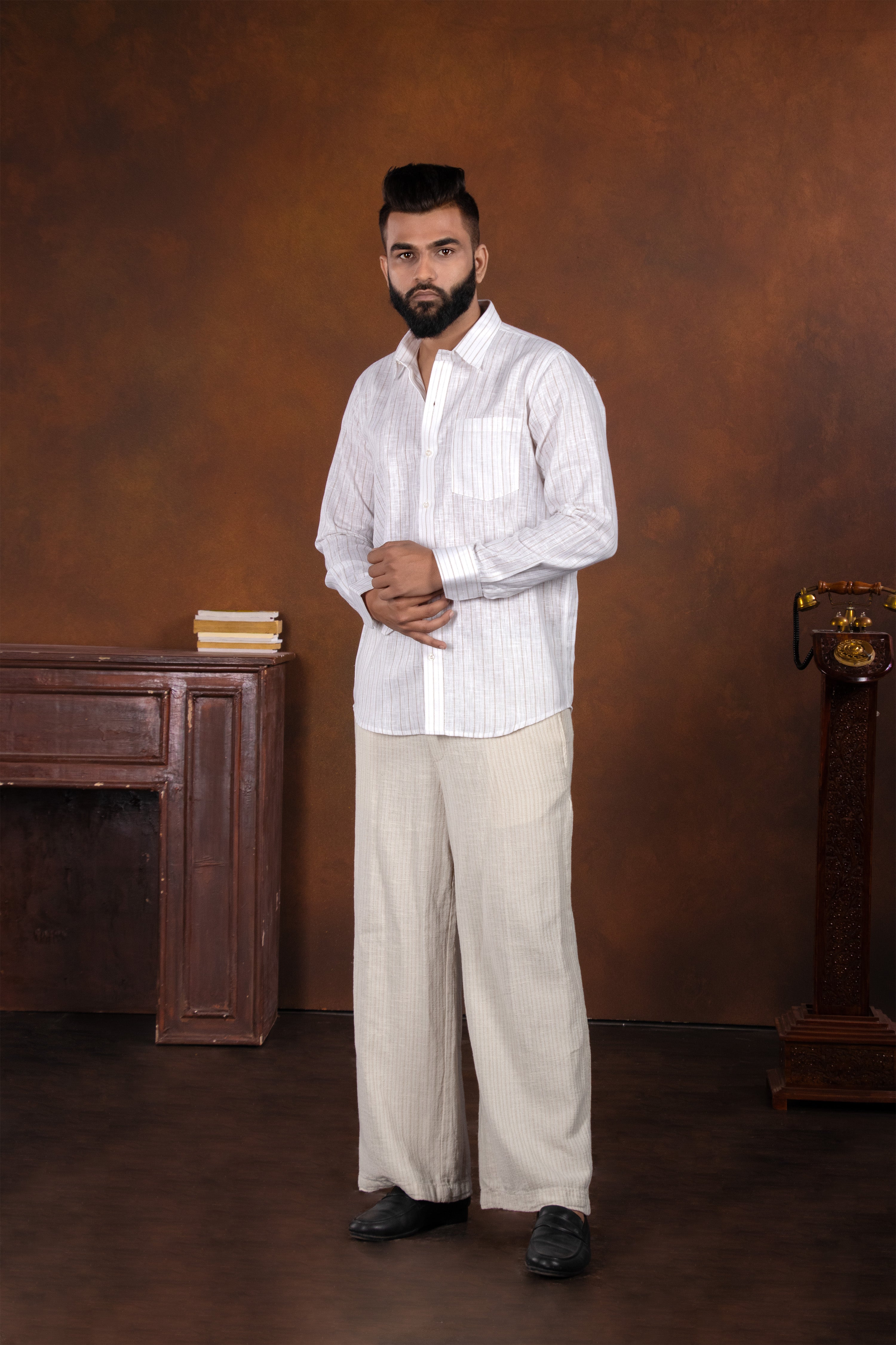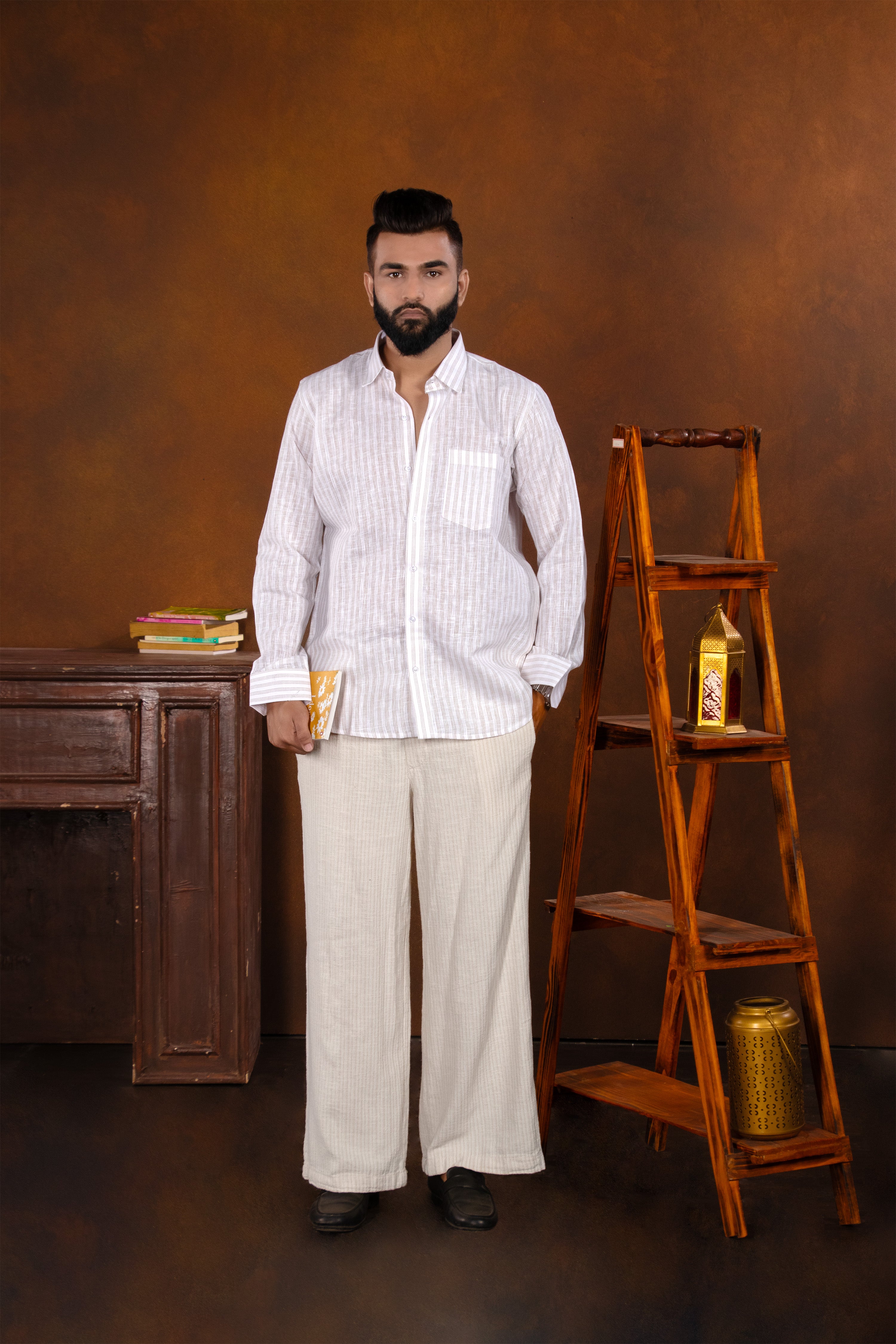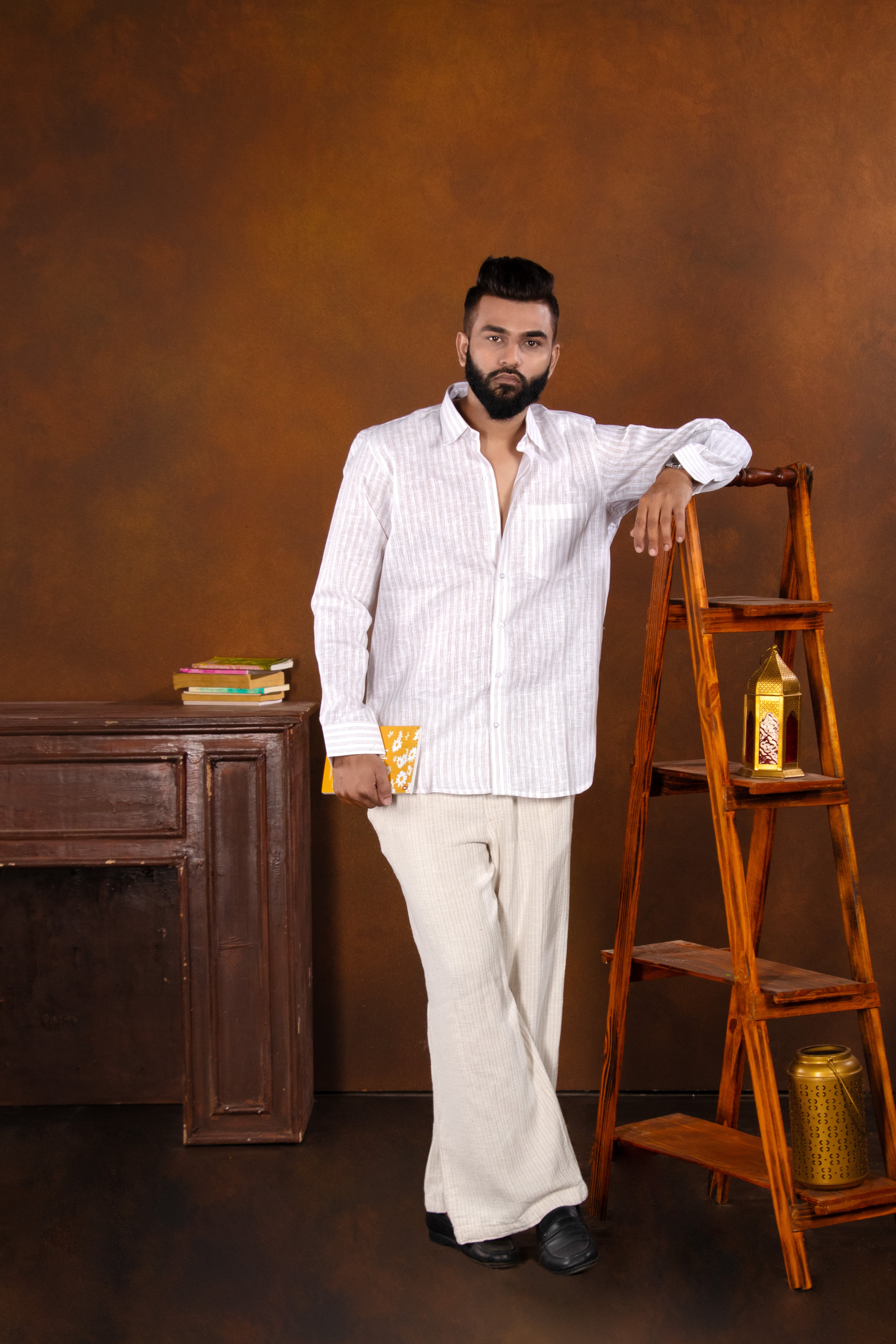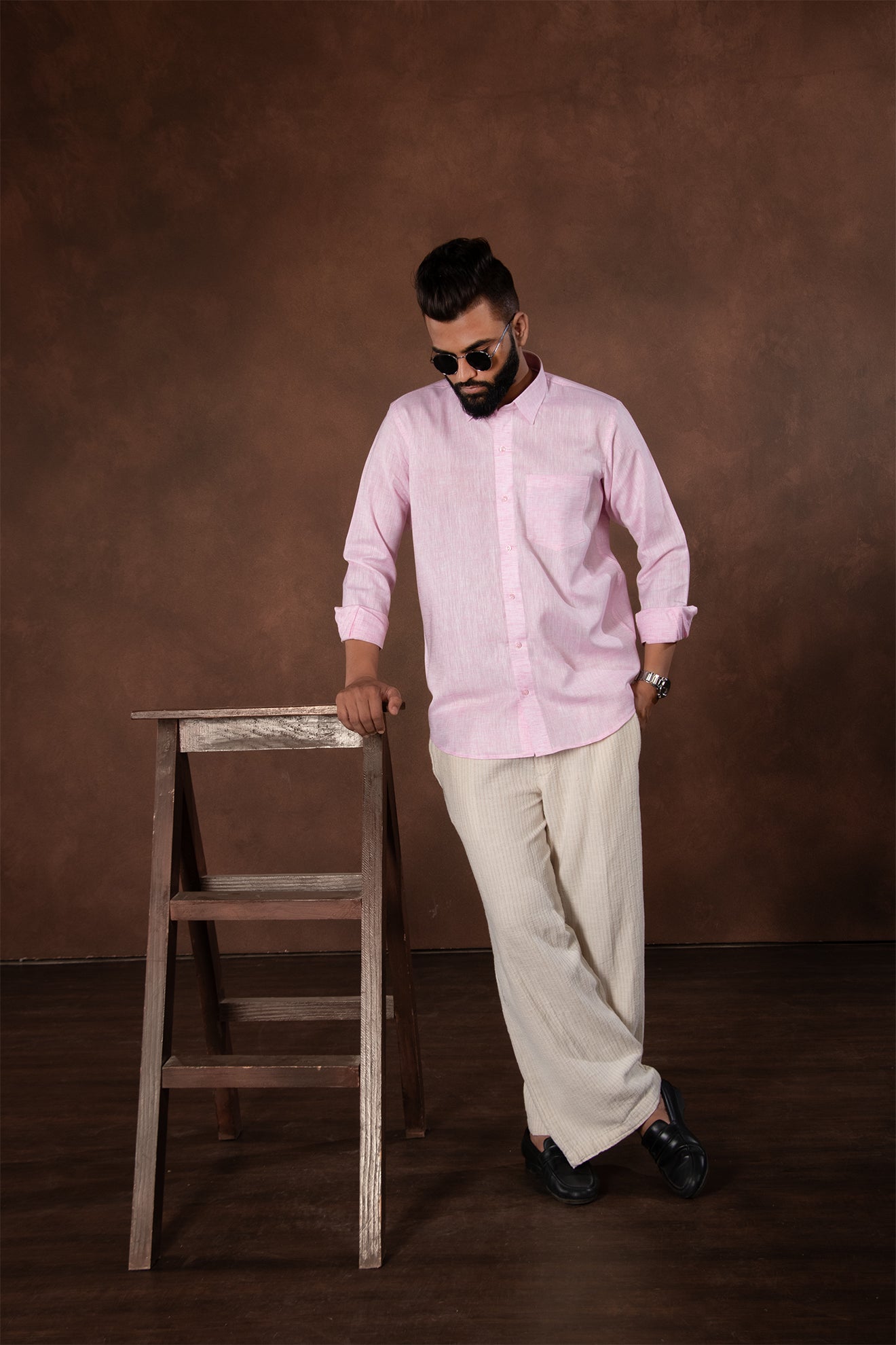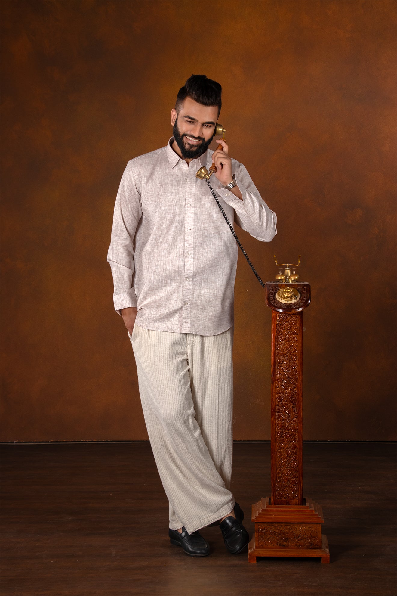 Men's Light Lemon Yellow Dyed Cotton Linen Shirt